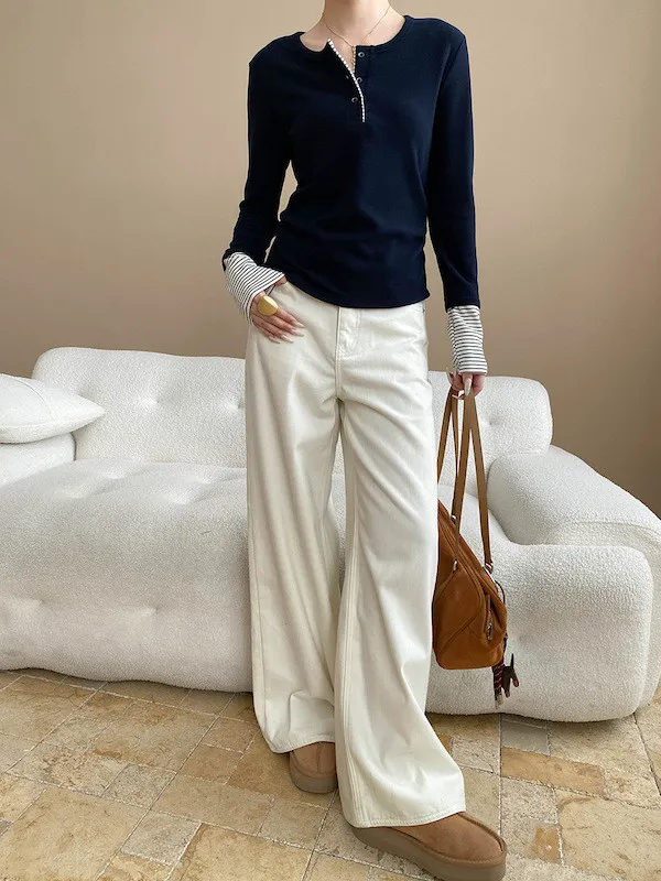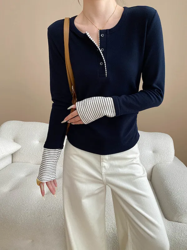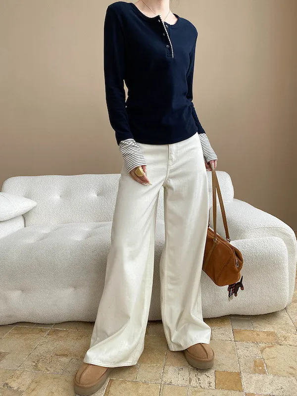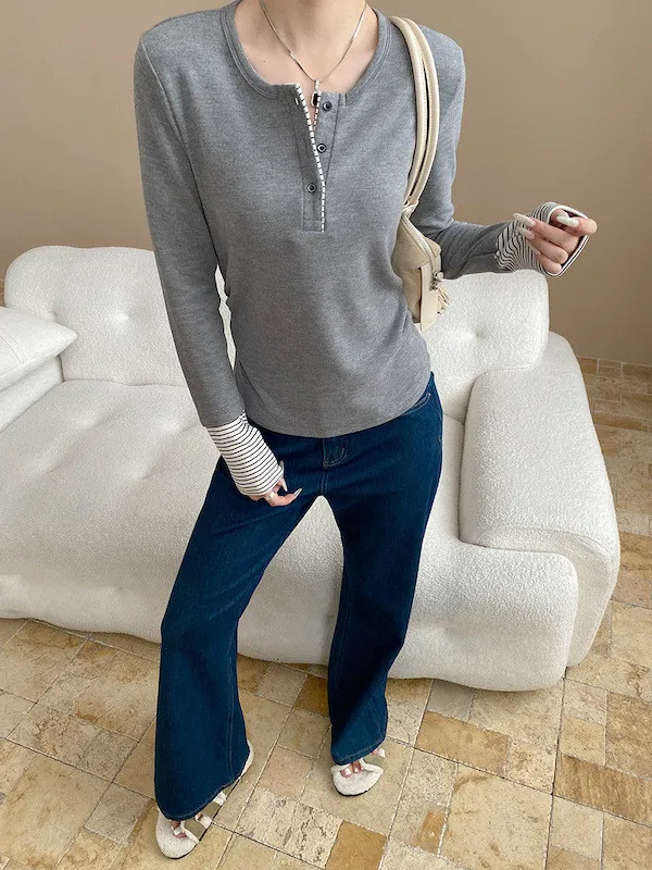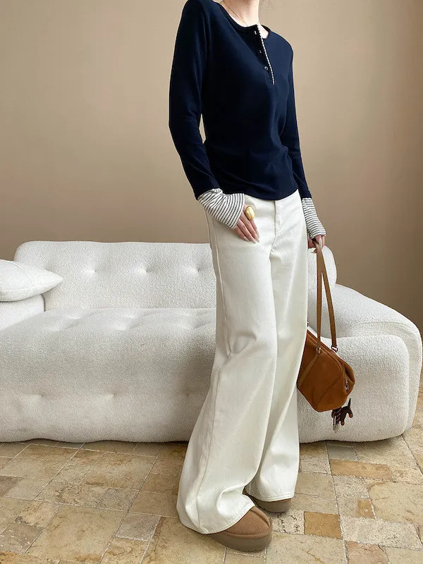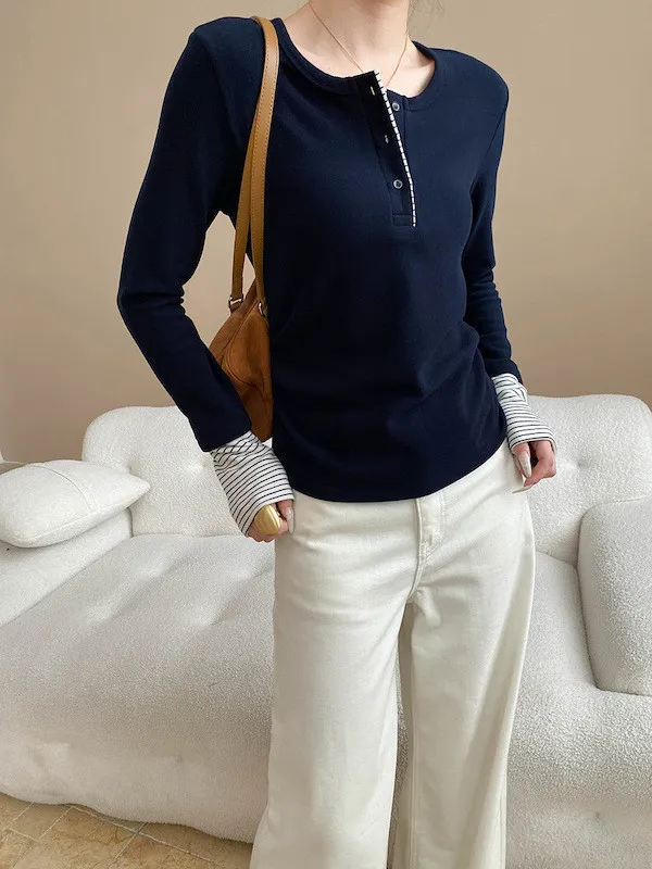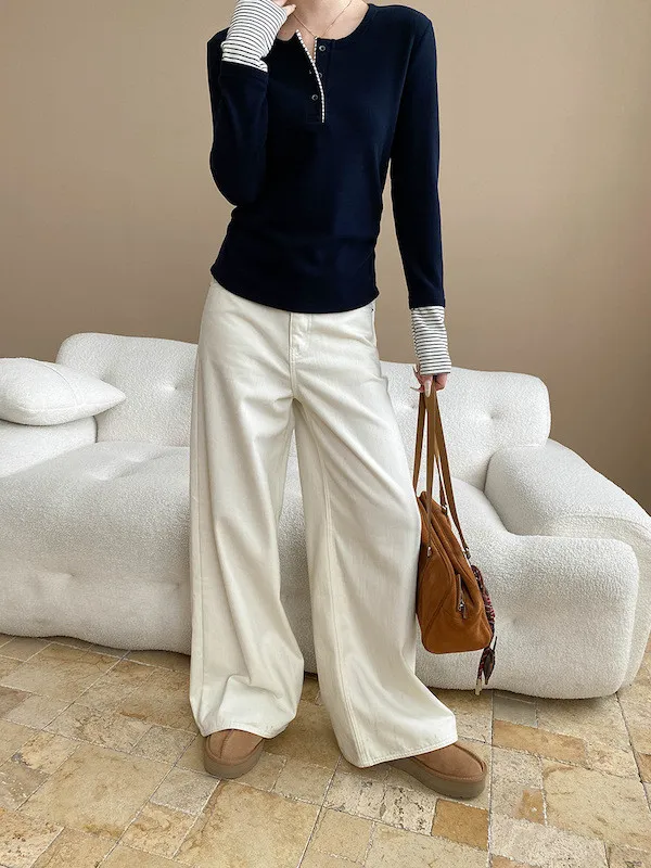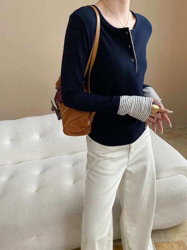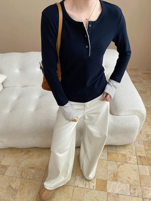 早上隨手套上,袖口條紋拼接讓整個人看起來不會太素