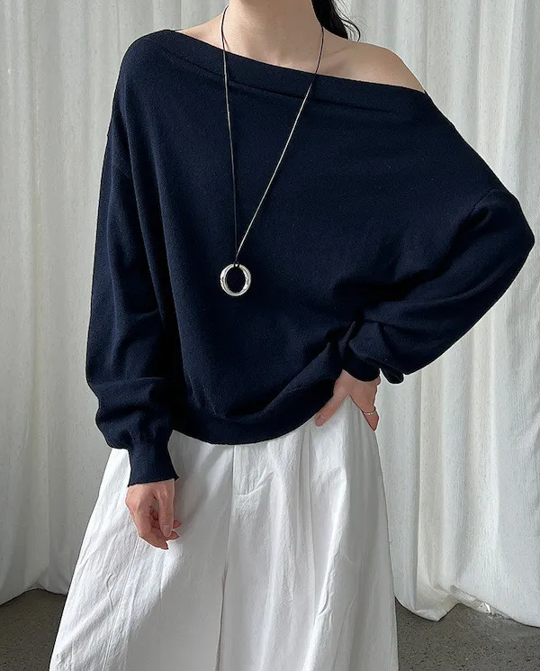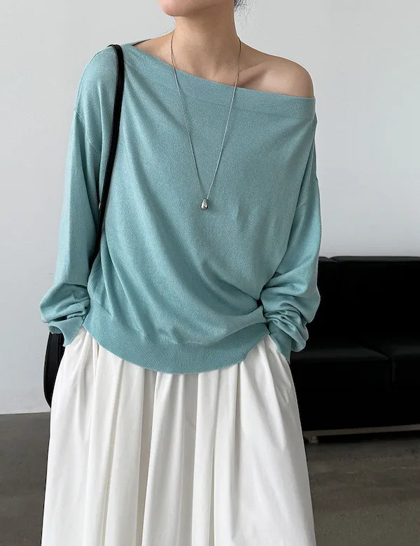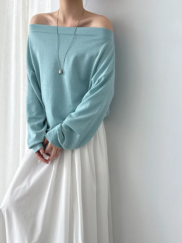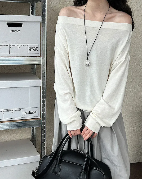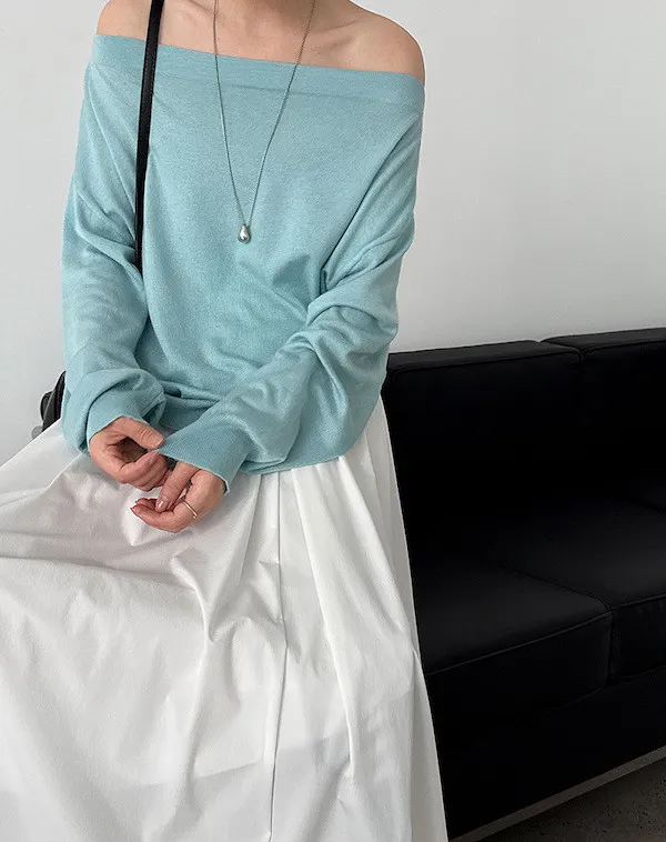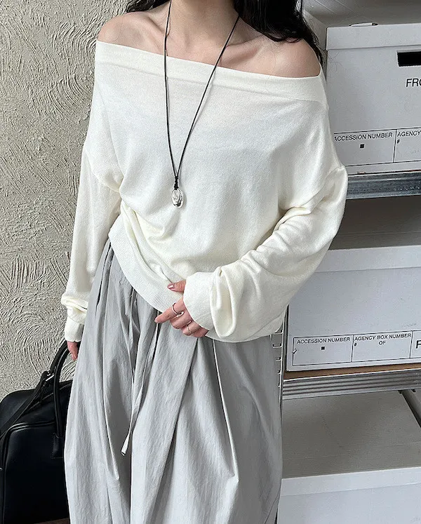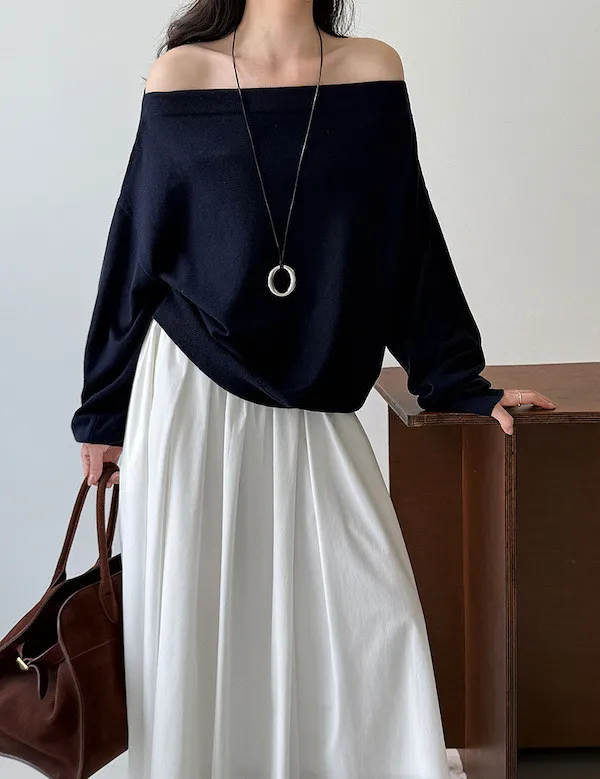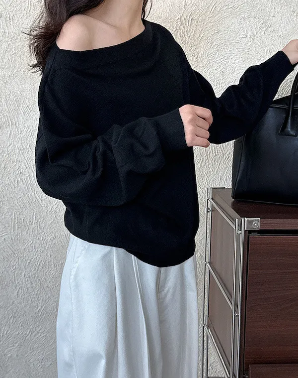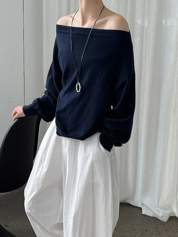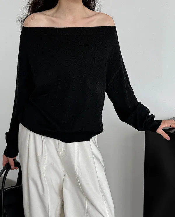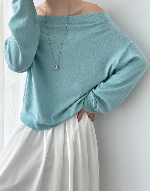 慵懶晨光 斜肩一字領羊毛針織上衣 6色