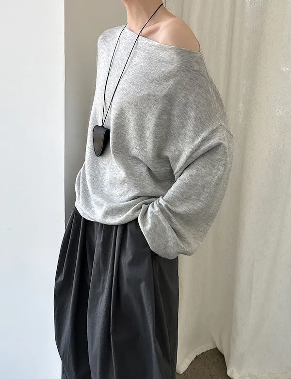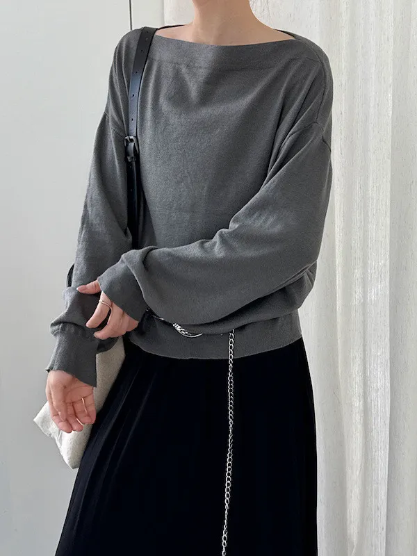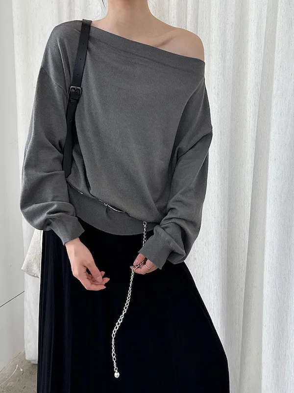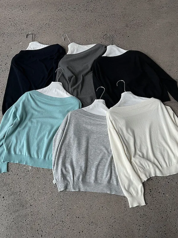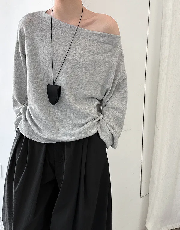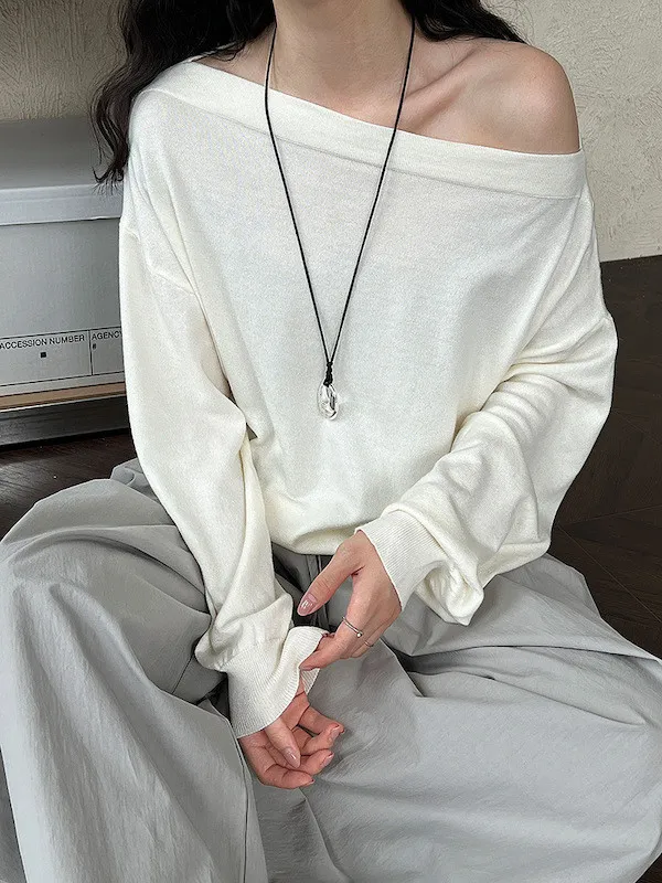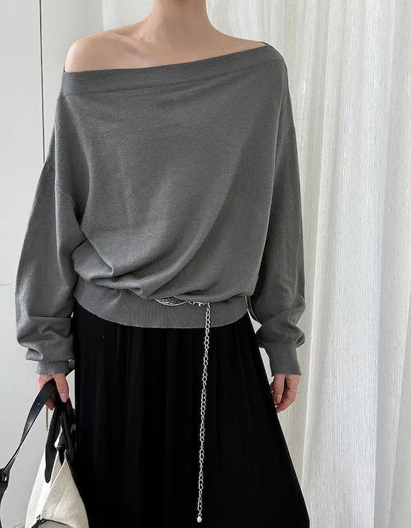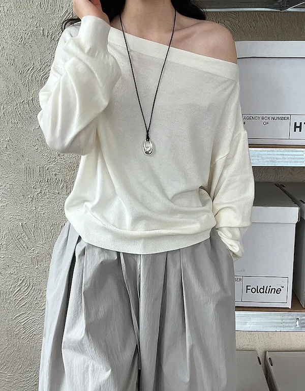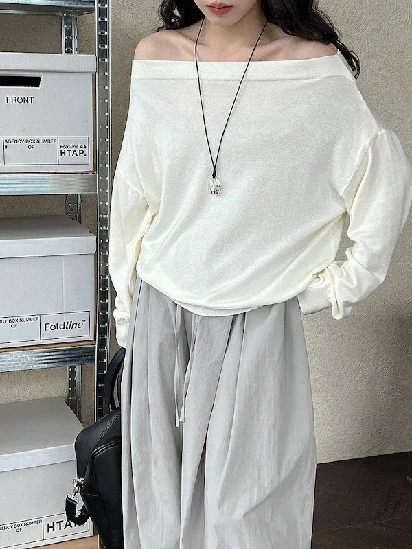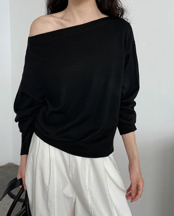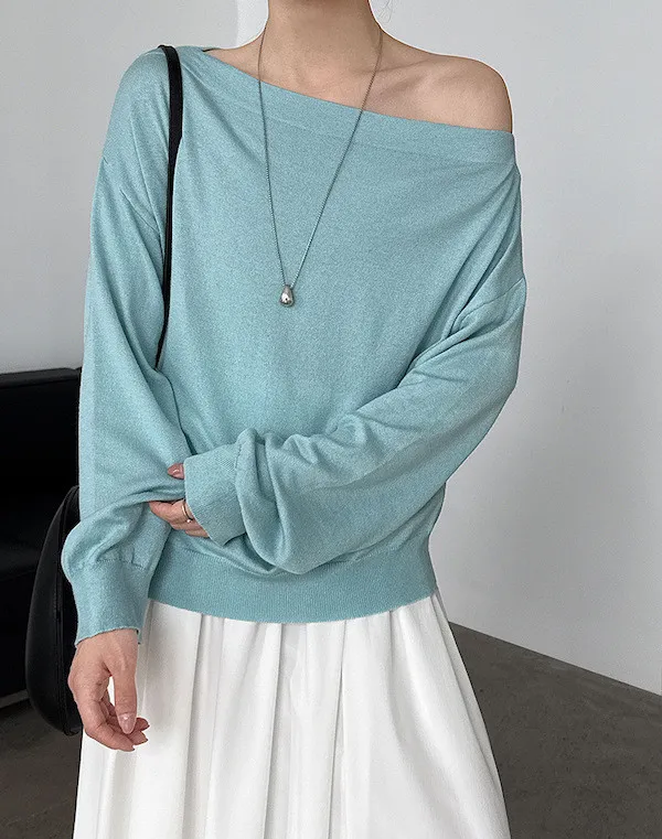 慵懶晨光 斜肩一字領羊毛針織上衣 6色