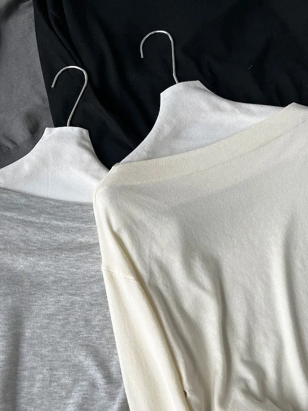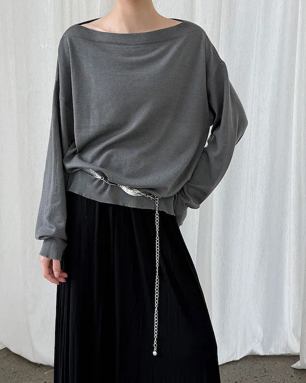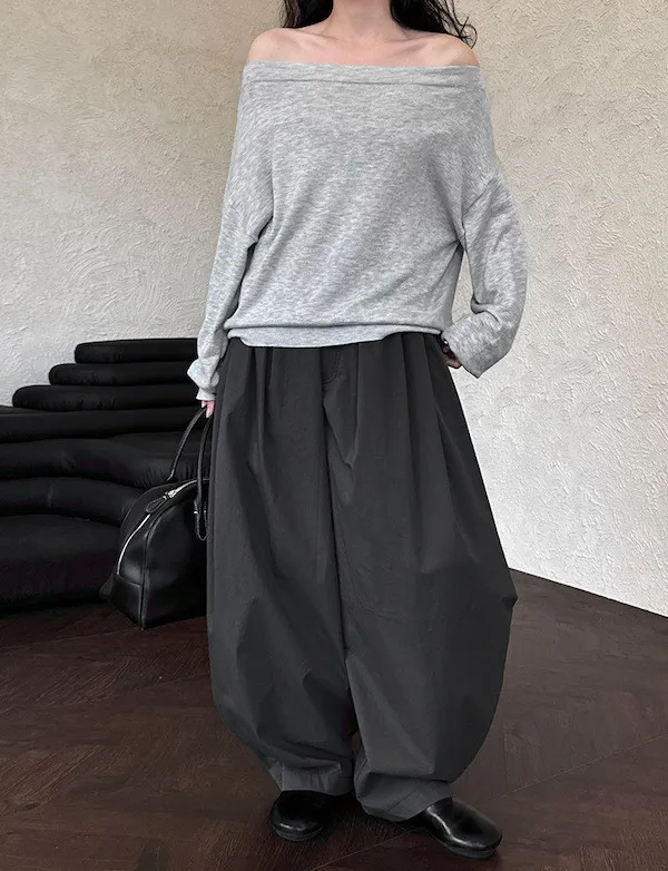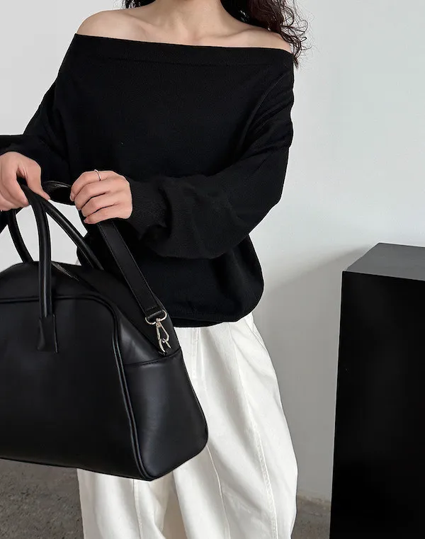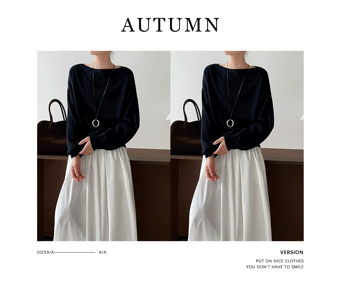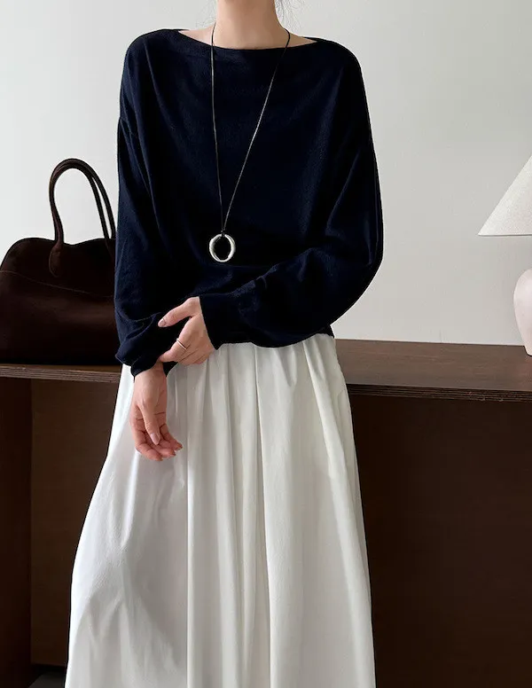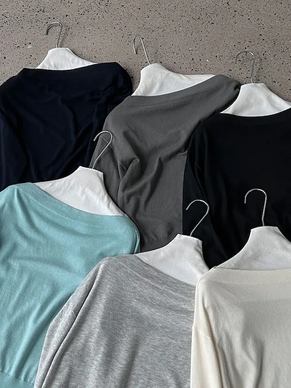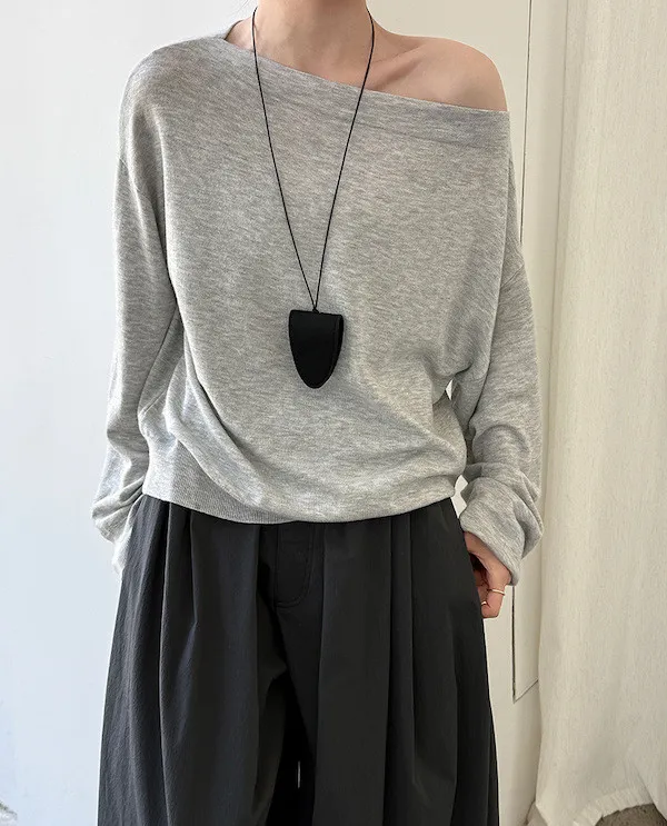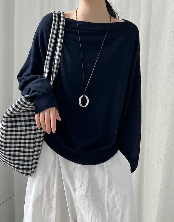 慵懶晨光 斜肩一字領羊毛針織上衣 6色