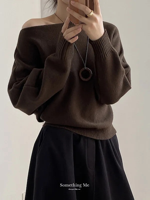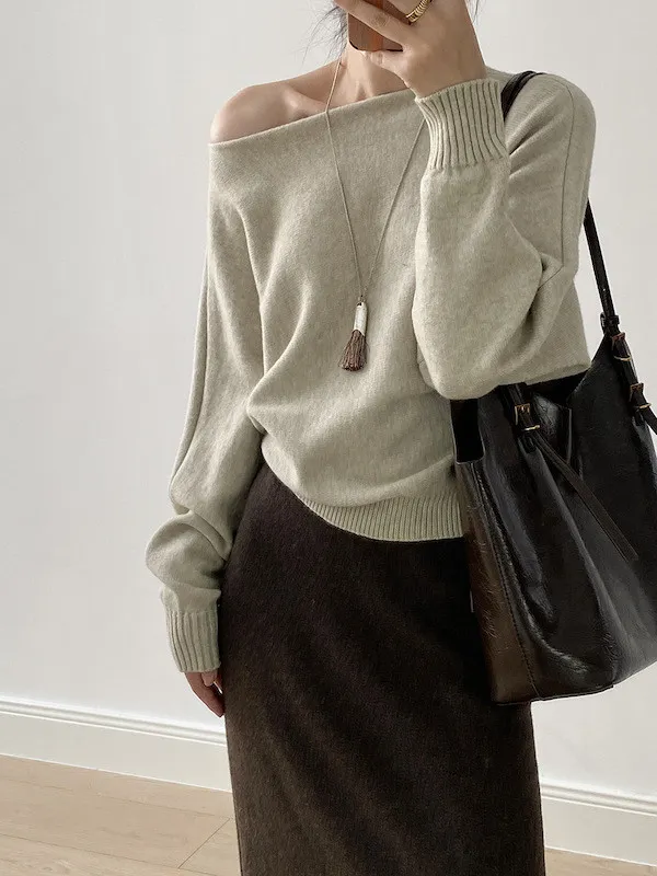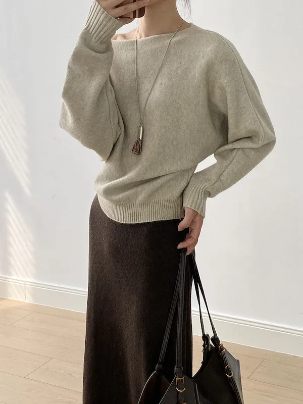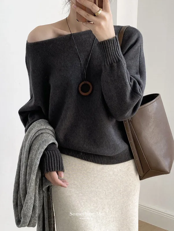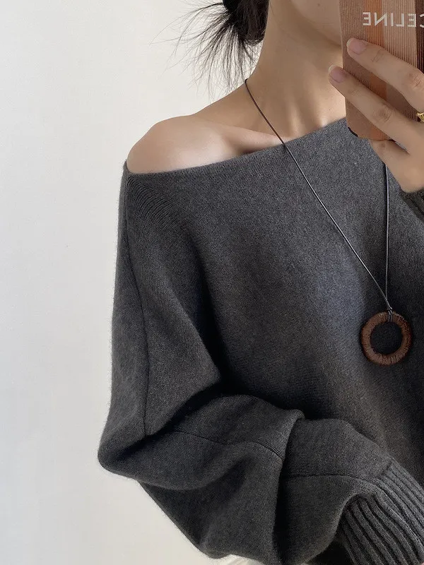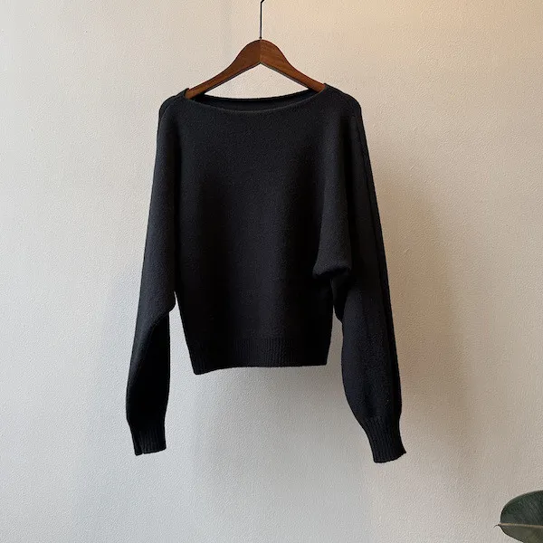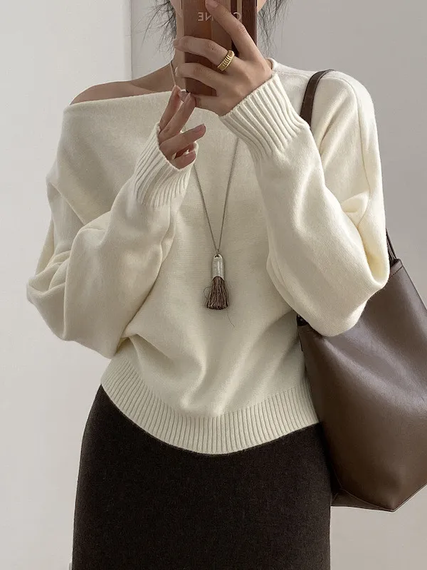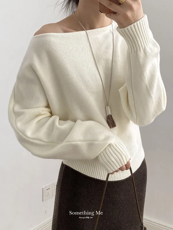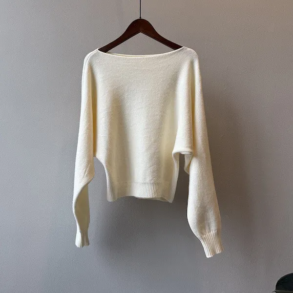 慵懶時光 一字領斜肩蝙蝠袖針織毛衣 5色