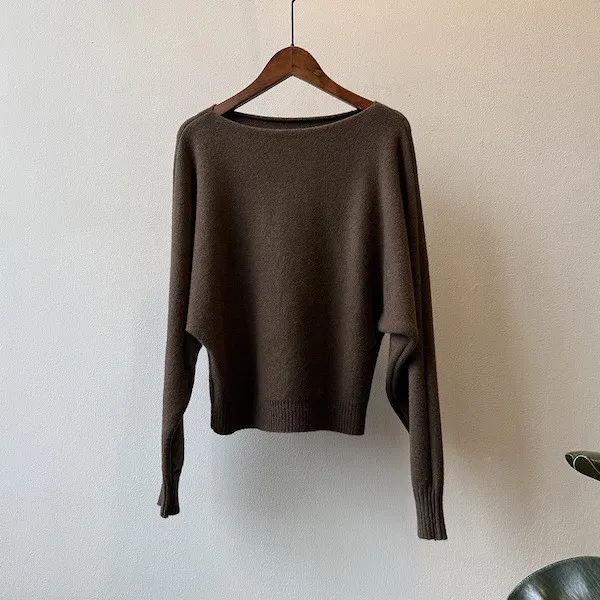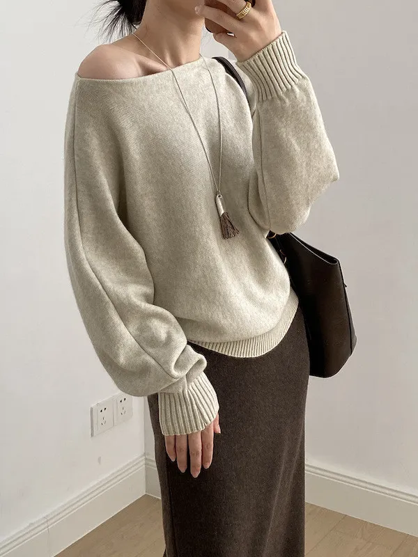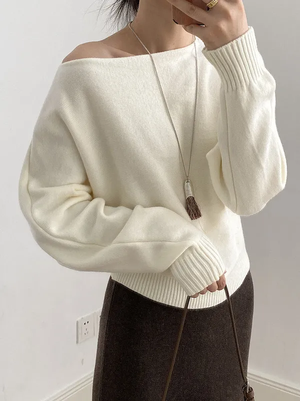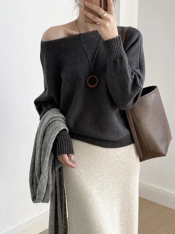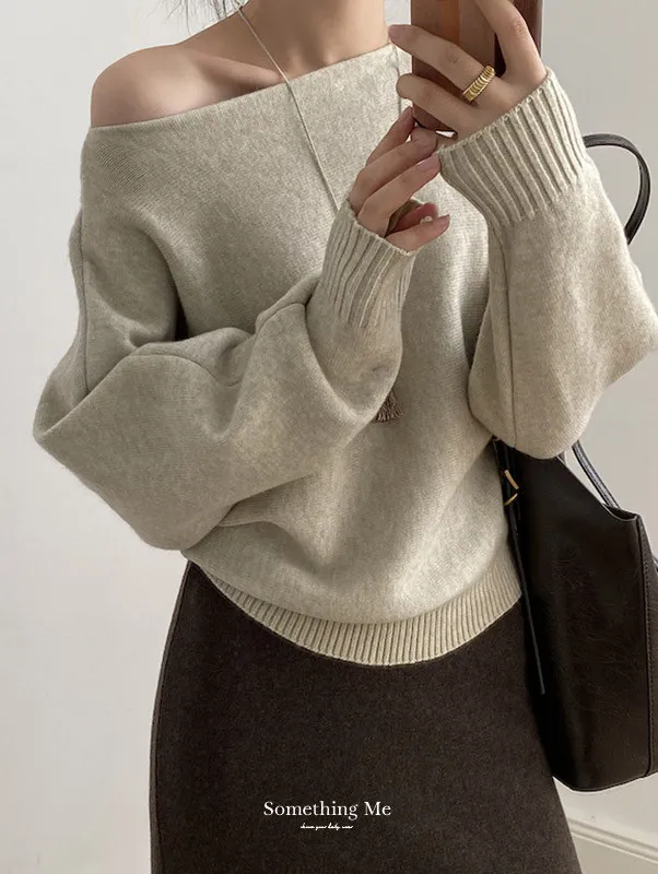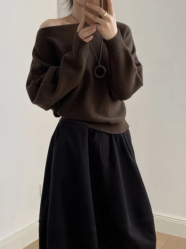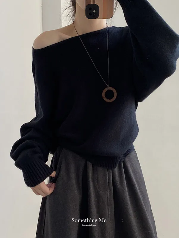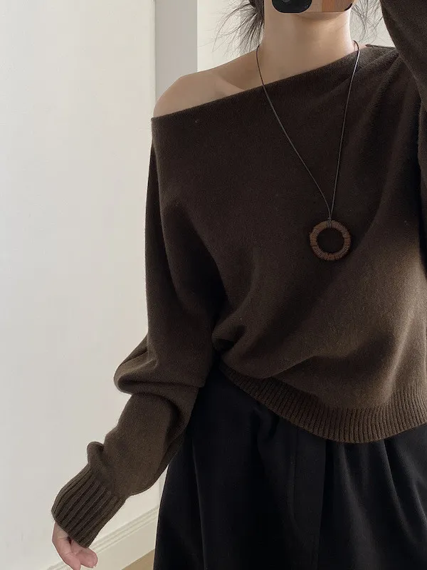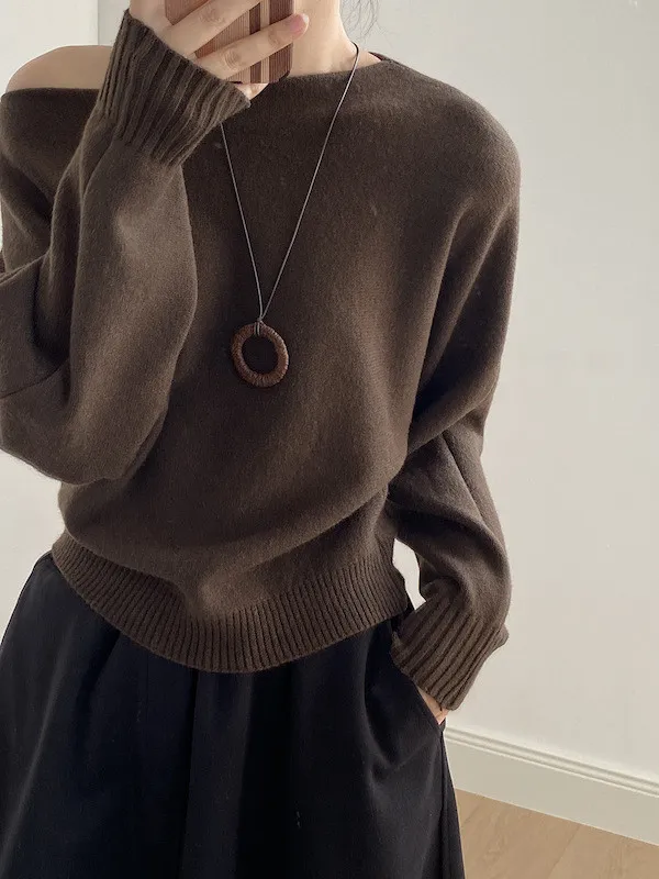 慵懶時光 一字領斜肩蝙蝠袖針織毛衣 5色
