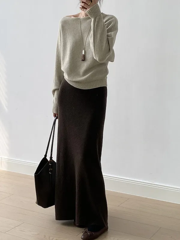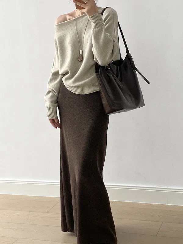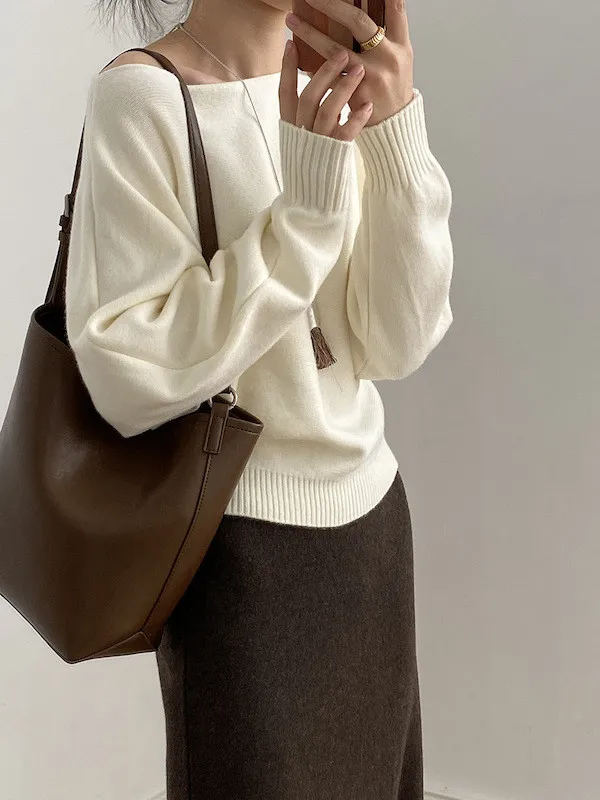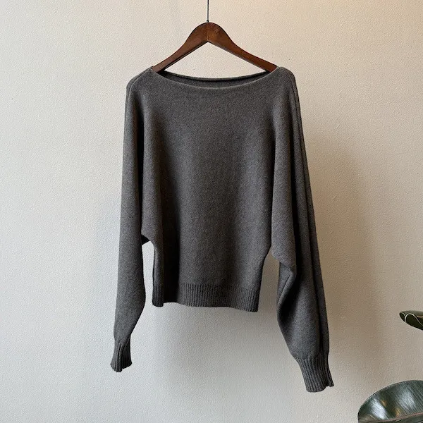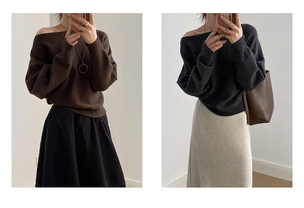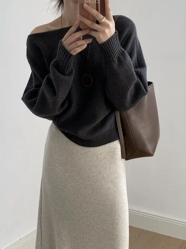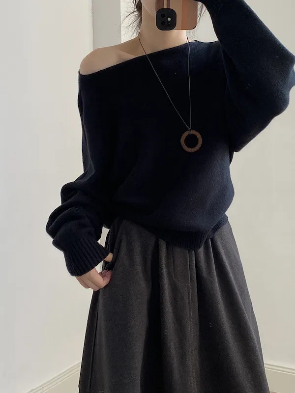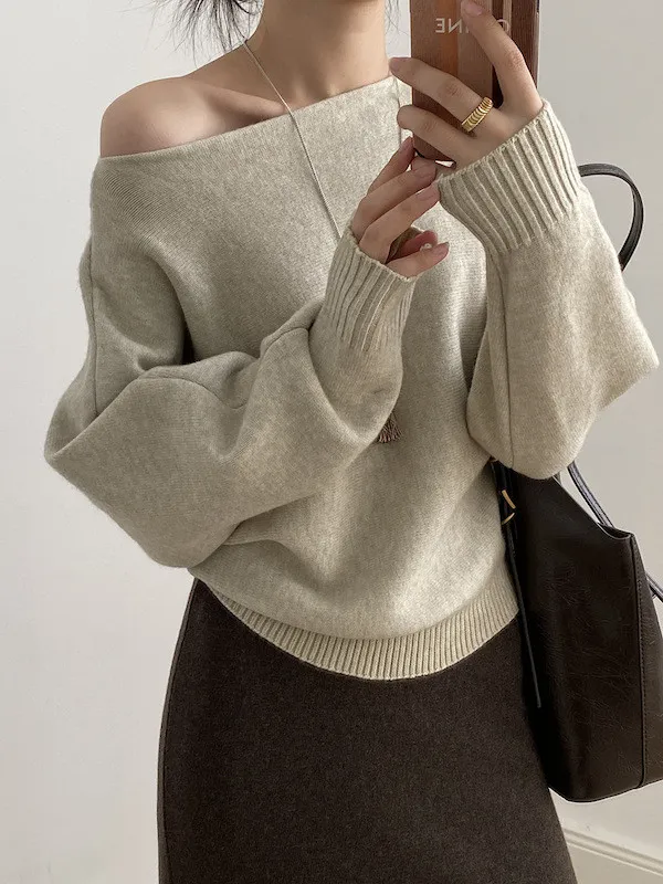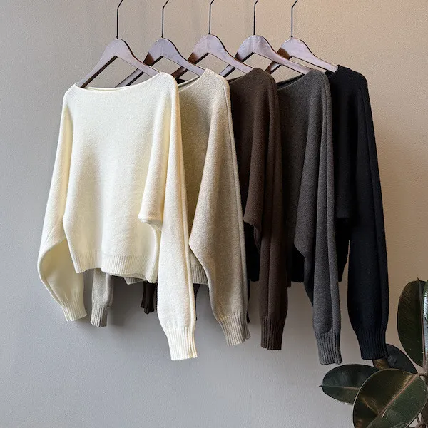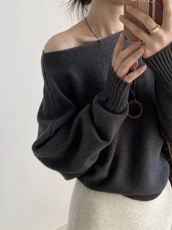 慵懶時光 一字領斜肩蝙蝠袖針織毛衣 5色