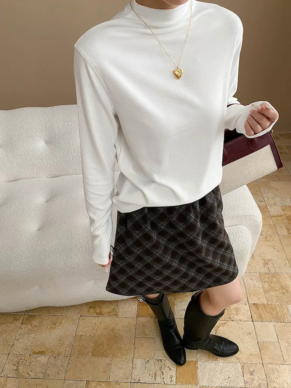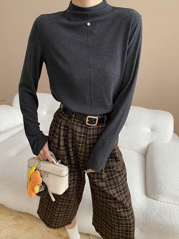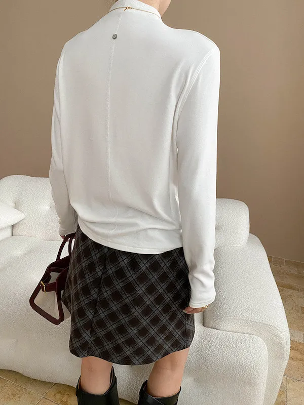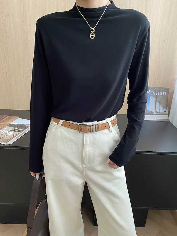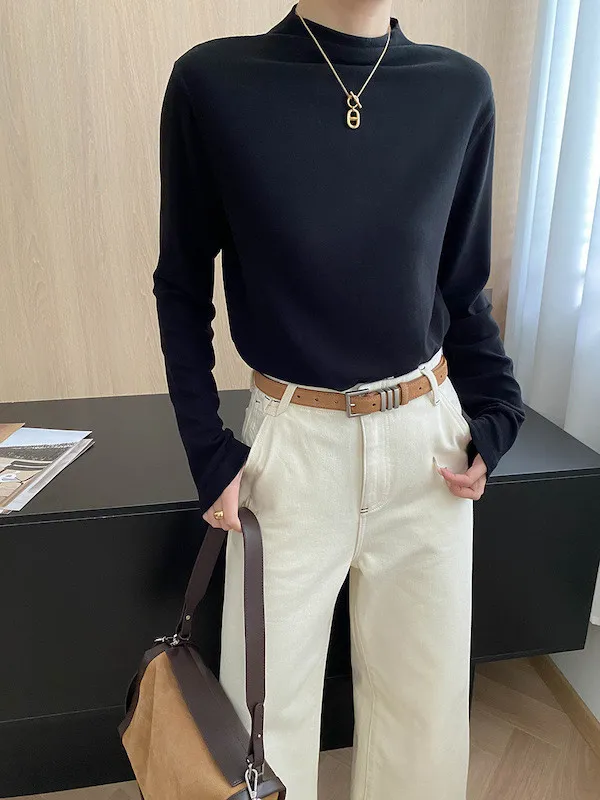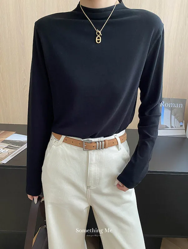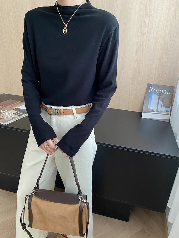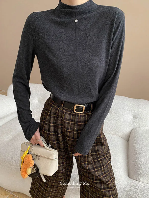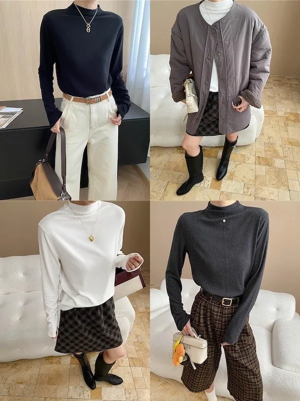 輕柔磨毛。前後兩穿半高領中縫長袖T恤 3色