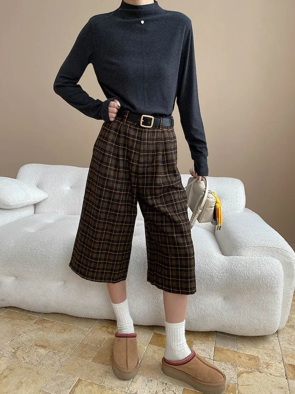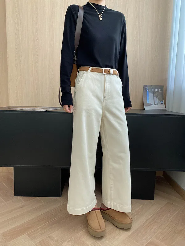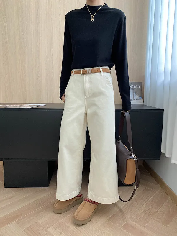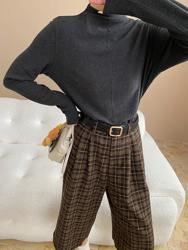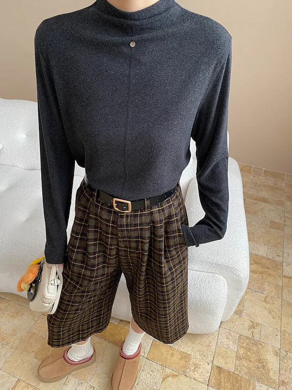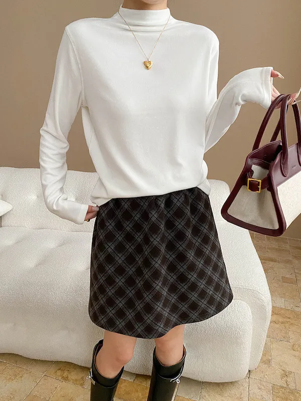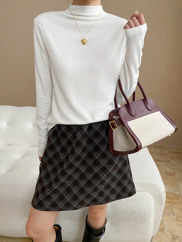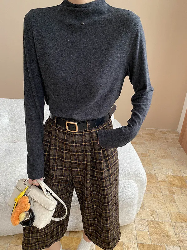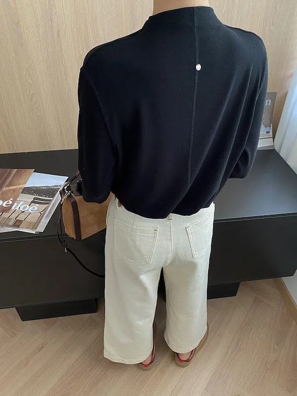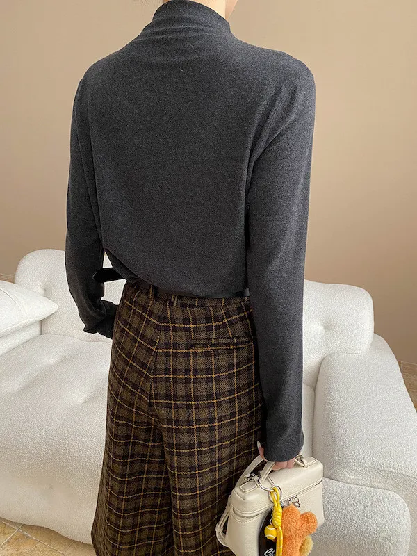 輕柔磨毛。前後兩穿半高領中縫長袖T恤 3色
