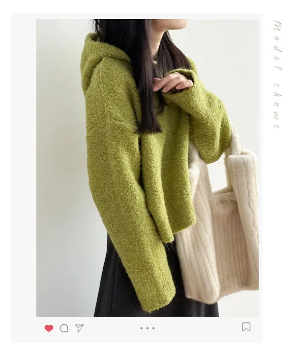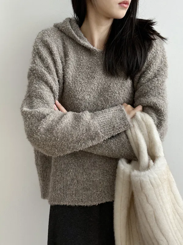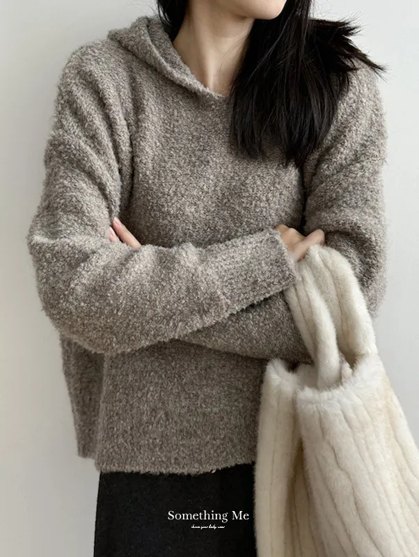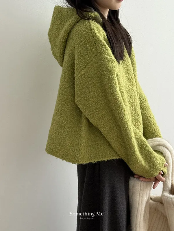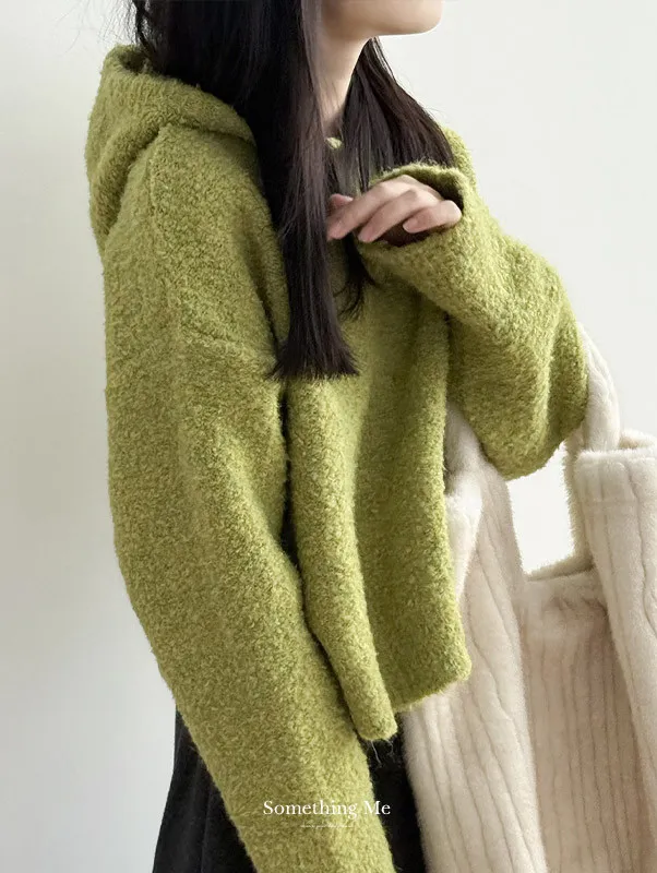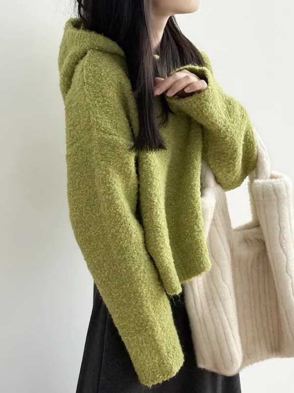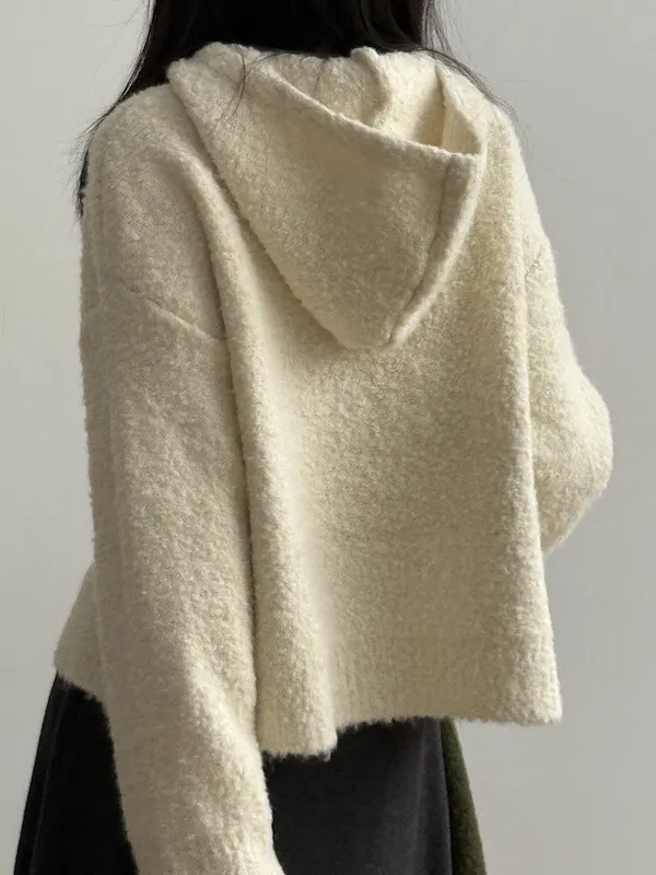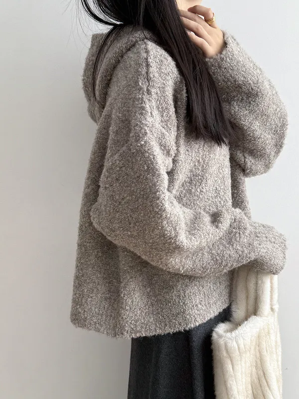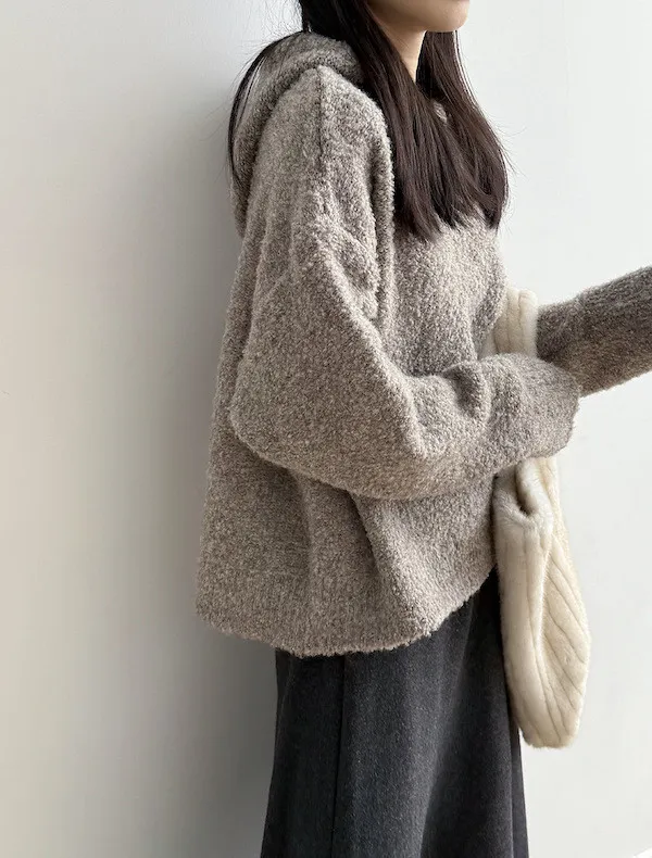 雲朵觸感圈圈絨連帽短版針織毛衣 3色