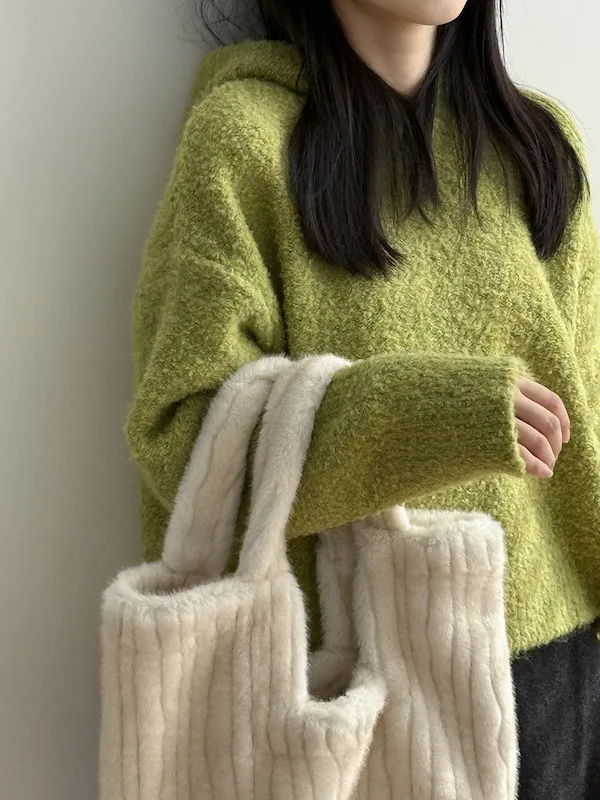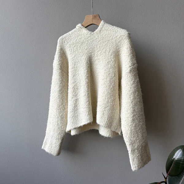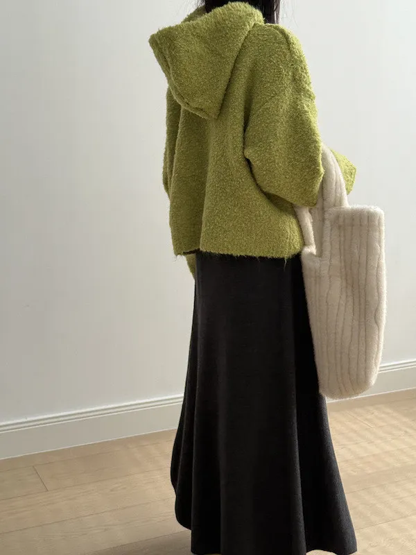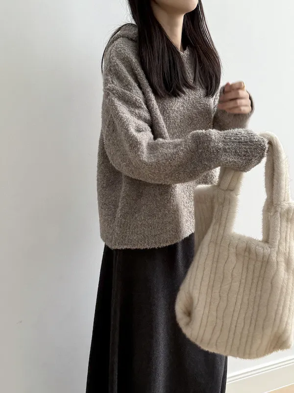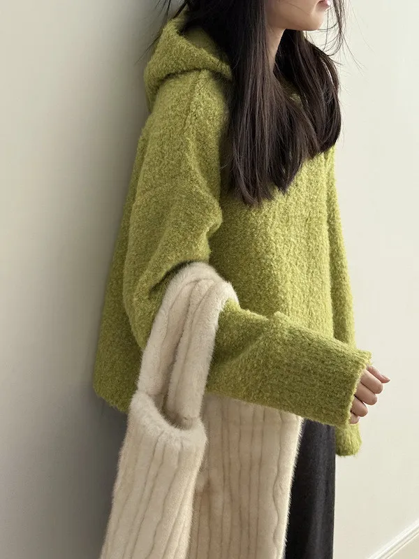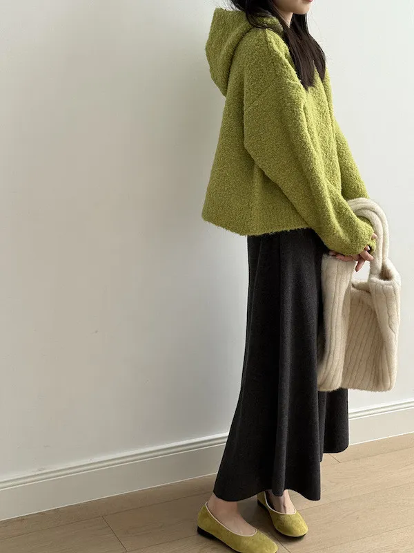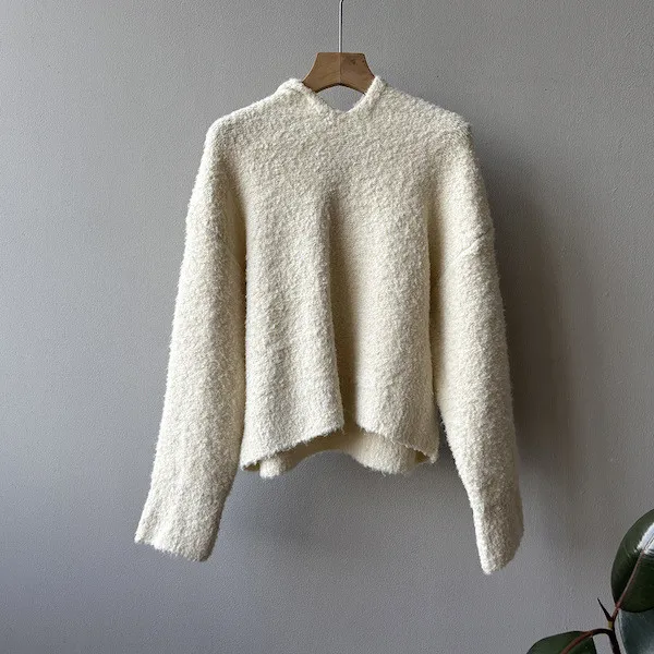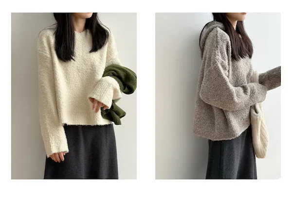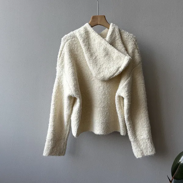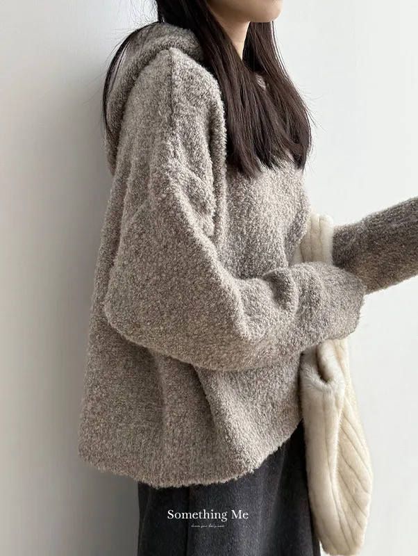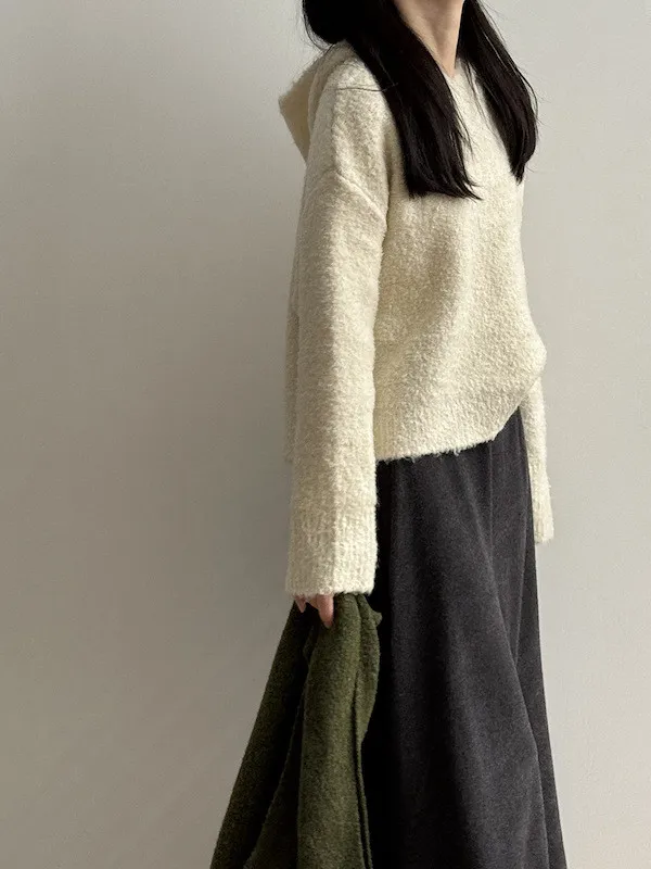 雲朵觸感圈圈絨連帽短版針織毛衣 3色