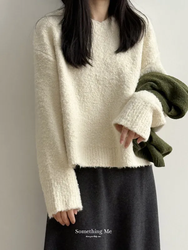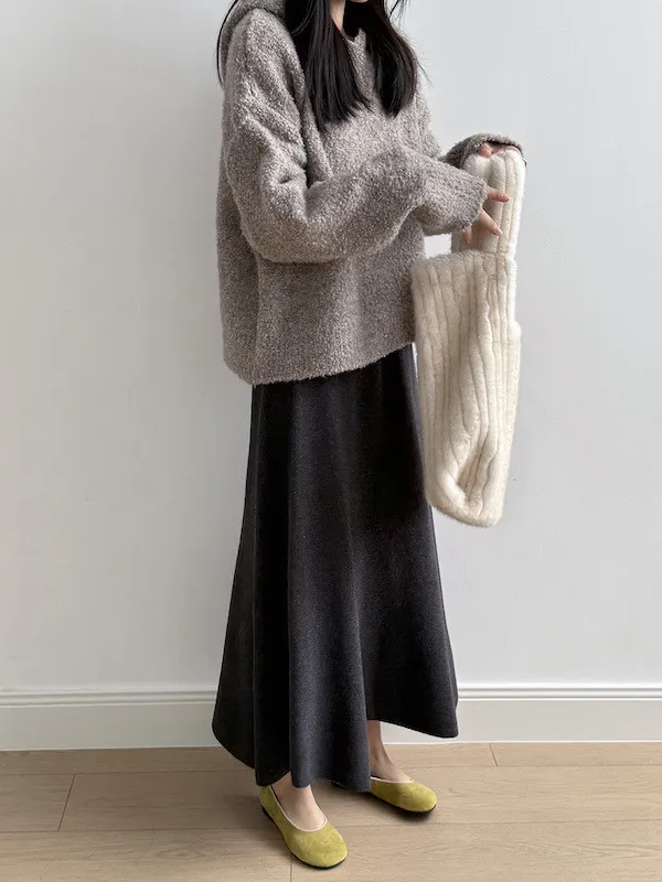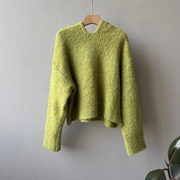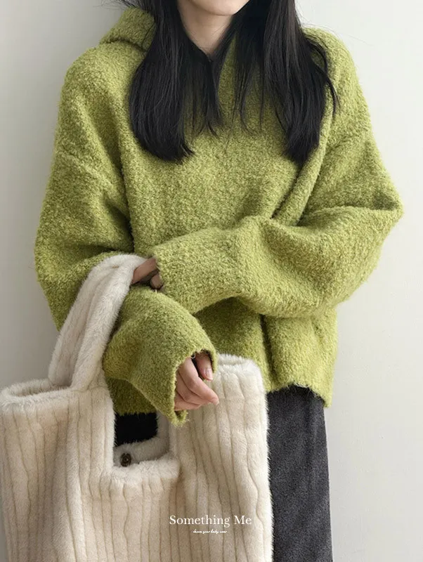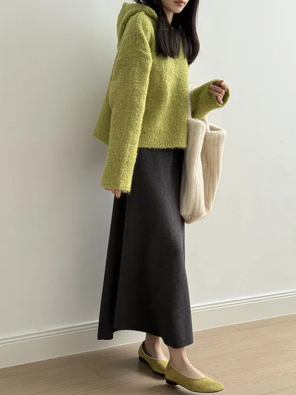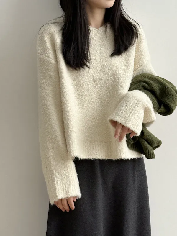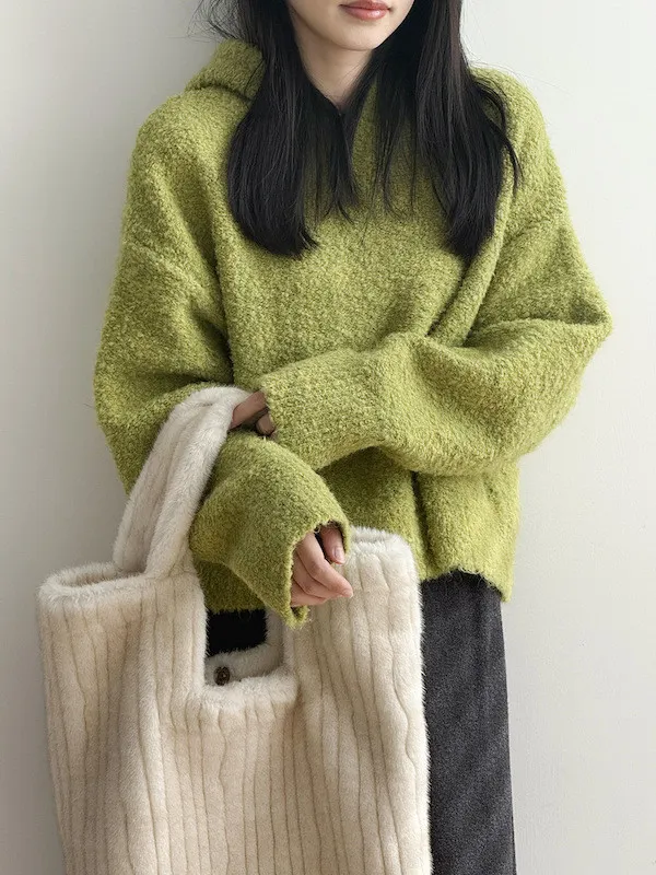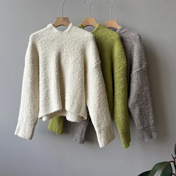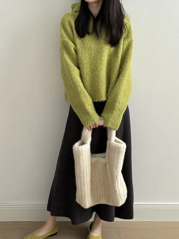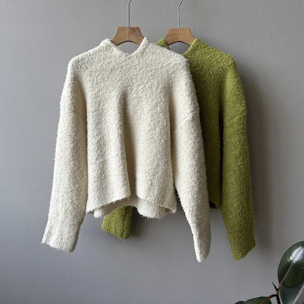 雲朵觸感圈圈絨連帽短版針織毛衣 3色