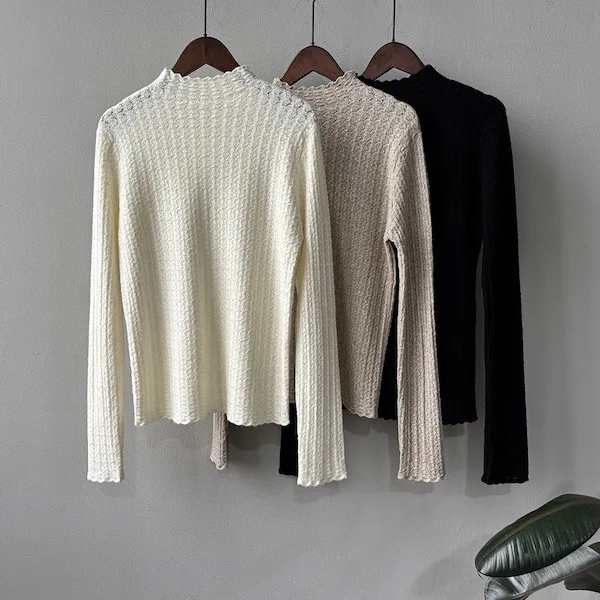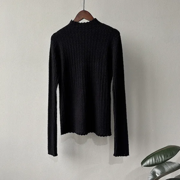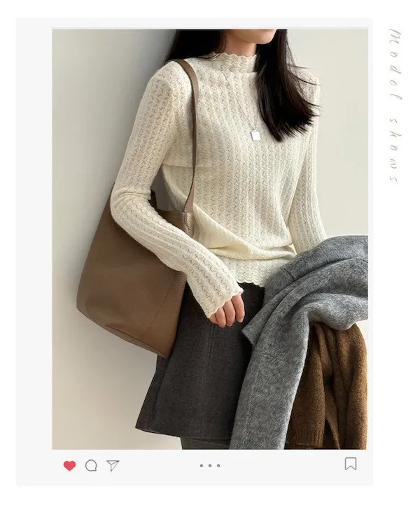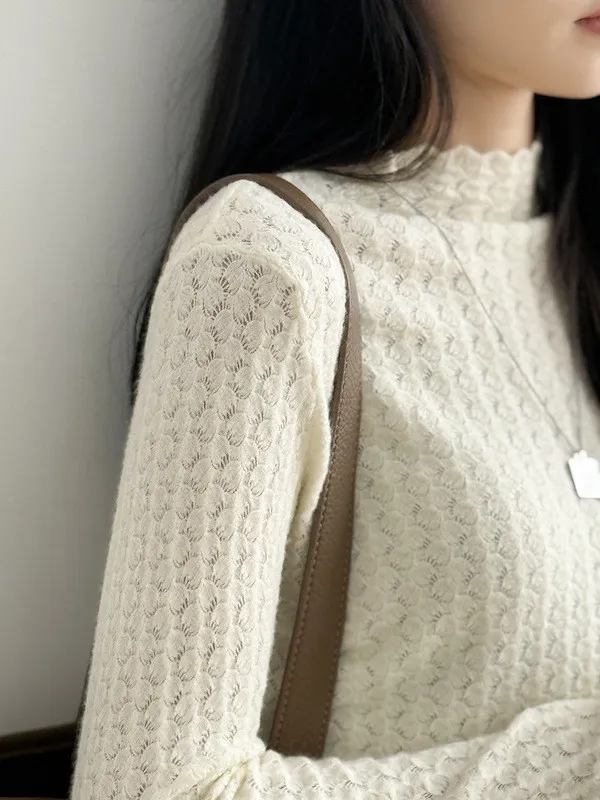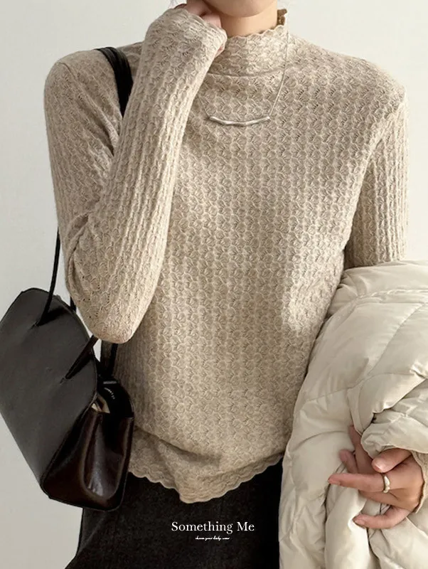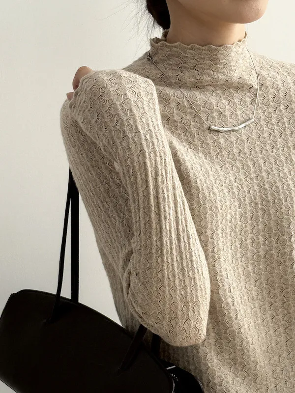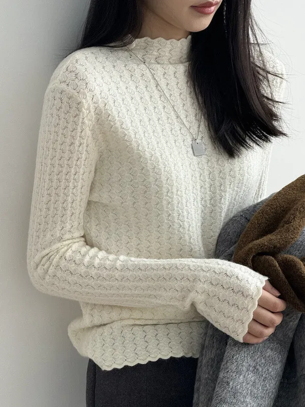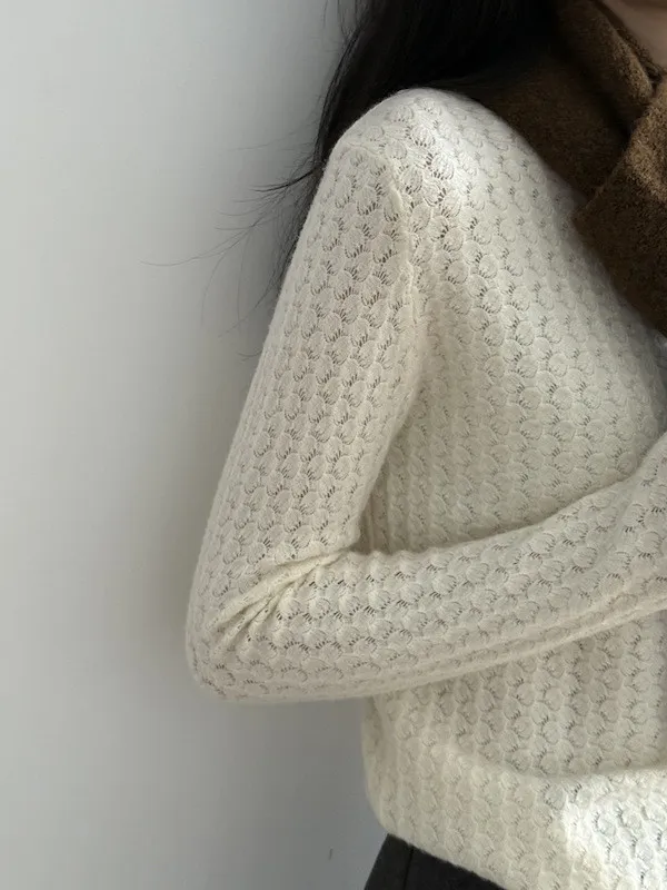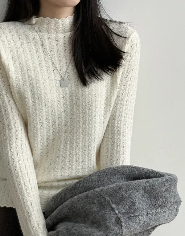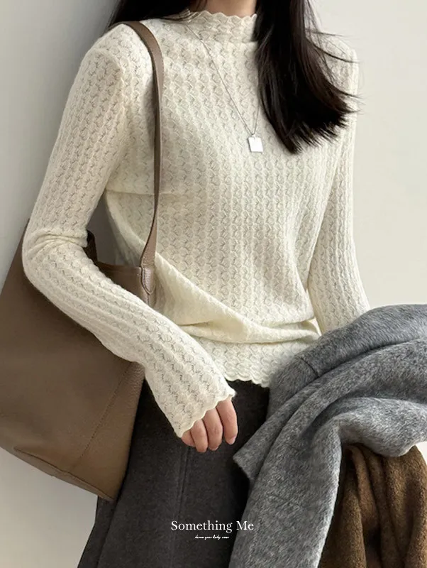 溫柔花語 半高領鏤空蕾絲針織上衣 5色