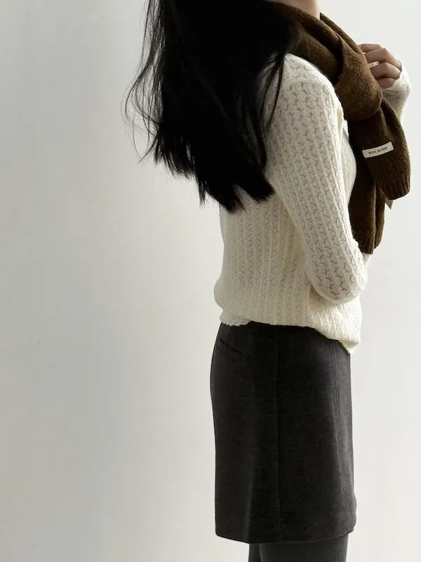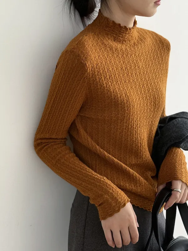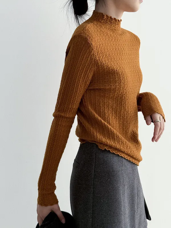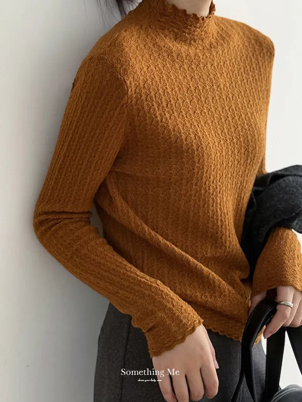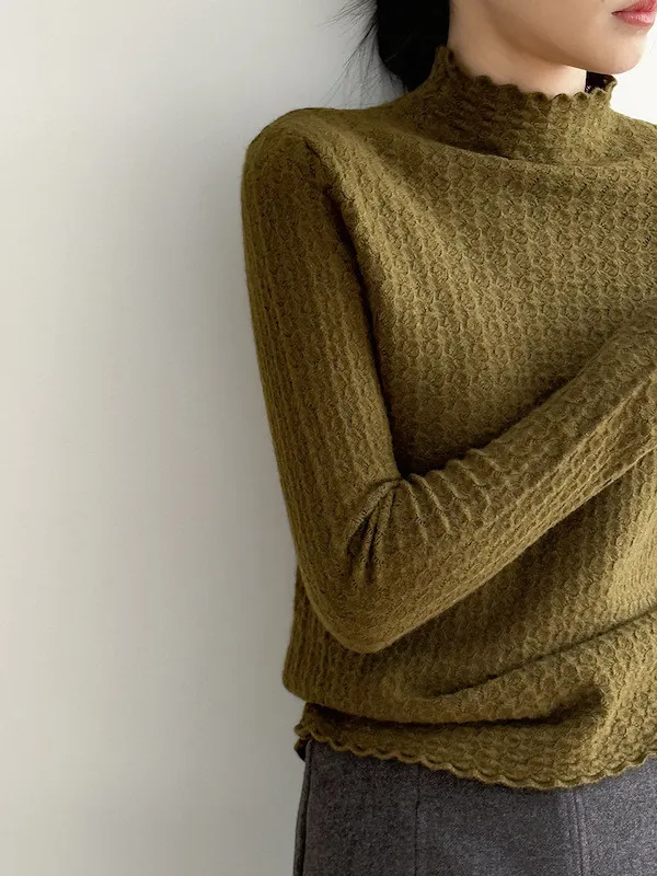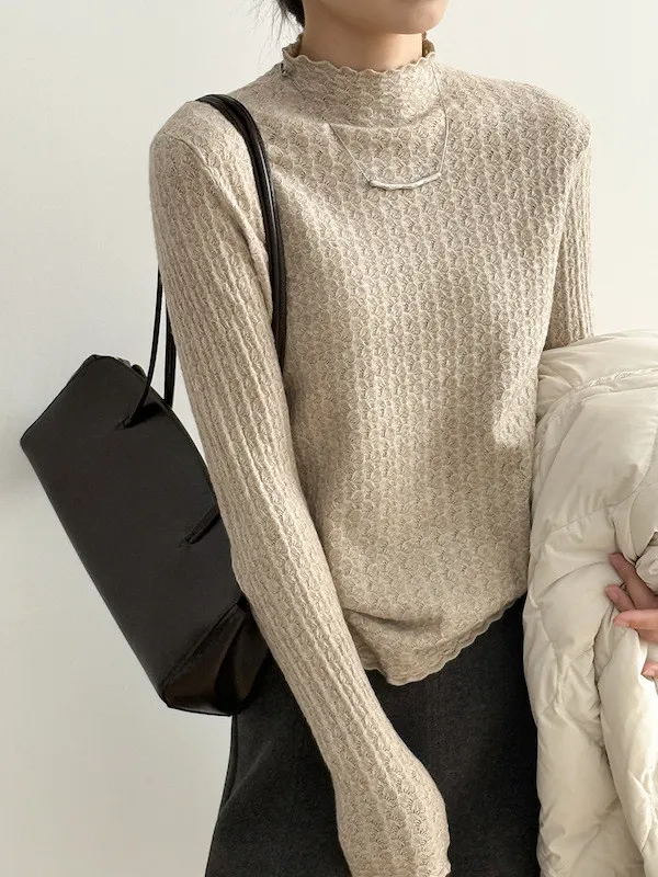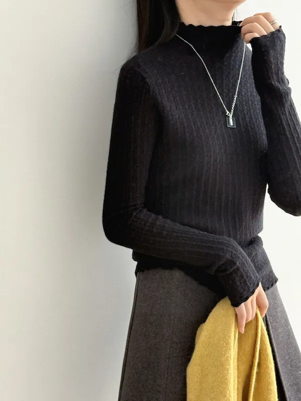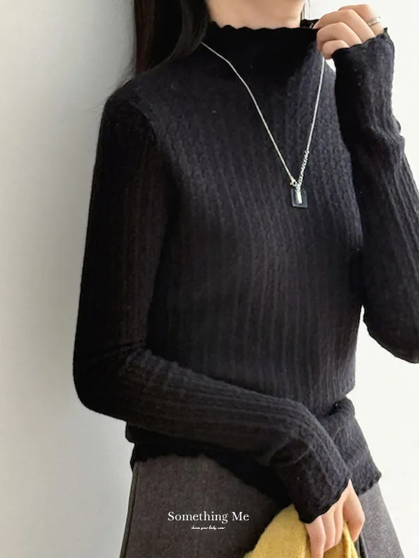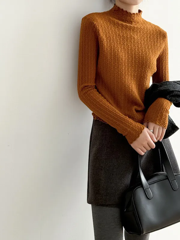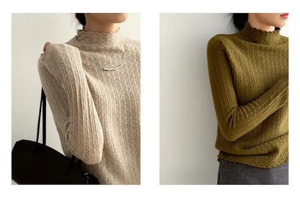 溫柔花語 半高領鏤空蕾絲針織上衣 5色