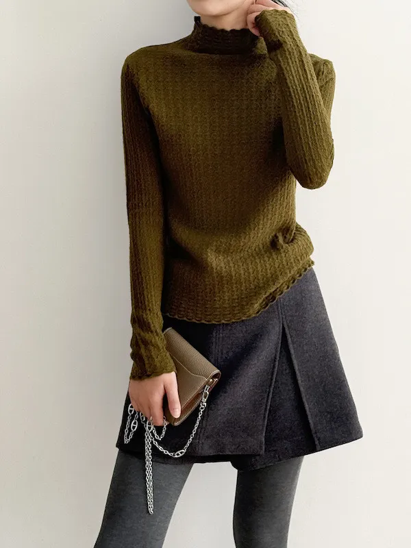 布料軟軟的很舒服,半高領設計讓脖子線條更好看~