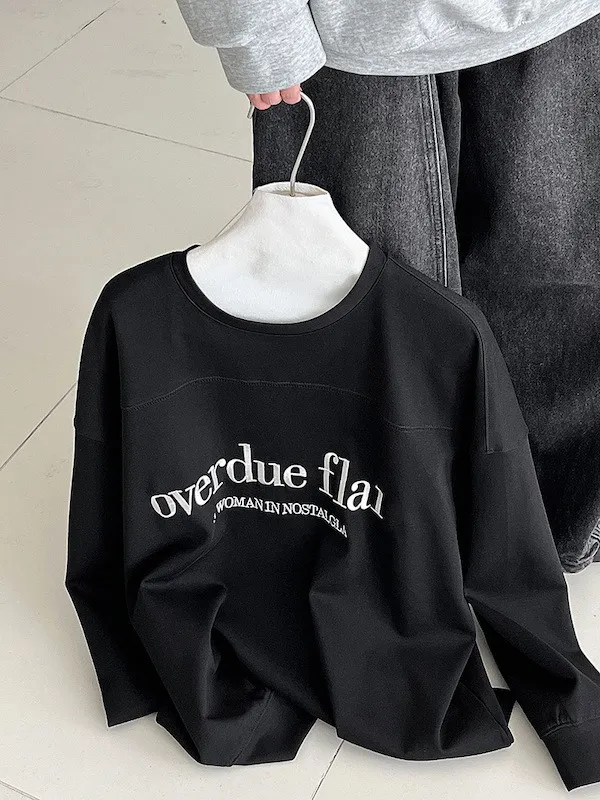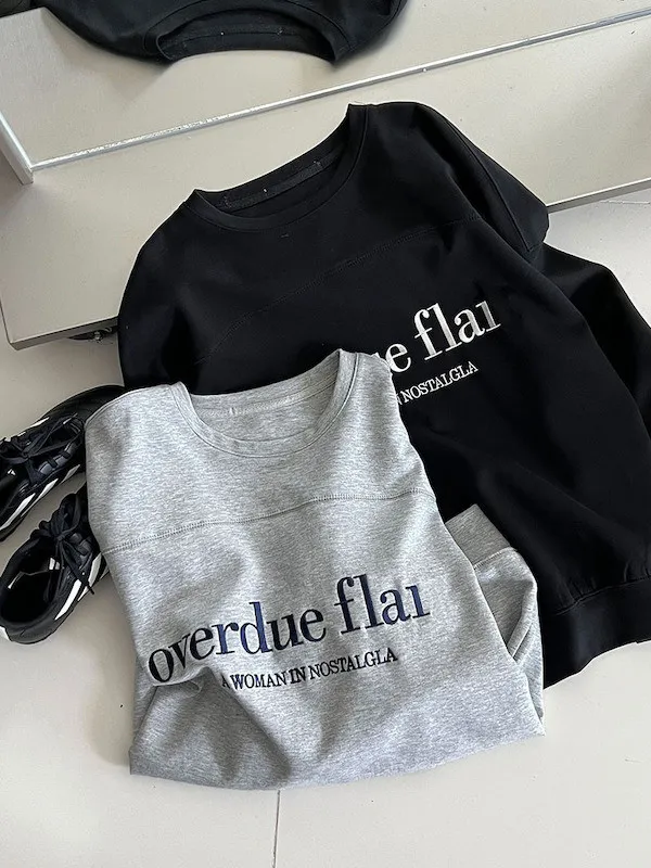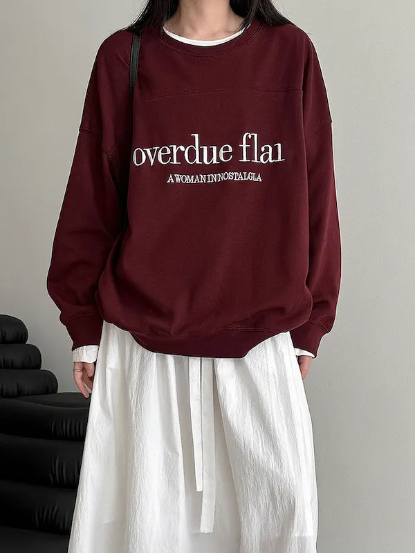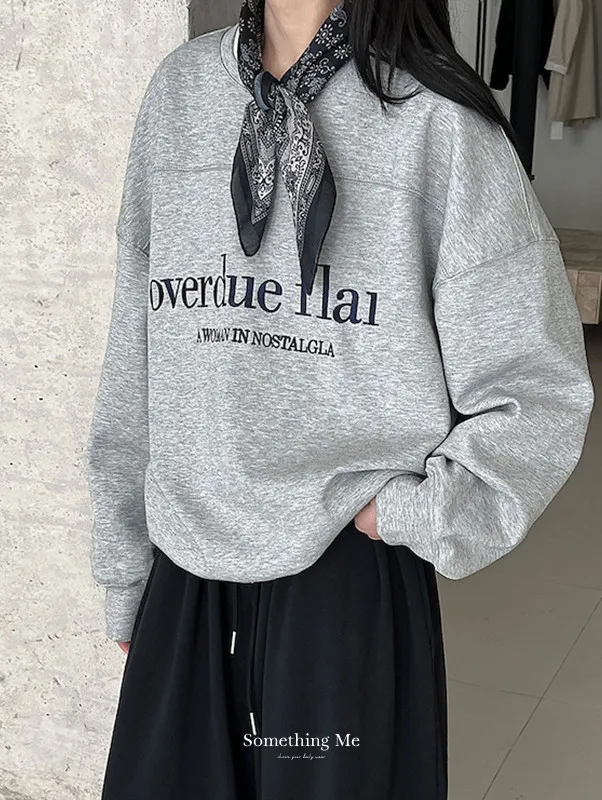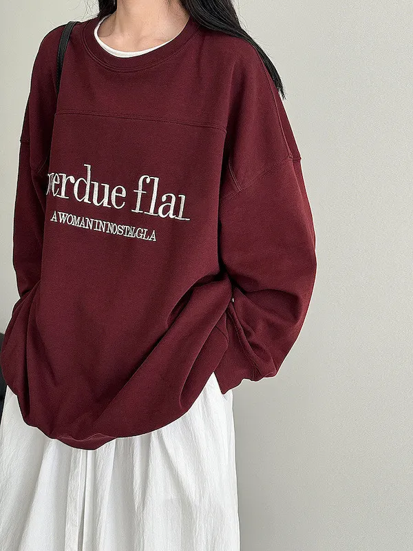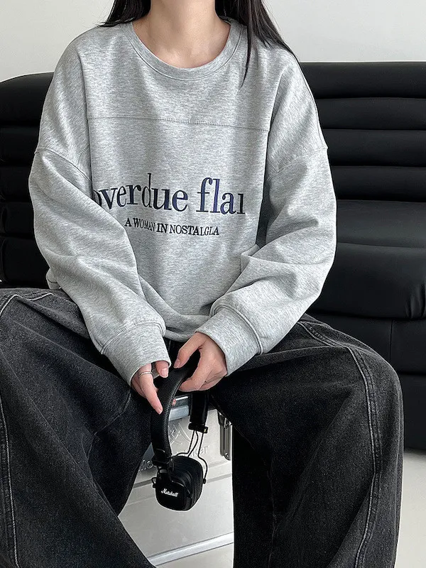 韓系隨性字母刺繡廓形寬鬆衛衣 3色