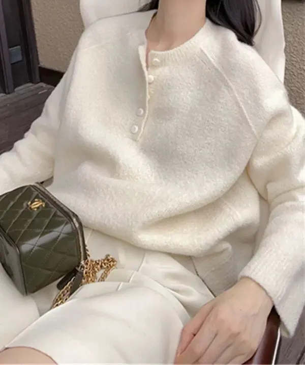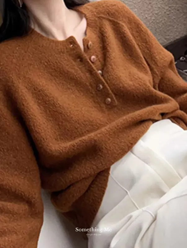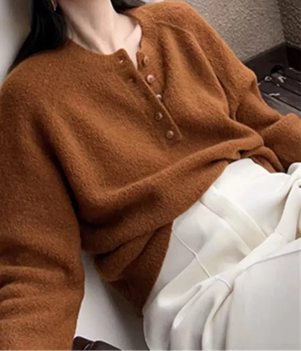 溫柔肌理含絨亨利領針織毛衣 4色