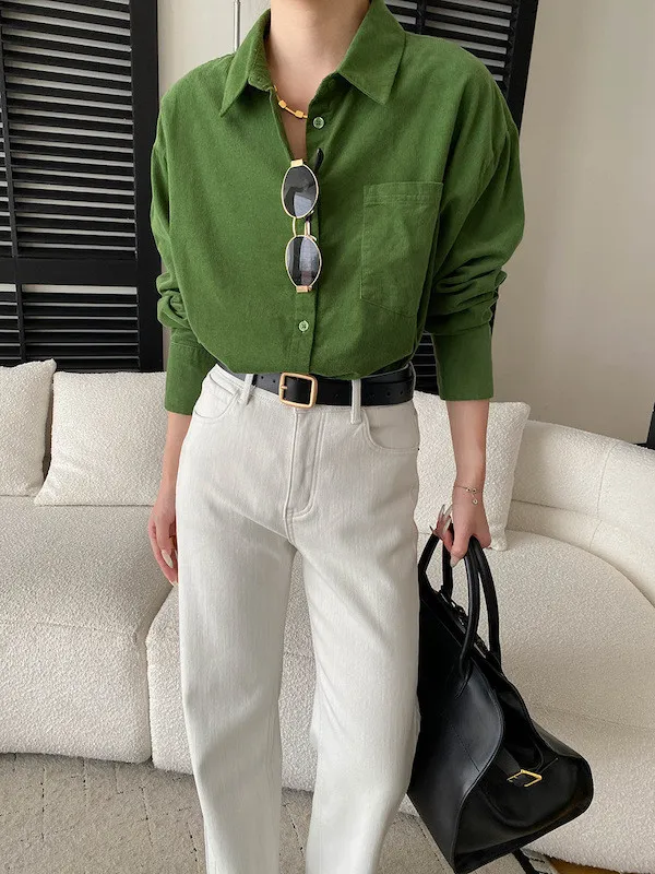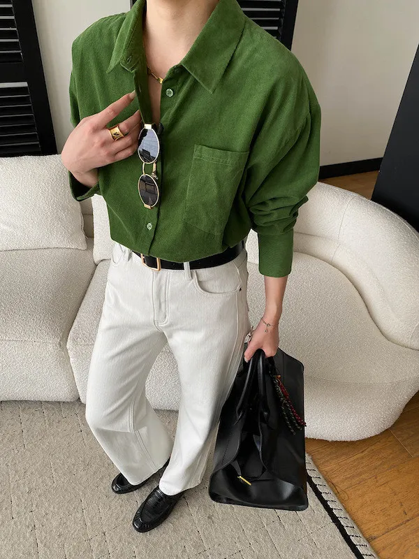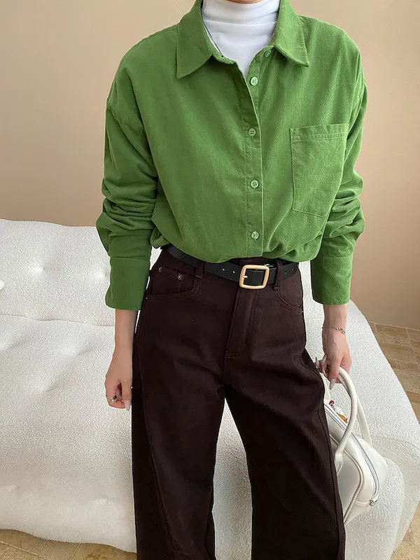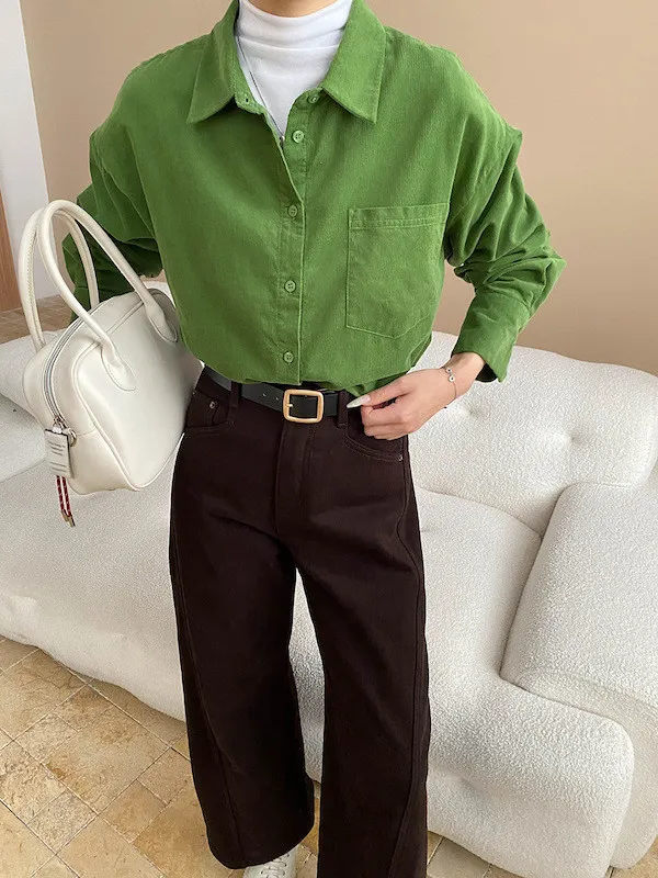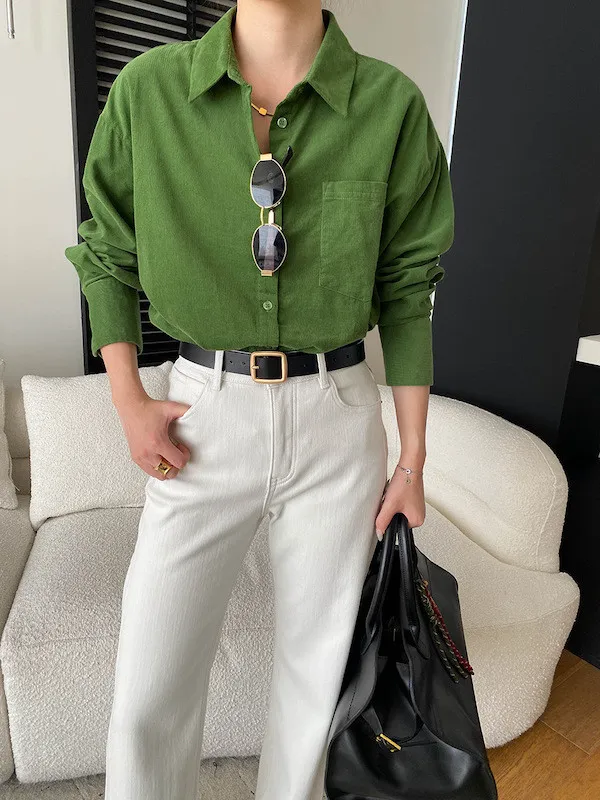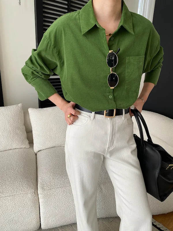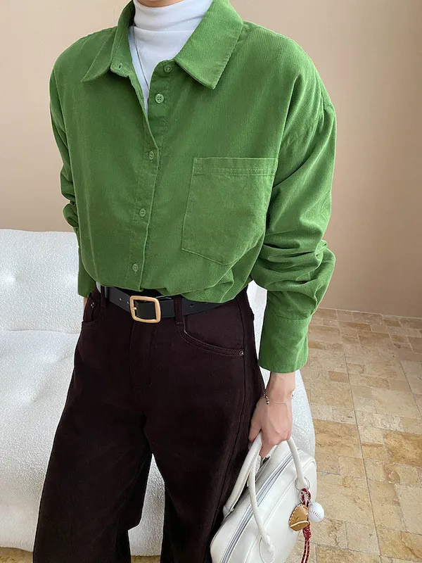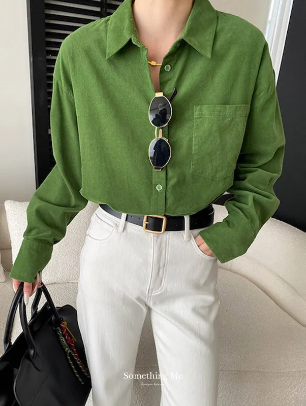 摩登腔調燈芯絨寬鬆長袖襯衫 2色