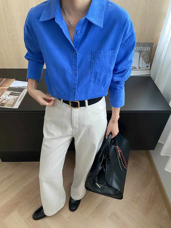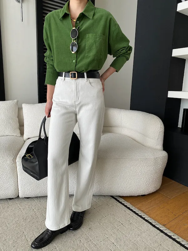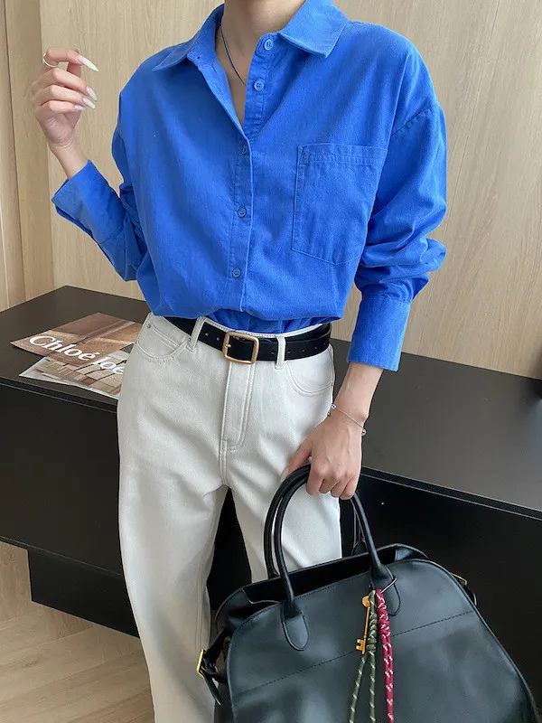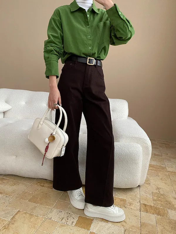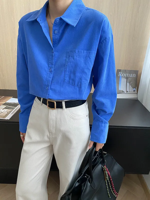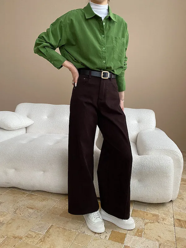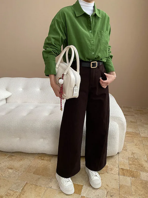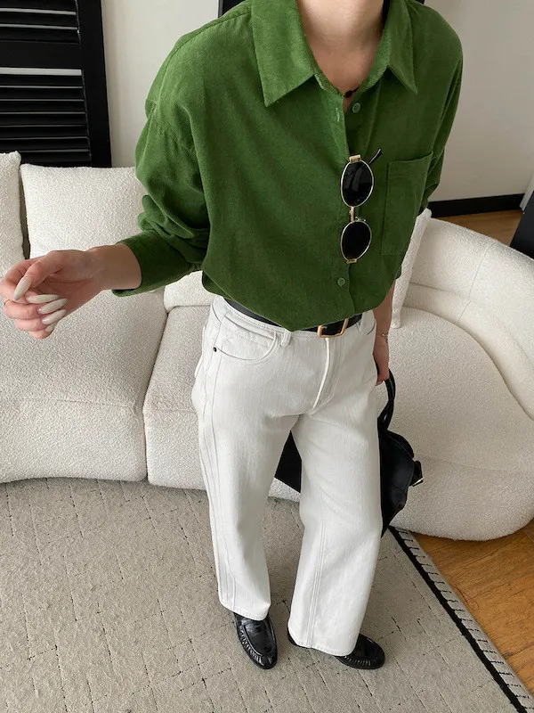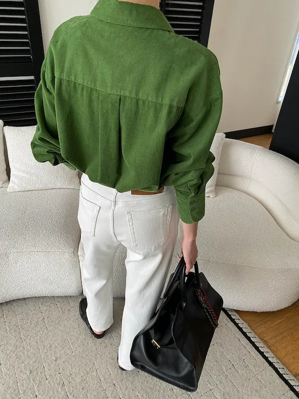 摩登腔調燈芯絨寬鬆長袖襯衫 2色