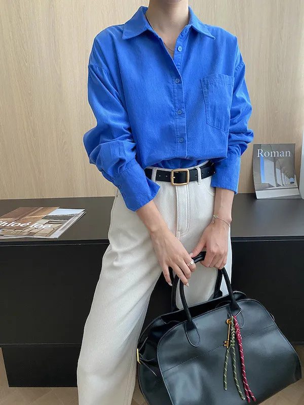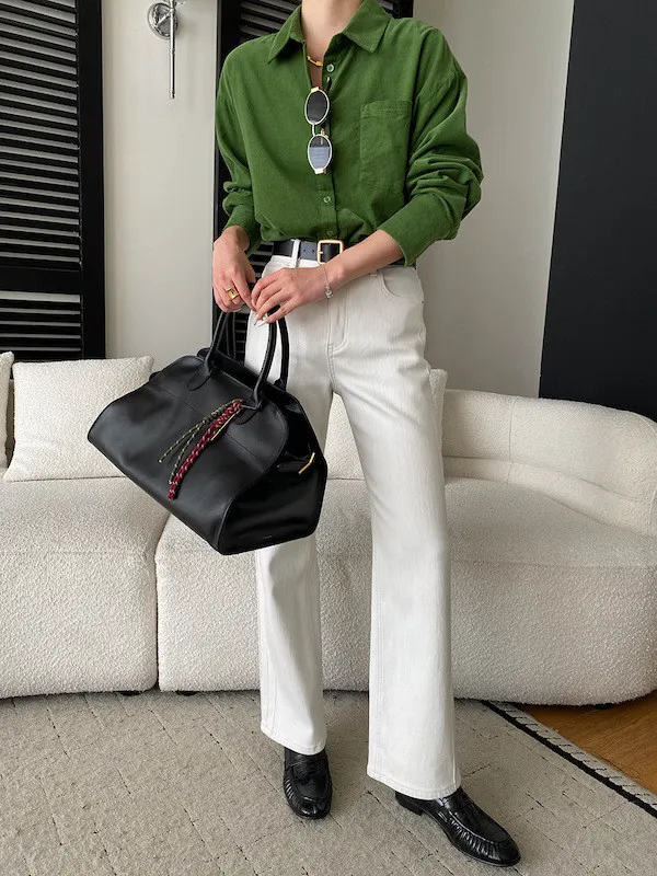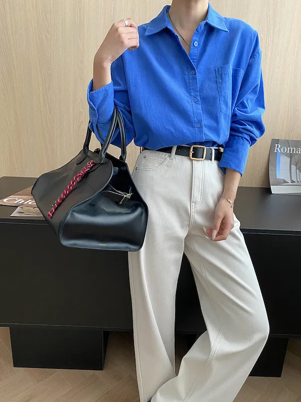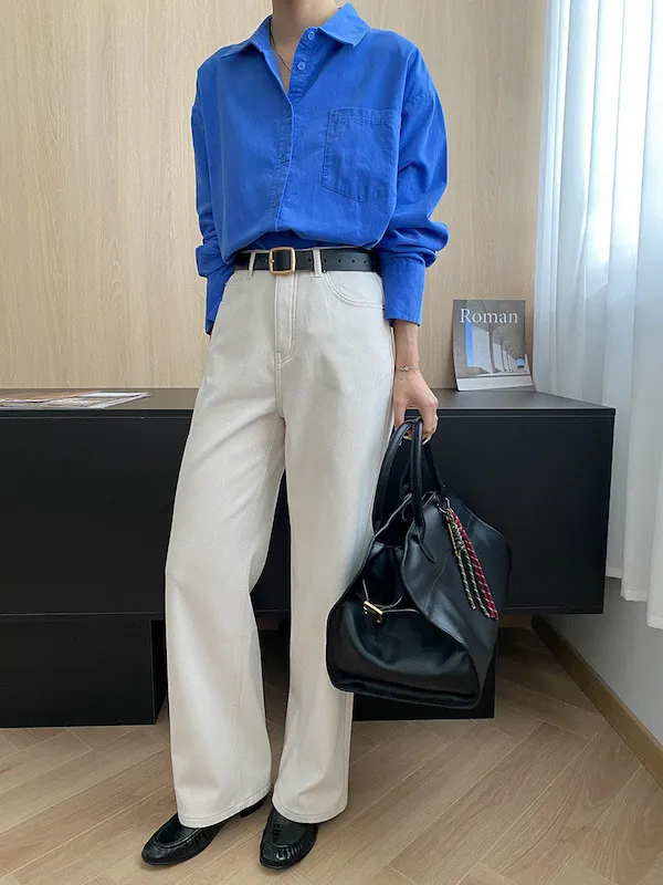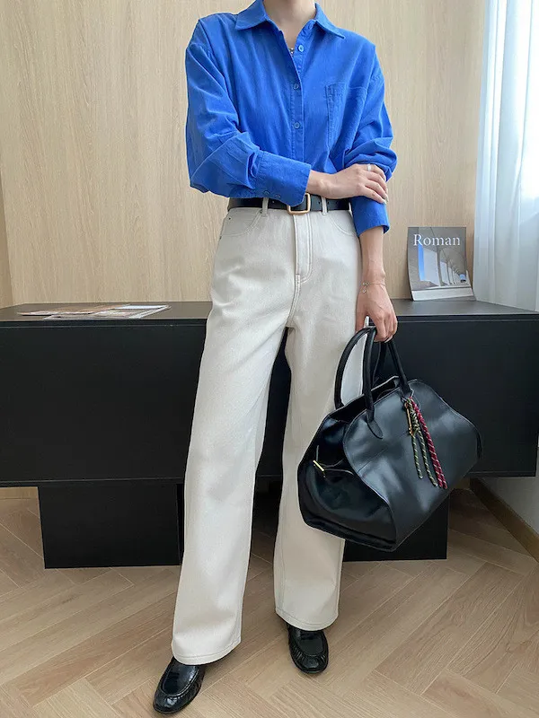 這種襯衫配牛仔褲或西裝褲都可以喲