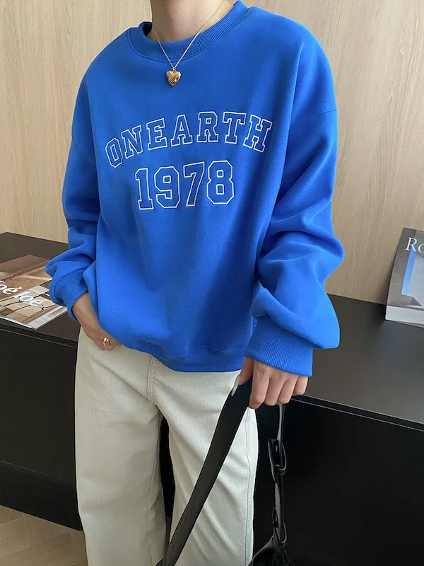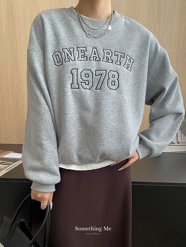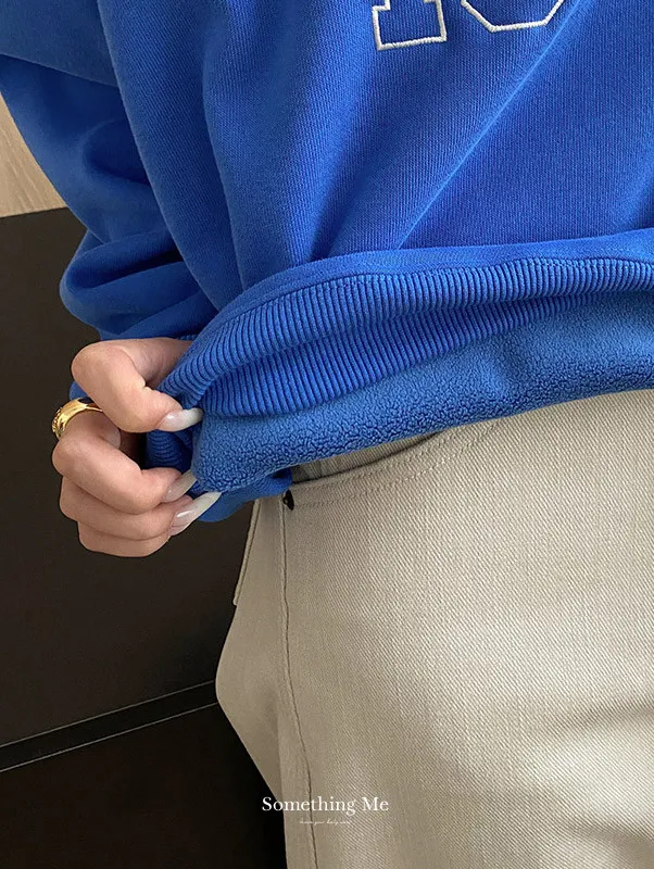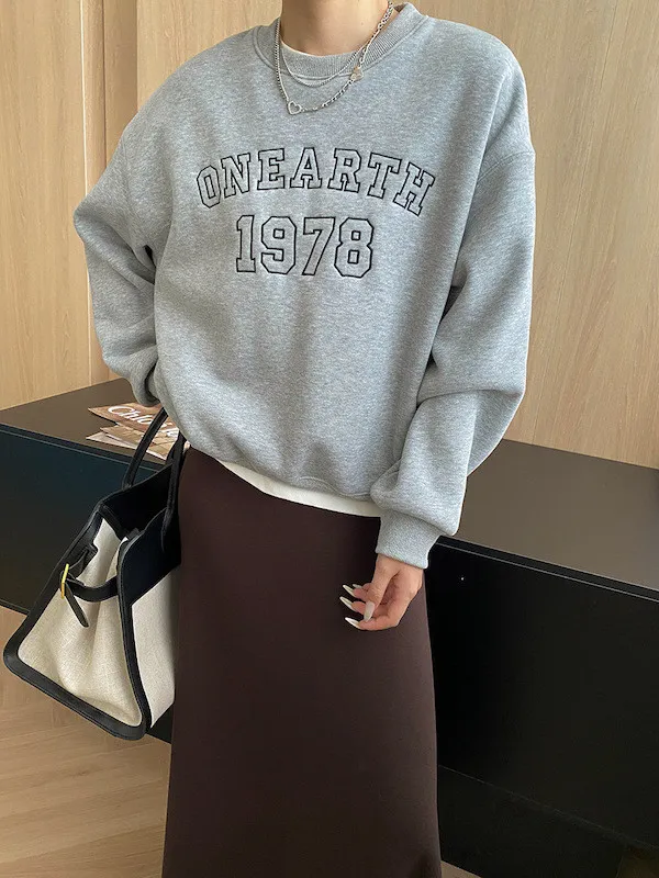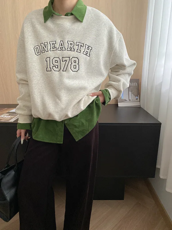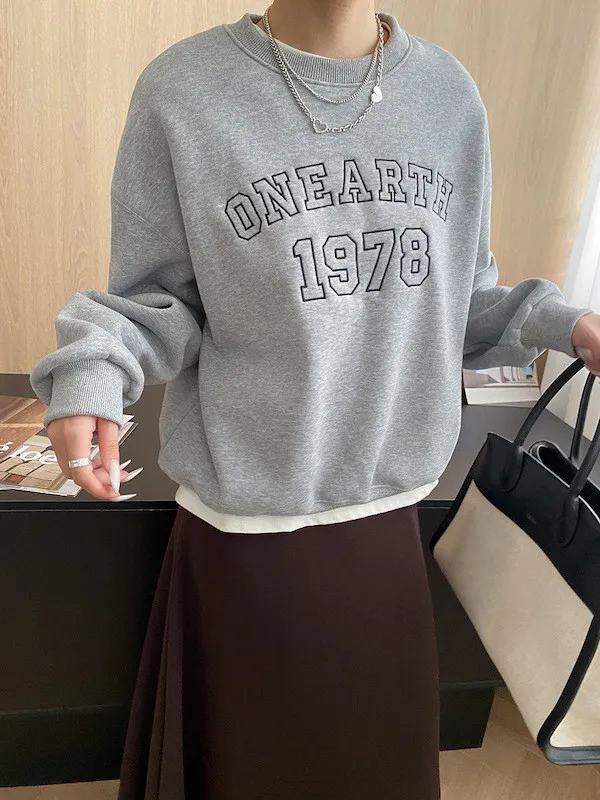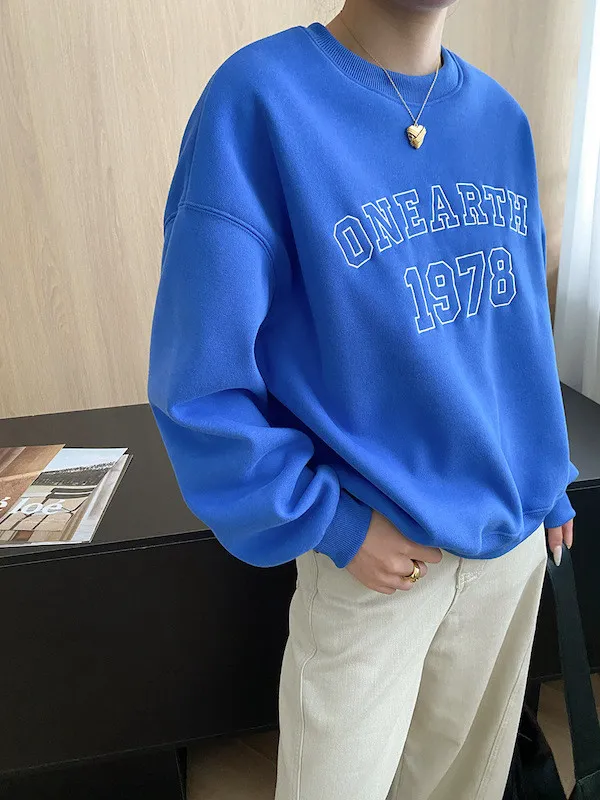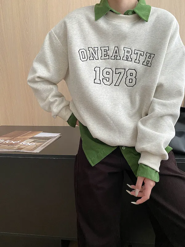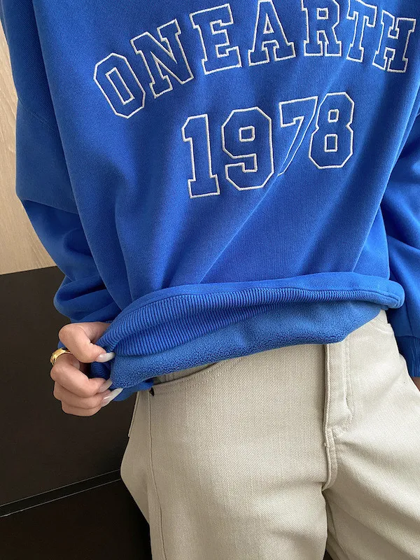 慵懶氛圍 美式字母刺繡加絨寬鬆衛衣 4色