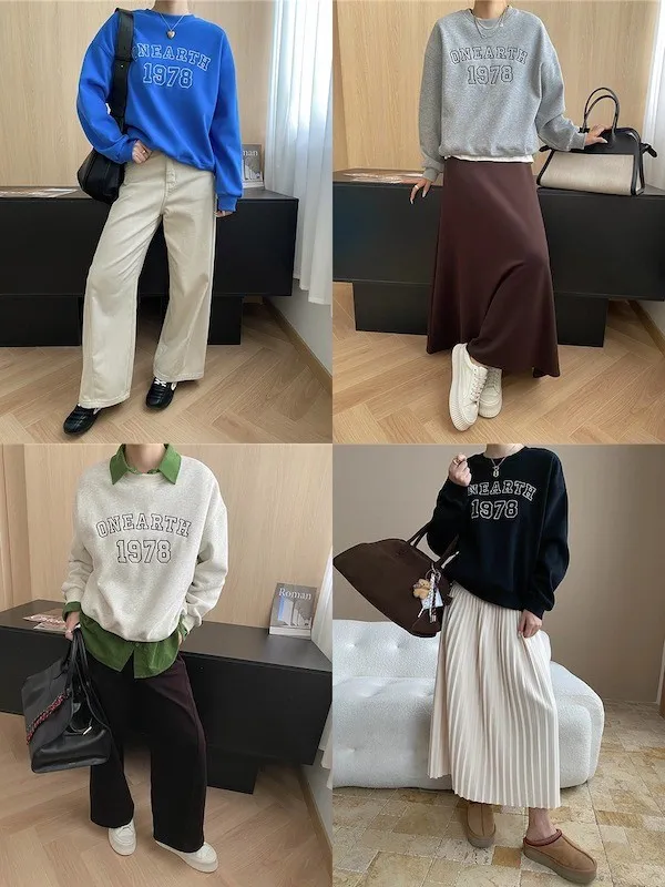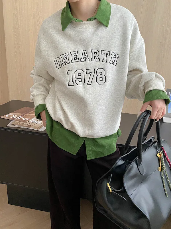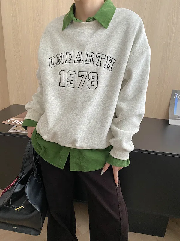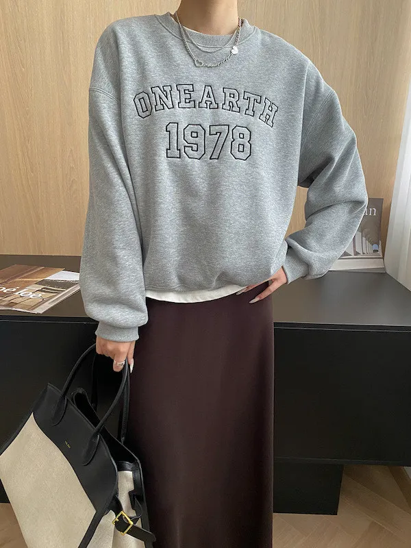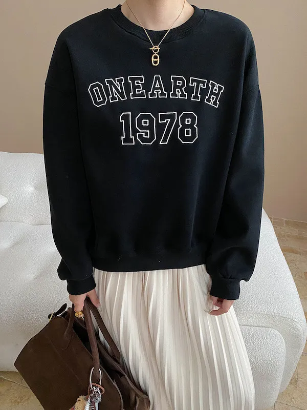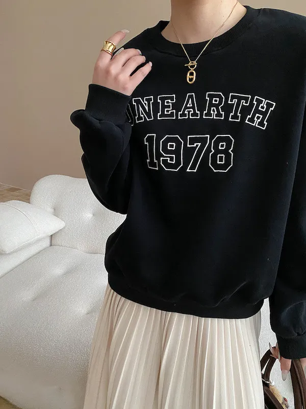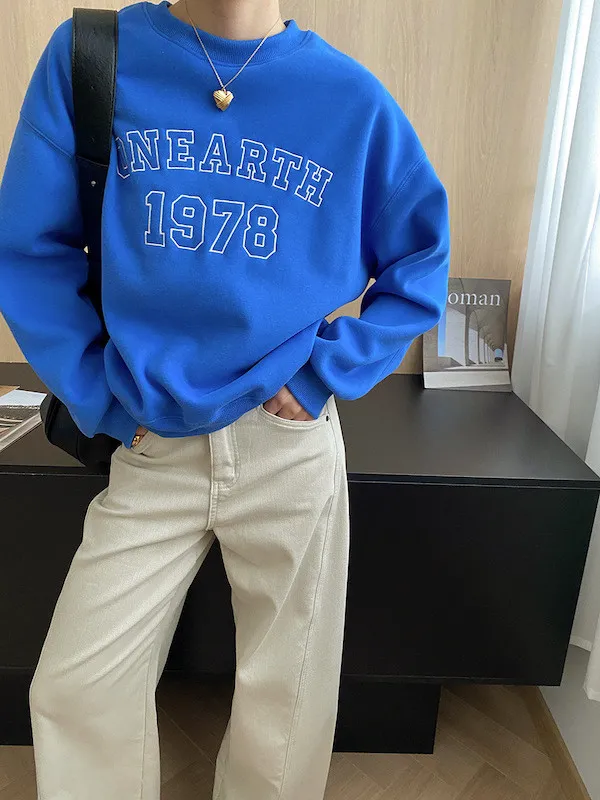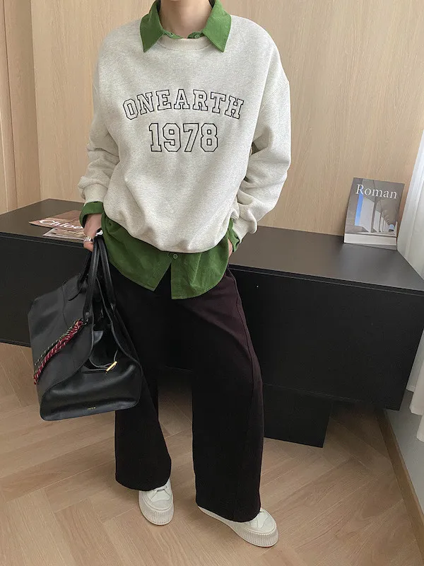 慵懶氛圍 美式字母刺繡加絨寬鬆衛衣 4色