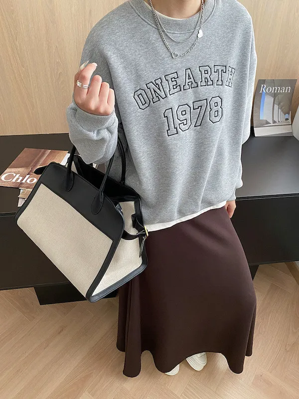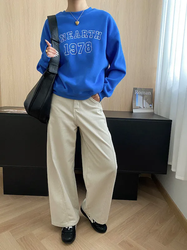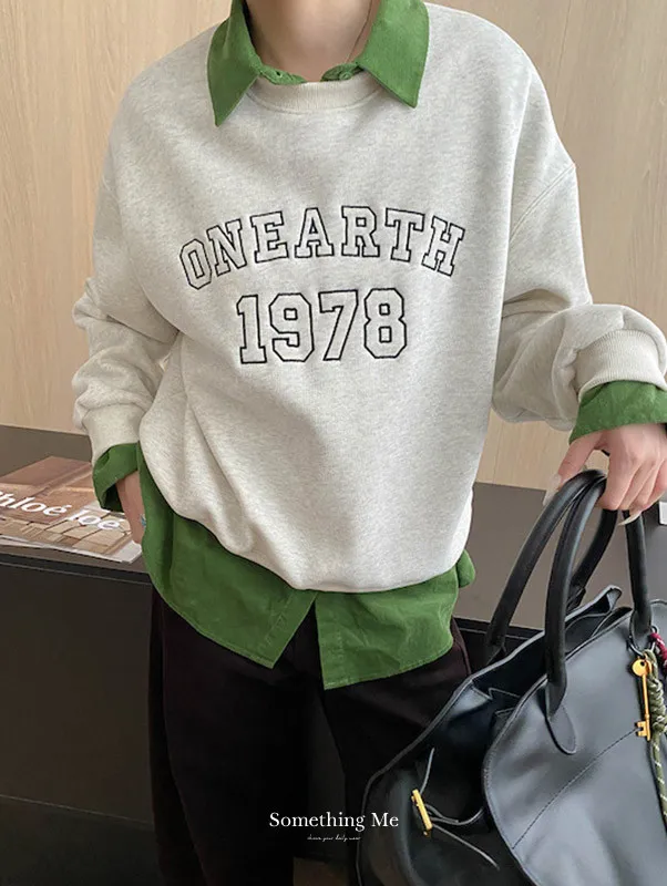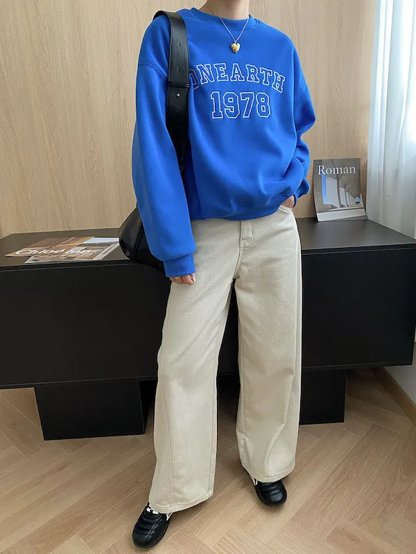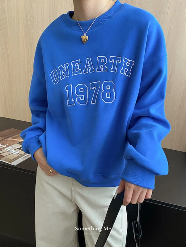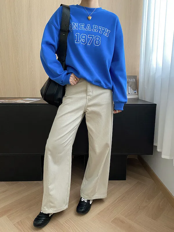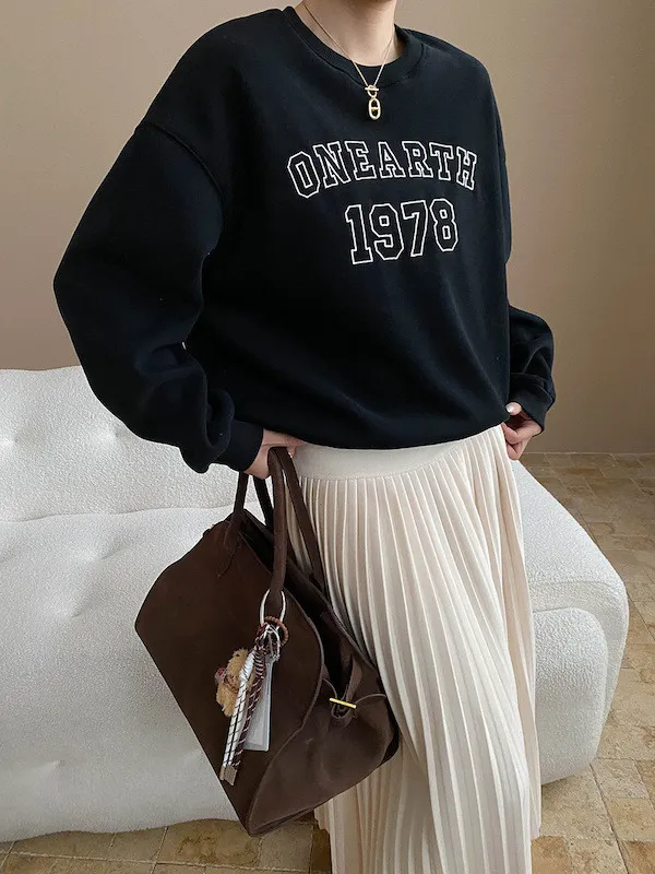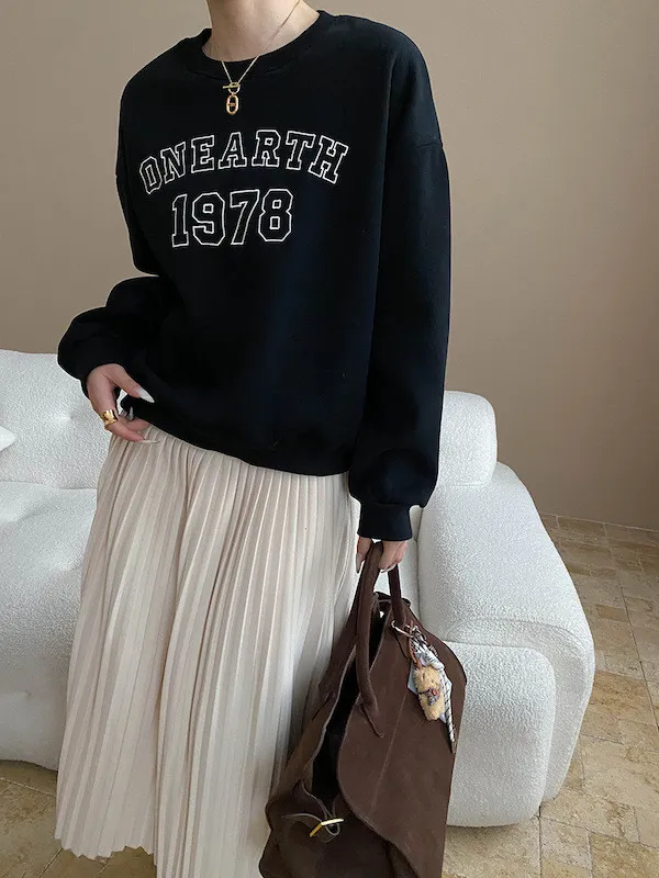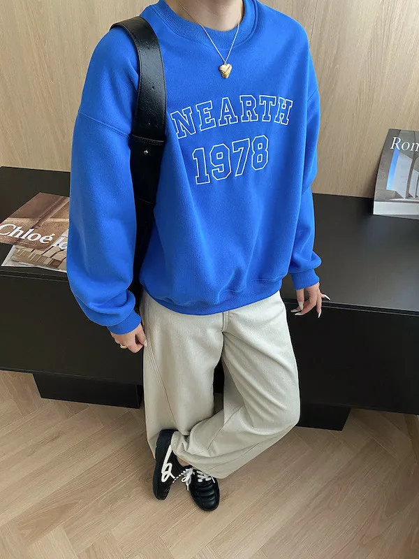慵懶氛圍 美式字母刺繡加絨寬鬆衛衣 4色