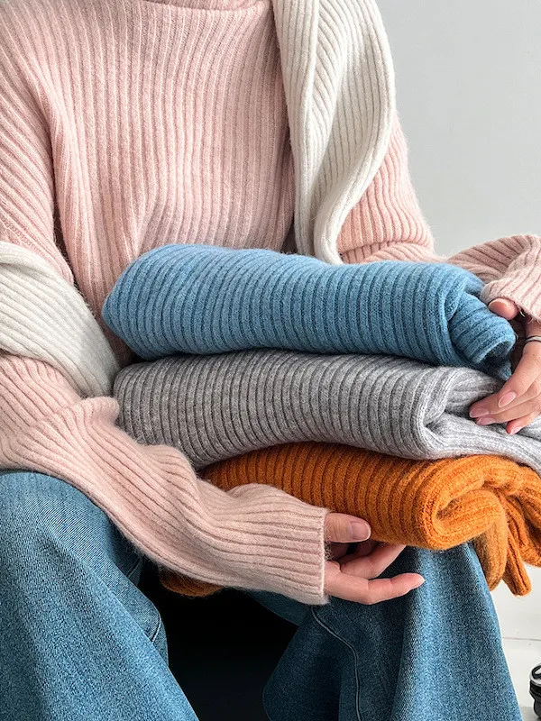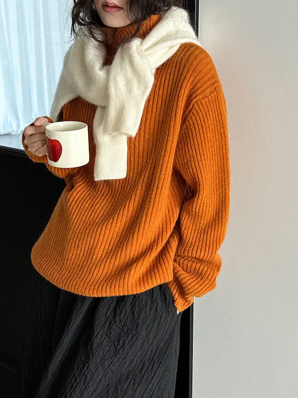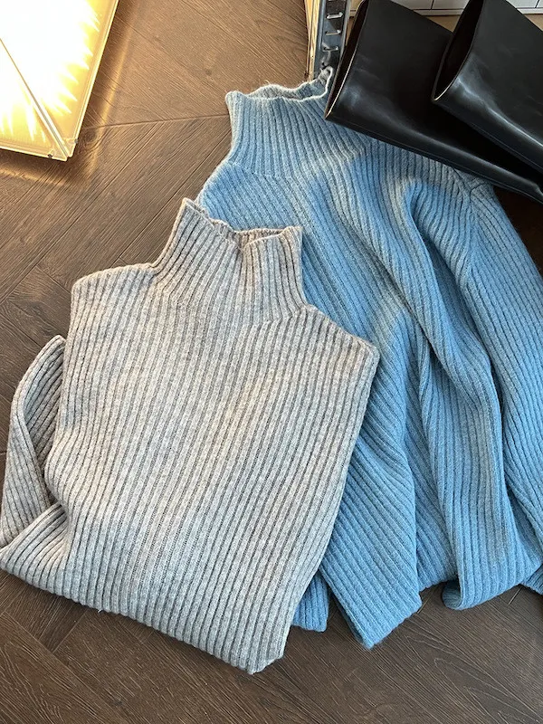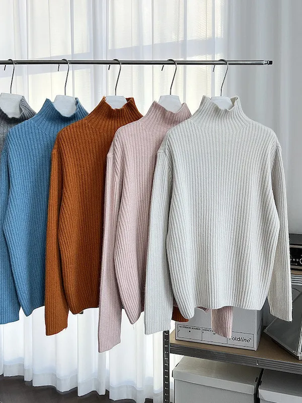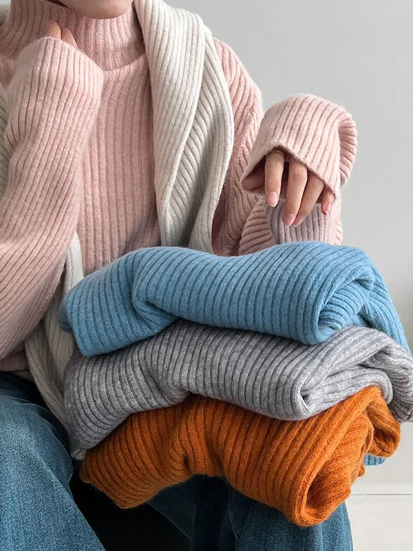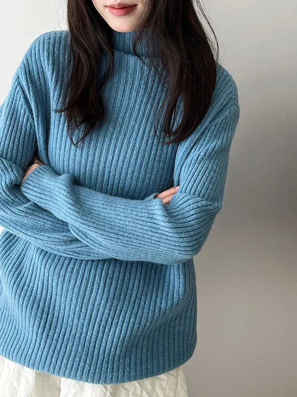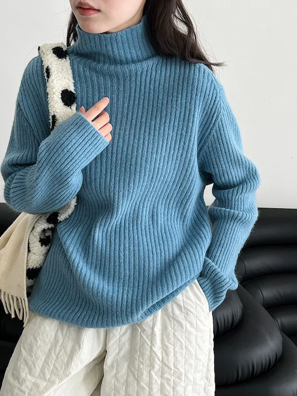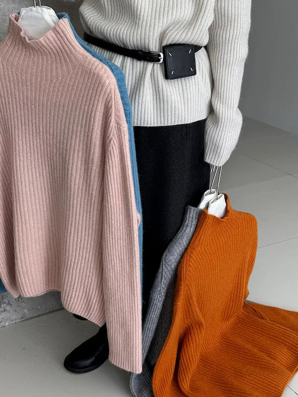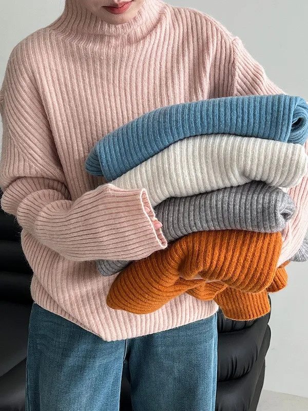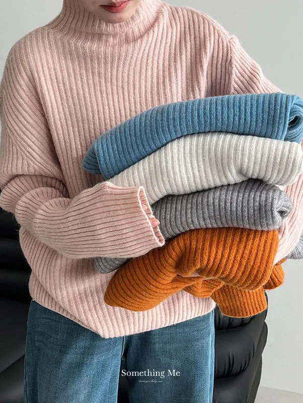 冬日氛圍慵懶高領粗針豎條毛衣 5色