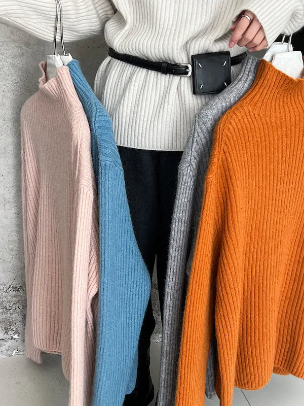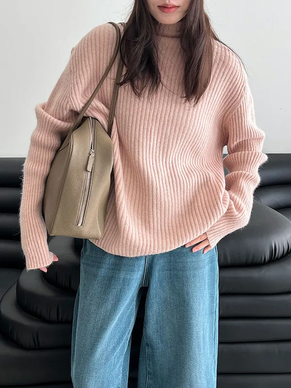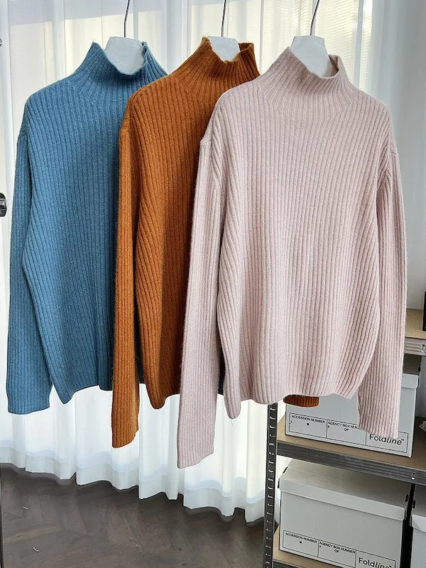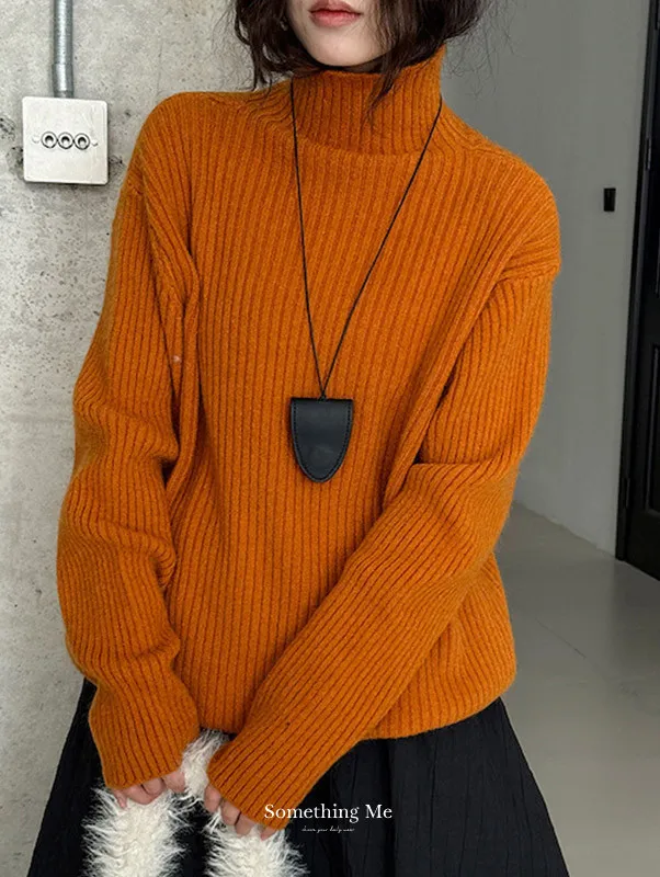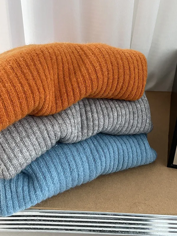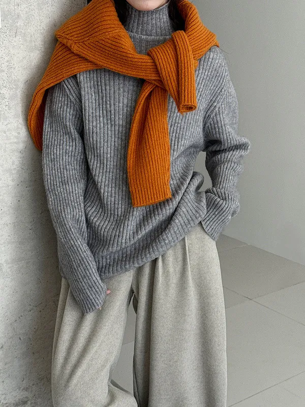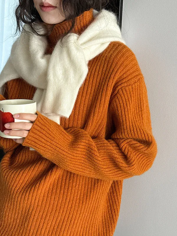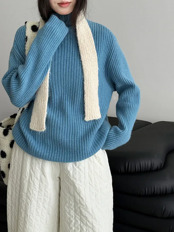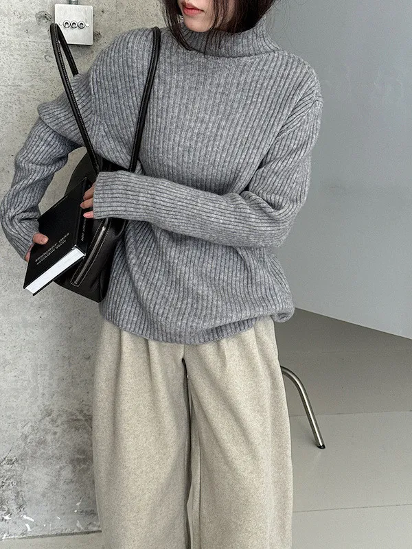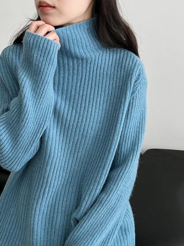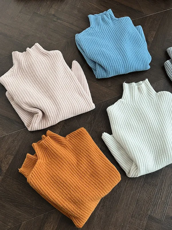 冬日氛圍慵懶高領粗針豎條毛衣 5色