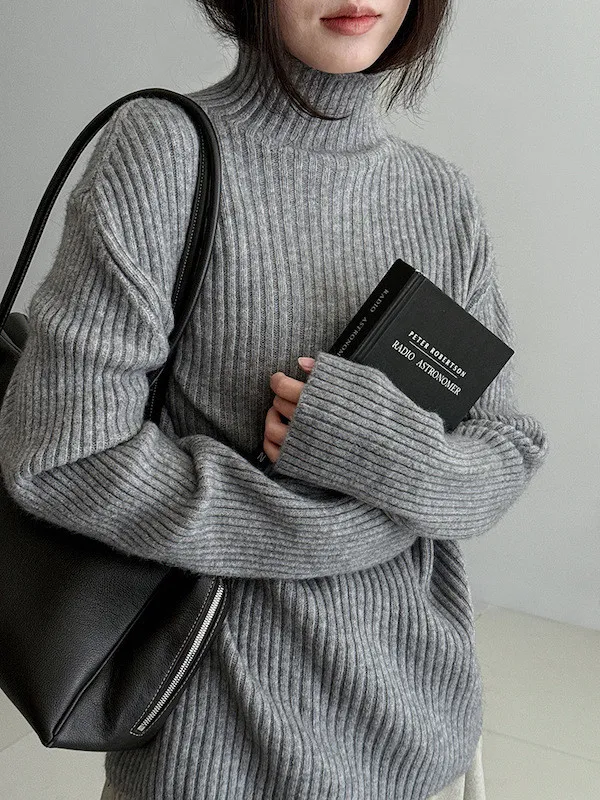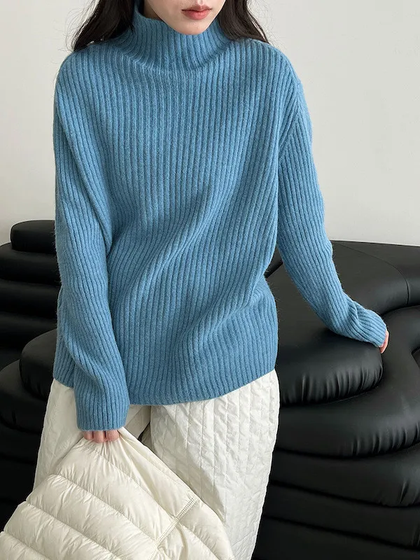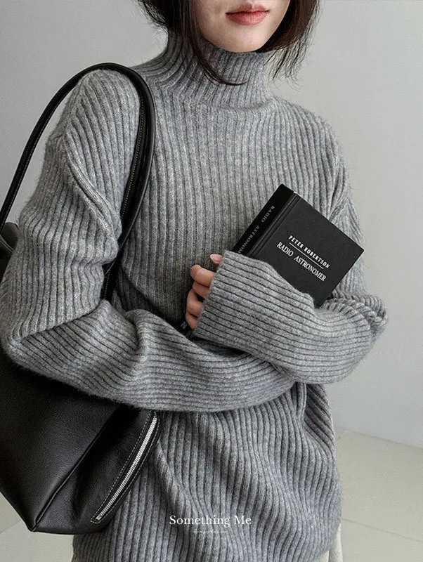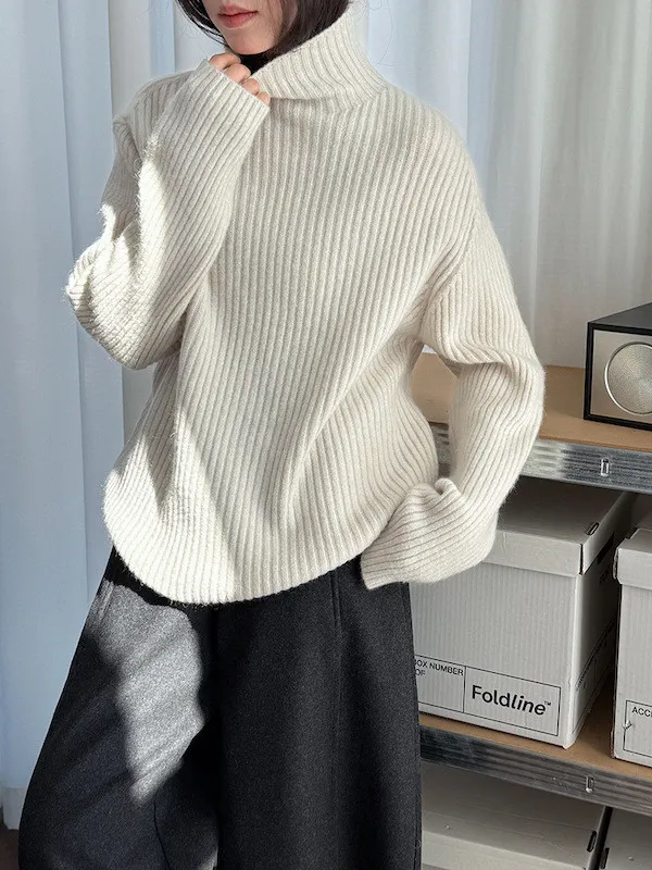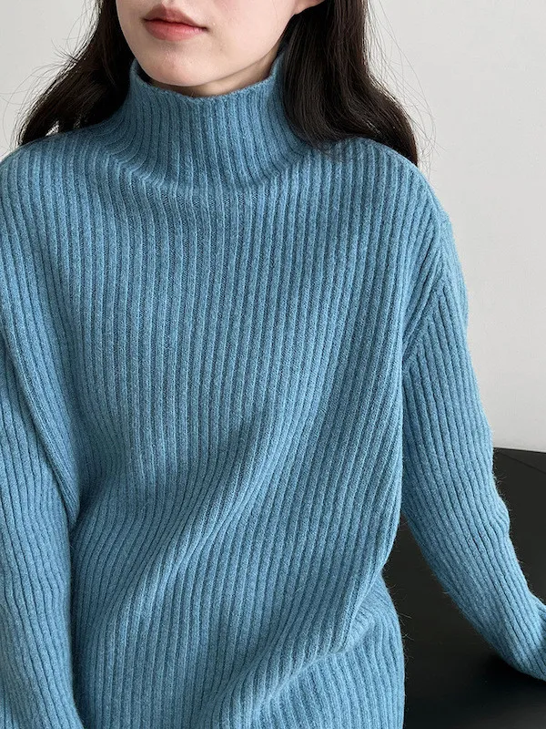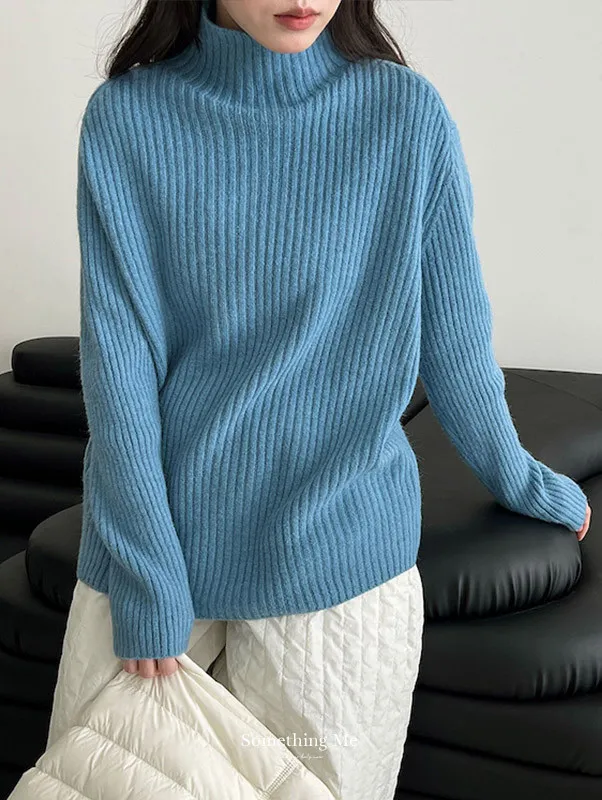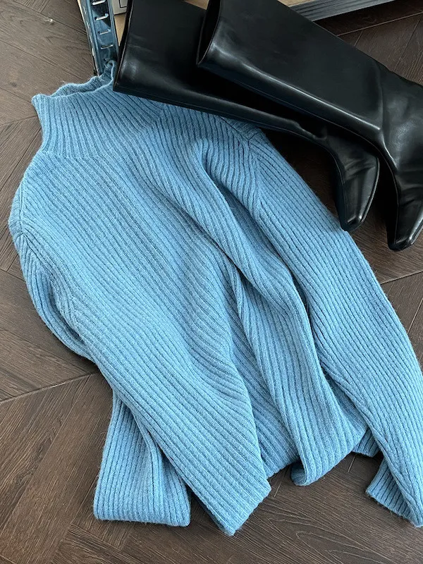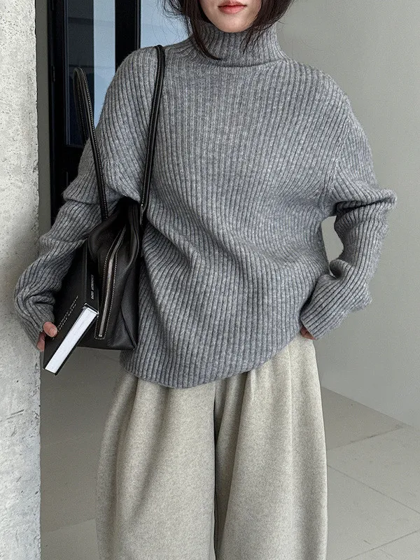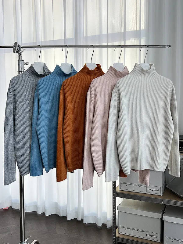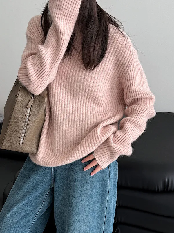 冬日氛圍慵懶高領粗針豎條毛衣 5色