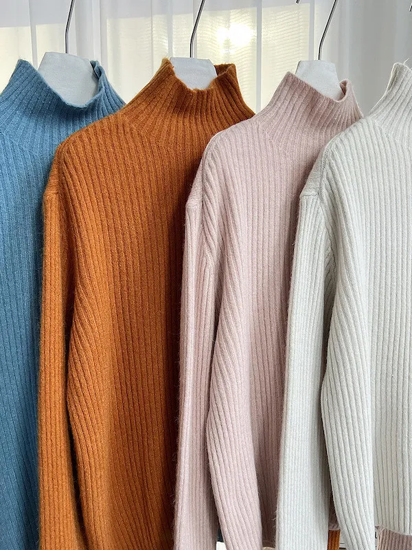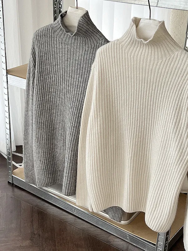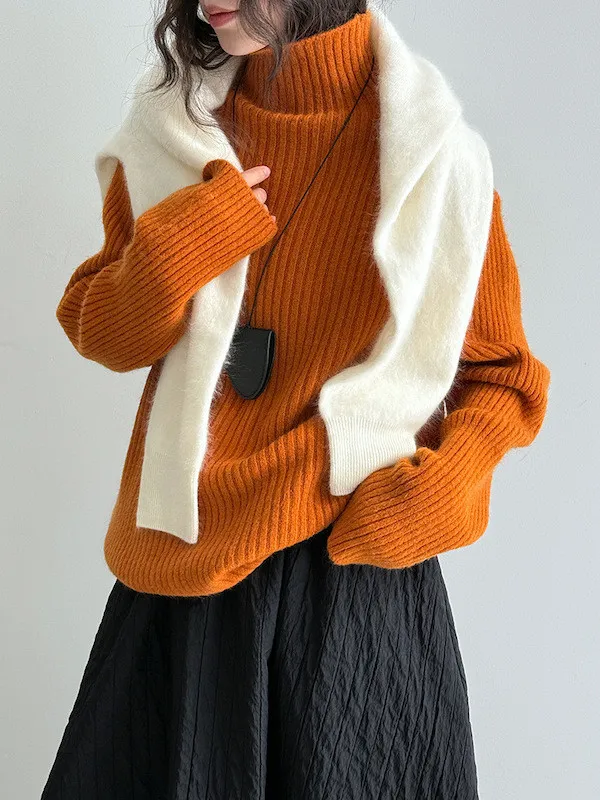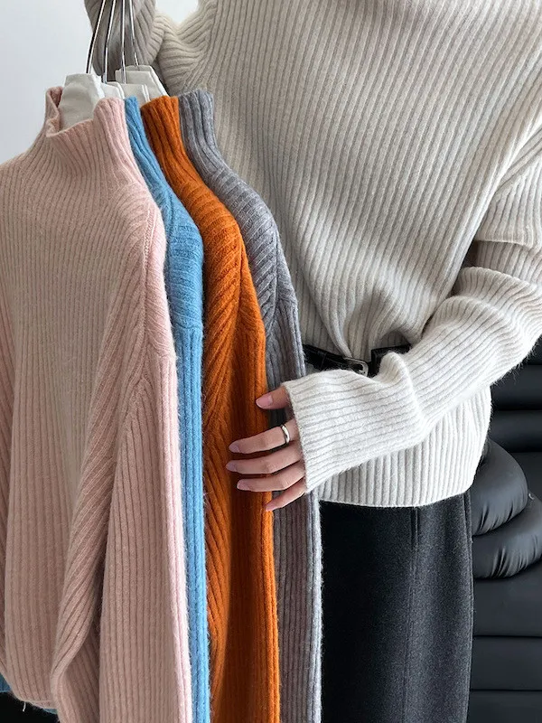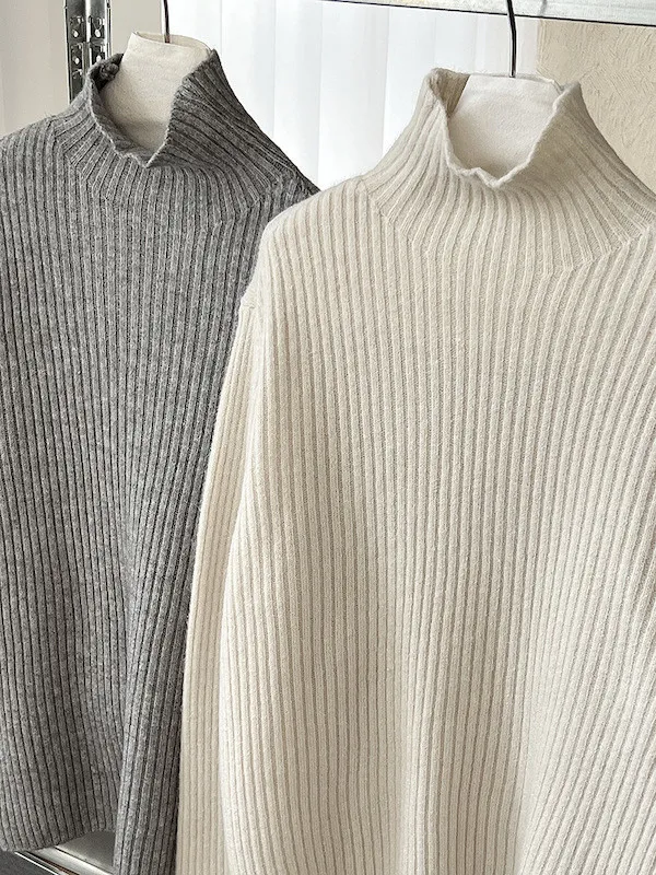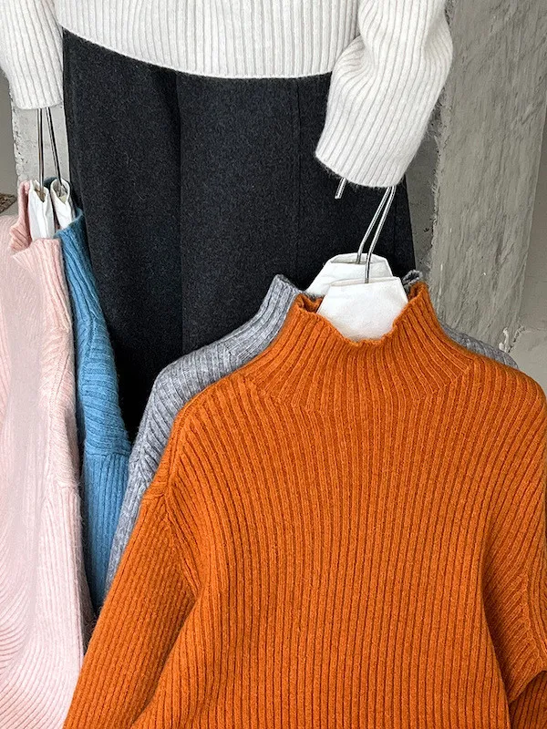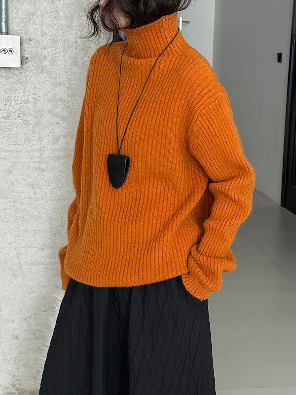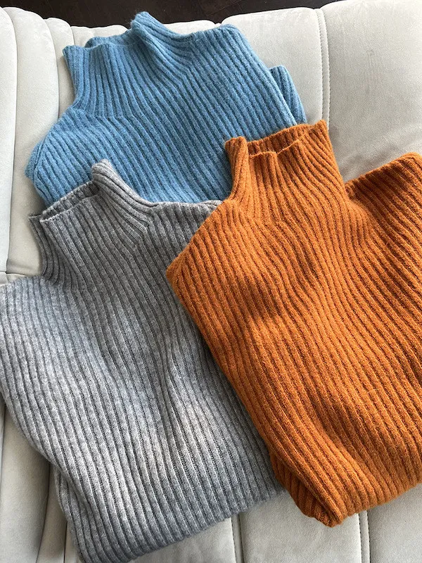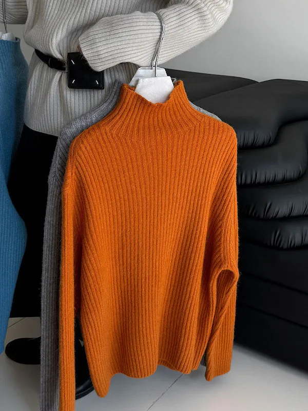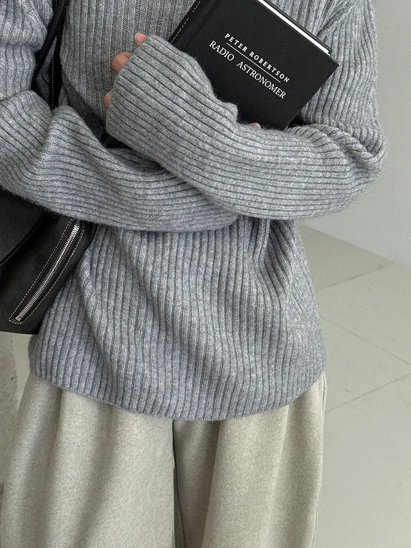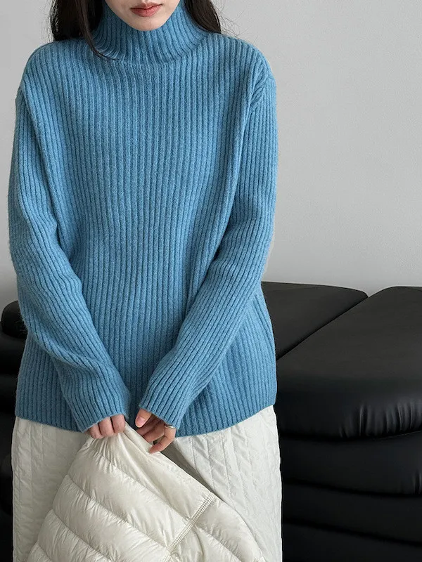 冬日氛圍慵懶高領粗針豎條毛衣 5色