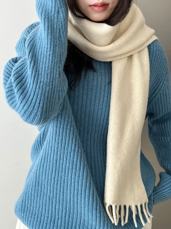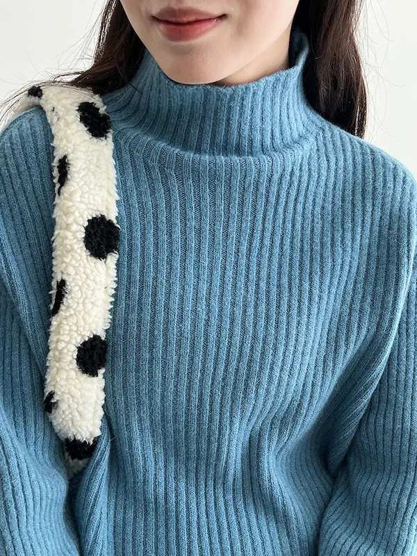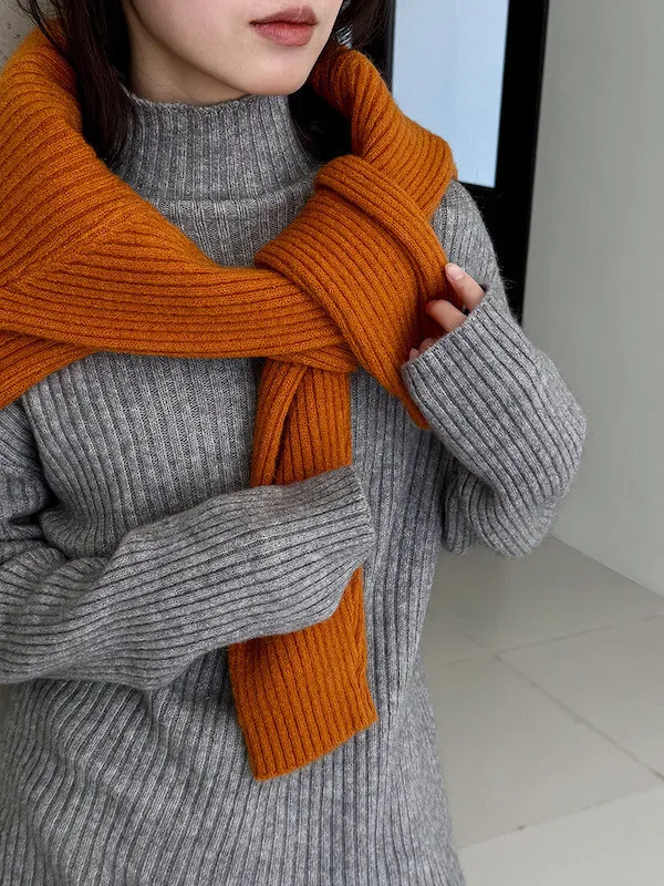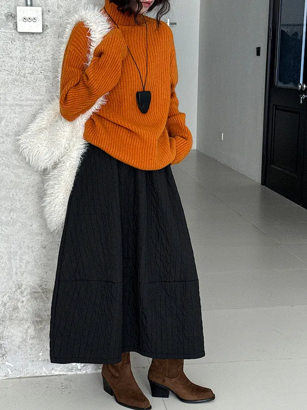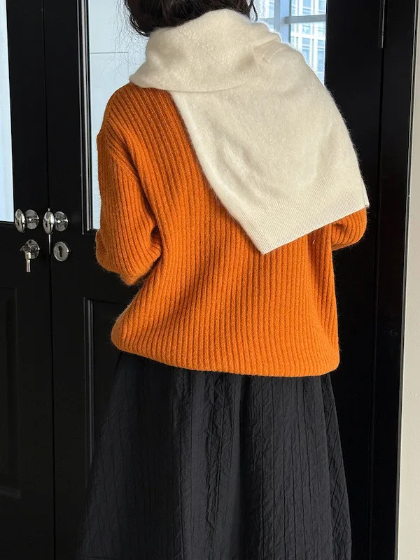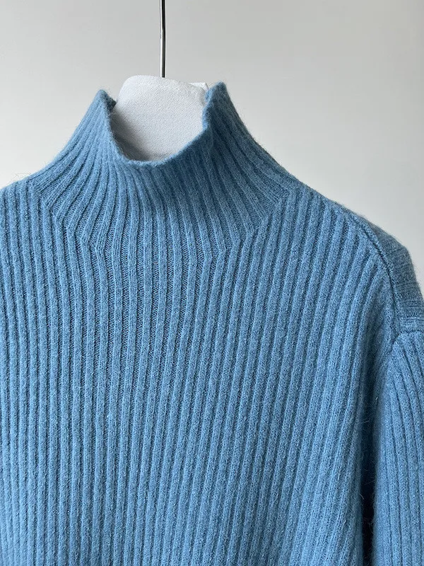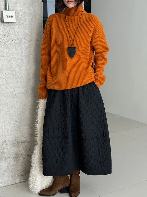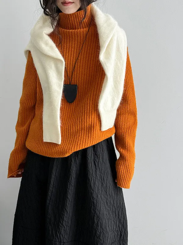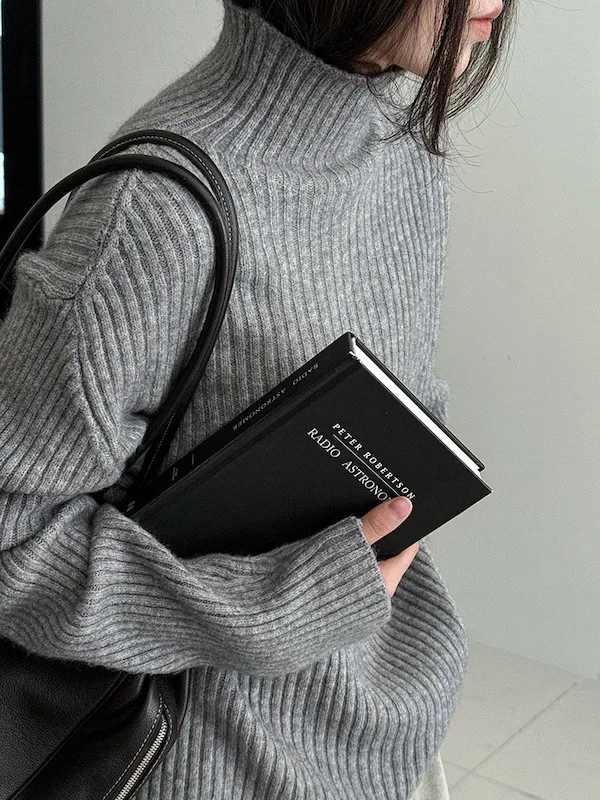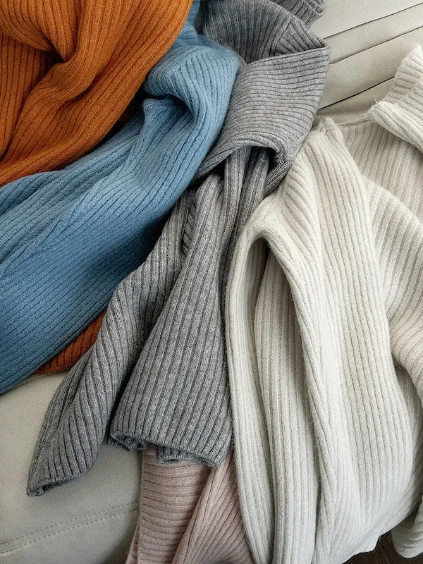 冬日氛圍慵懶高領粗針豎條毛衣 5色