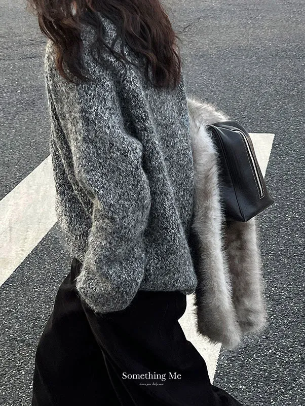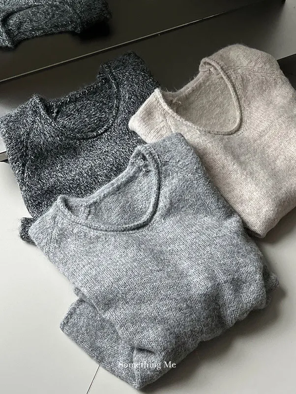 軟糯舒心V領卷邊寬鬆針織上衣3色