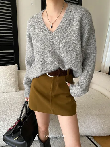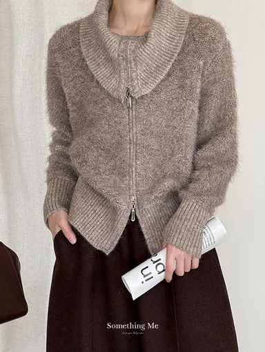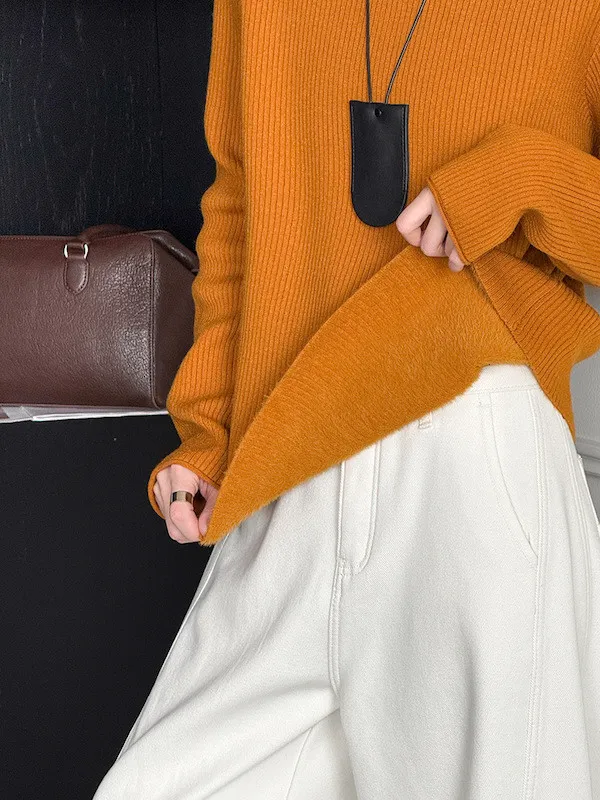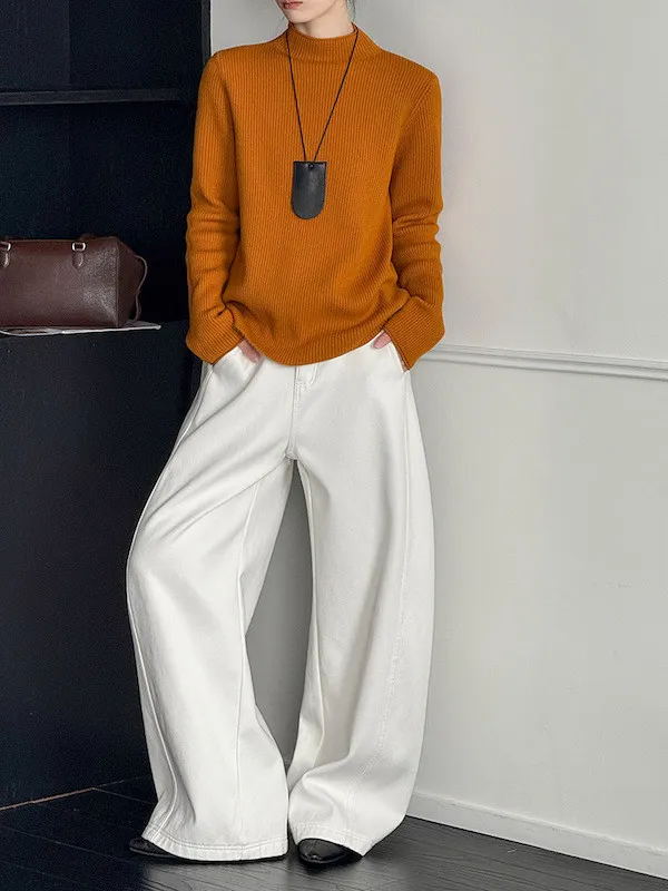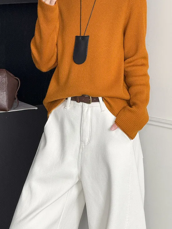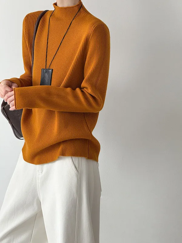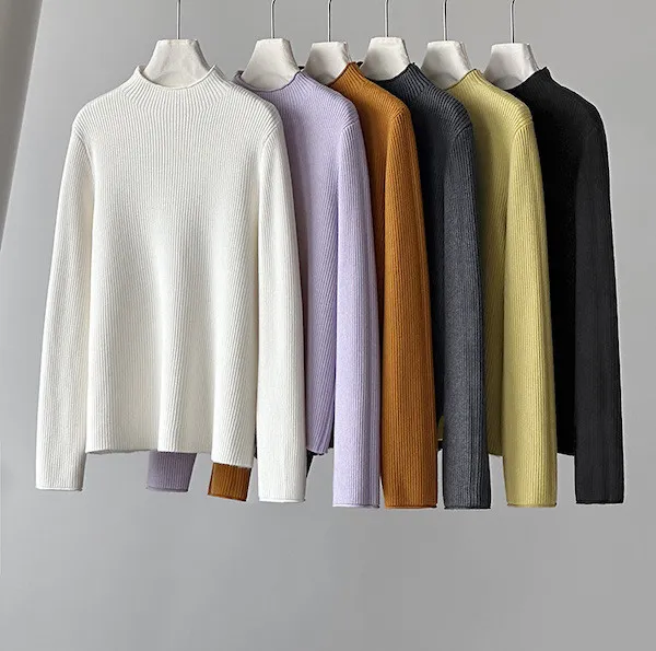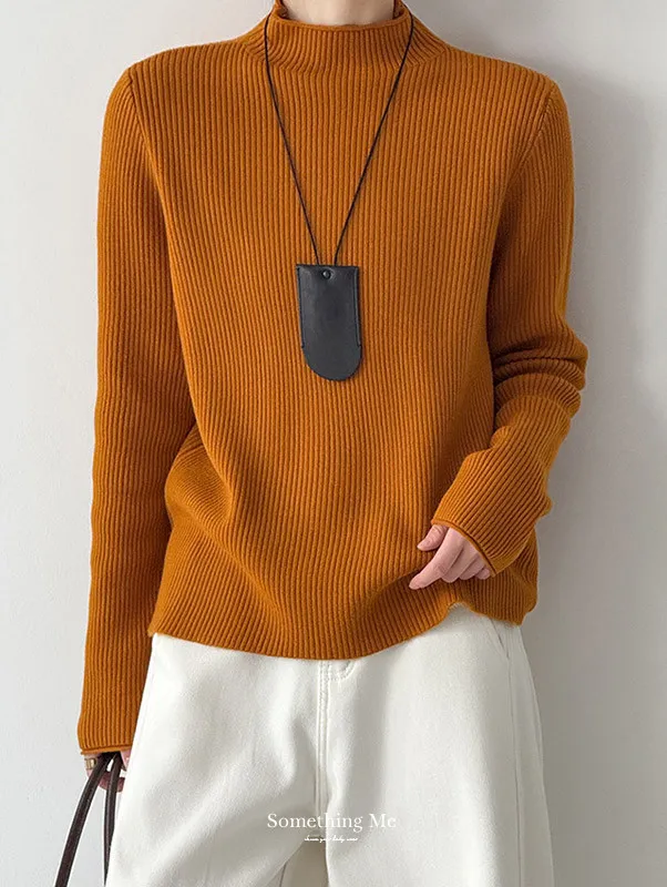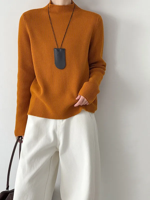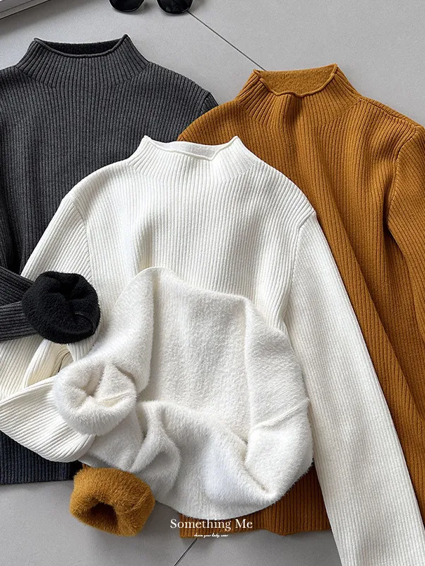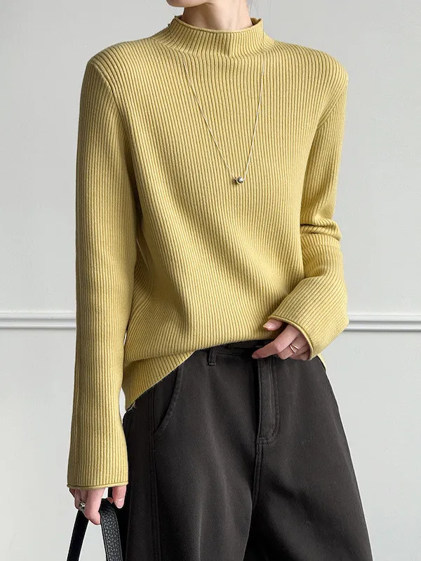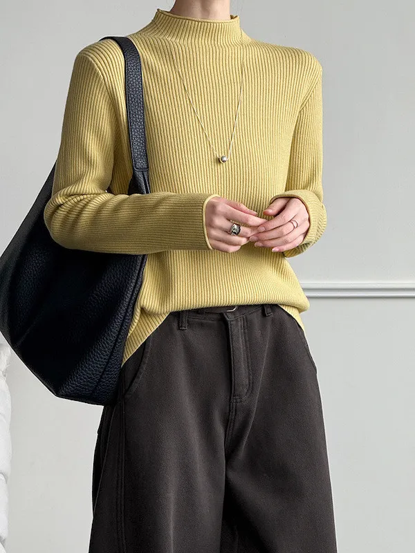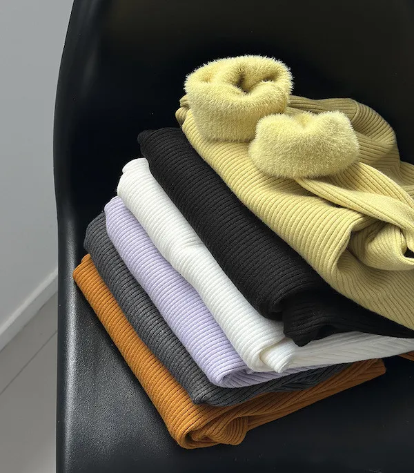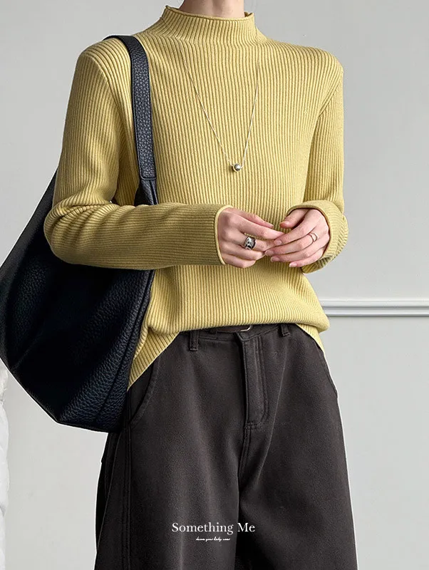 復古簡約豎條半高領針織毛衣(內刷毛) 6色