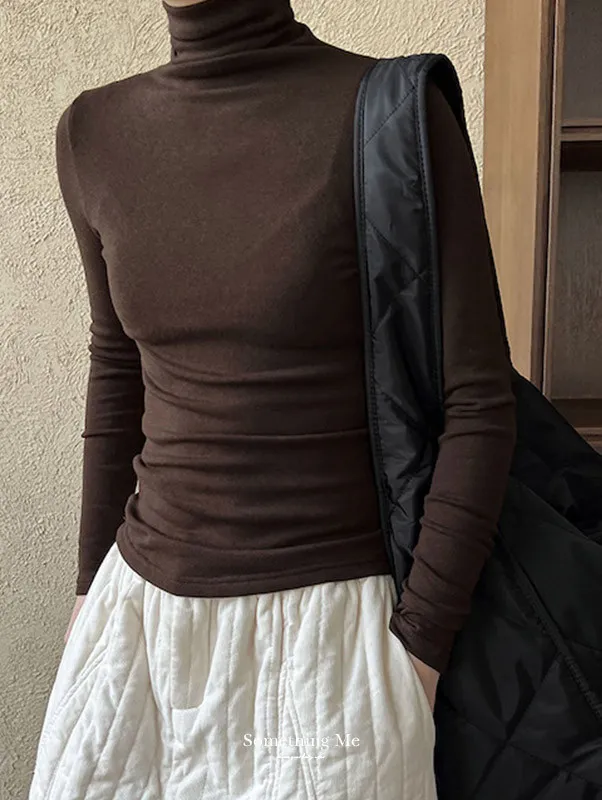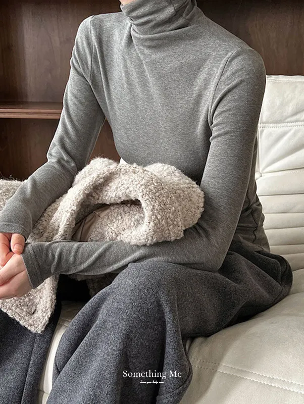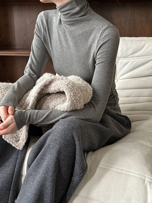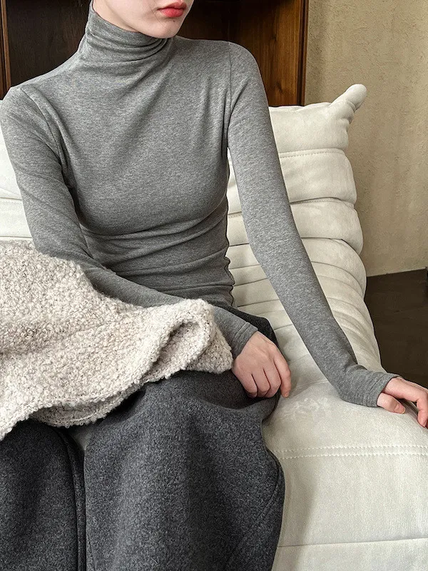 氣質堆堆領軟糯修身加絨高領上衣 5色