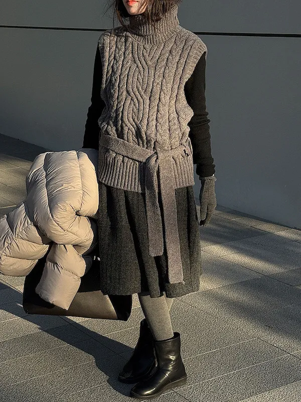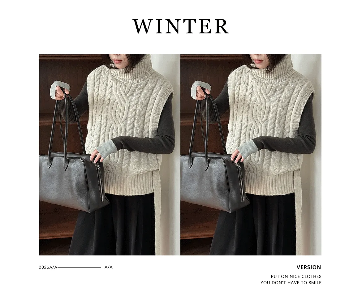 高領設計溫柔包裹,在層次疊搭間,讓優雅與溫度並存