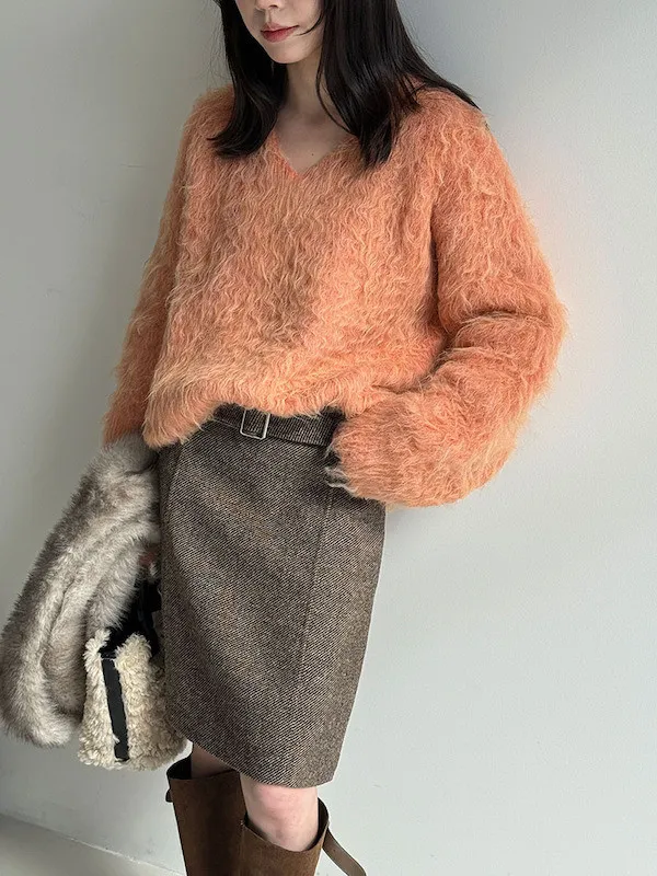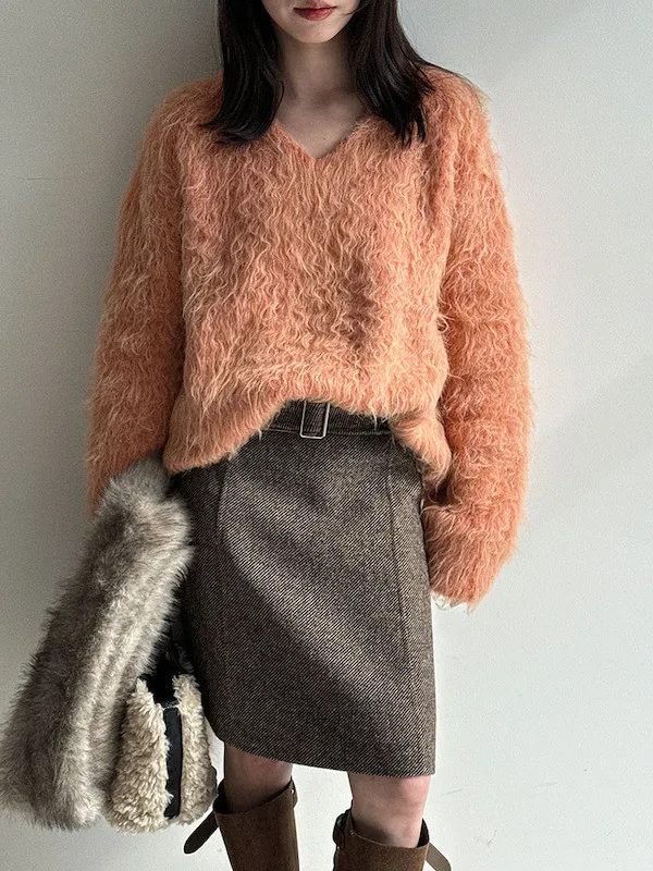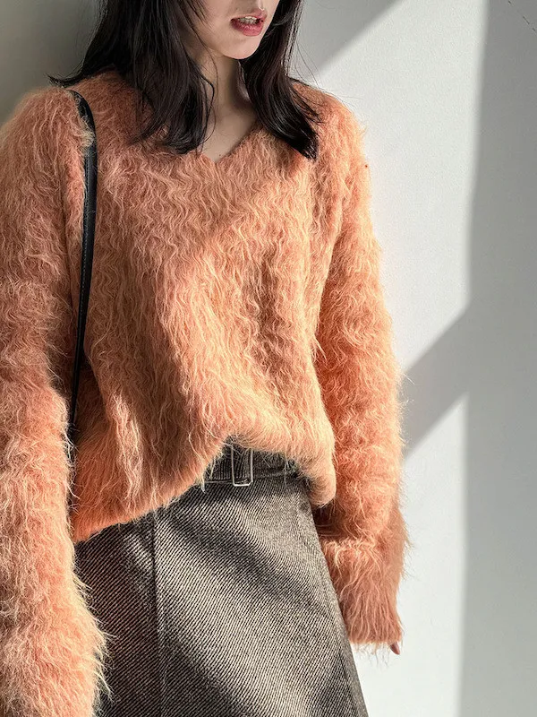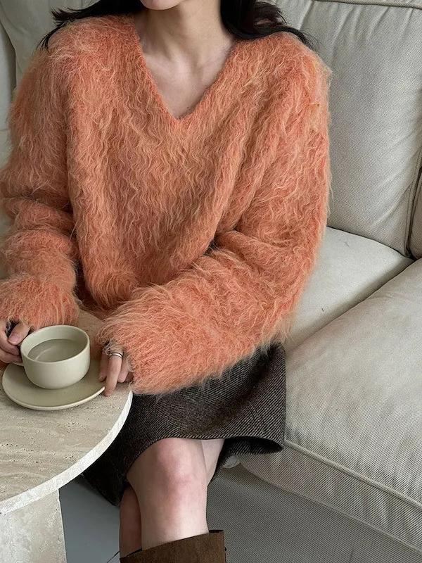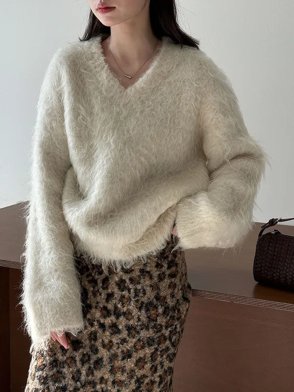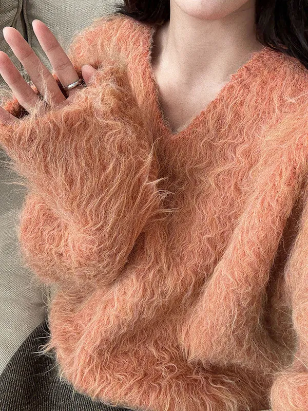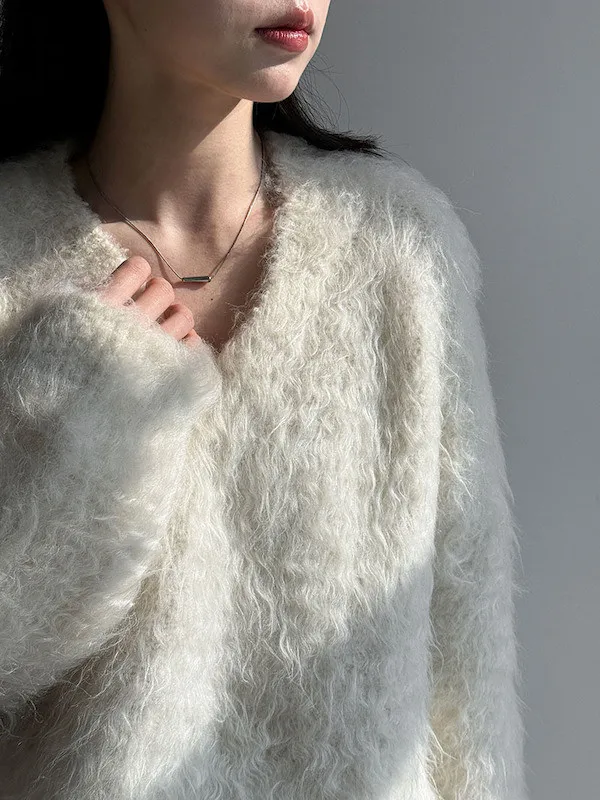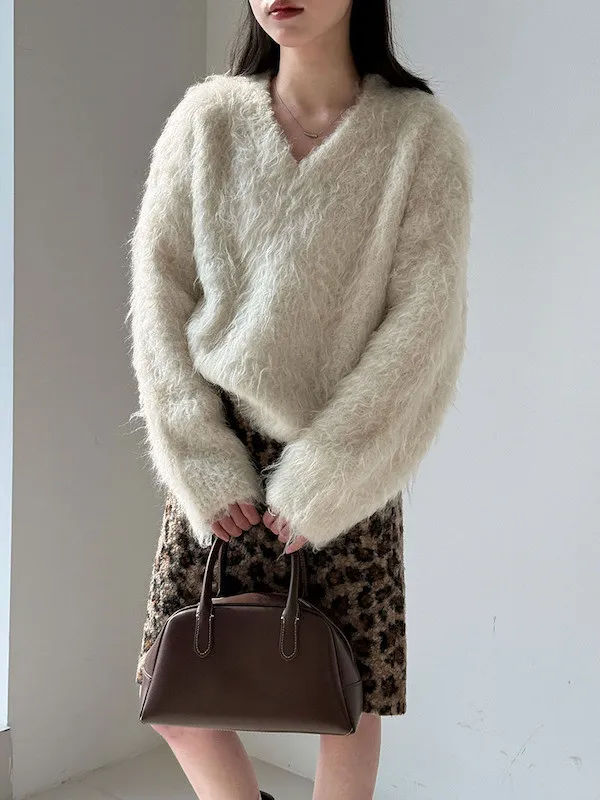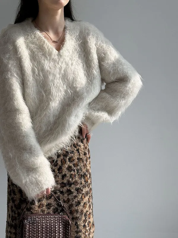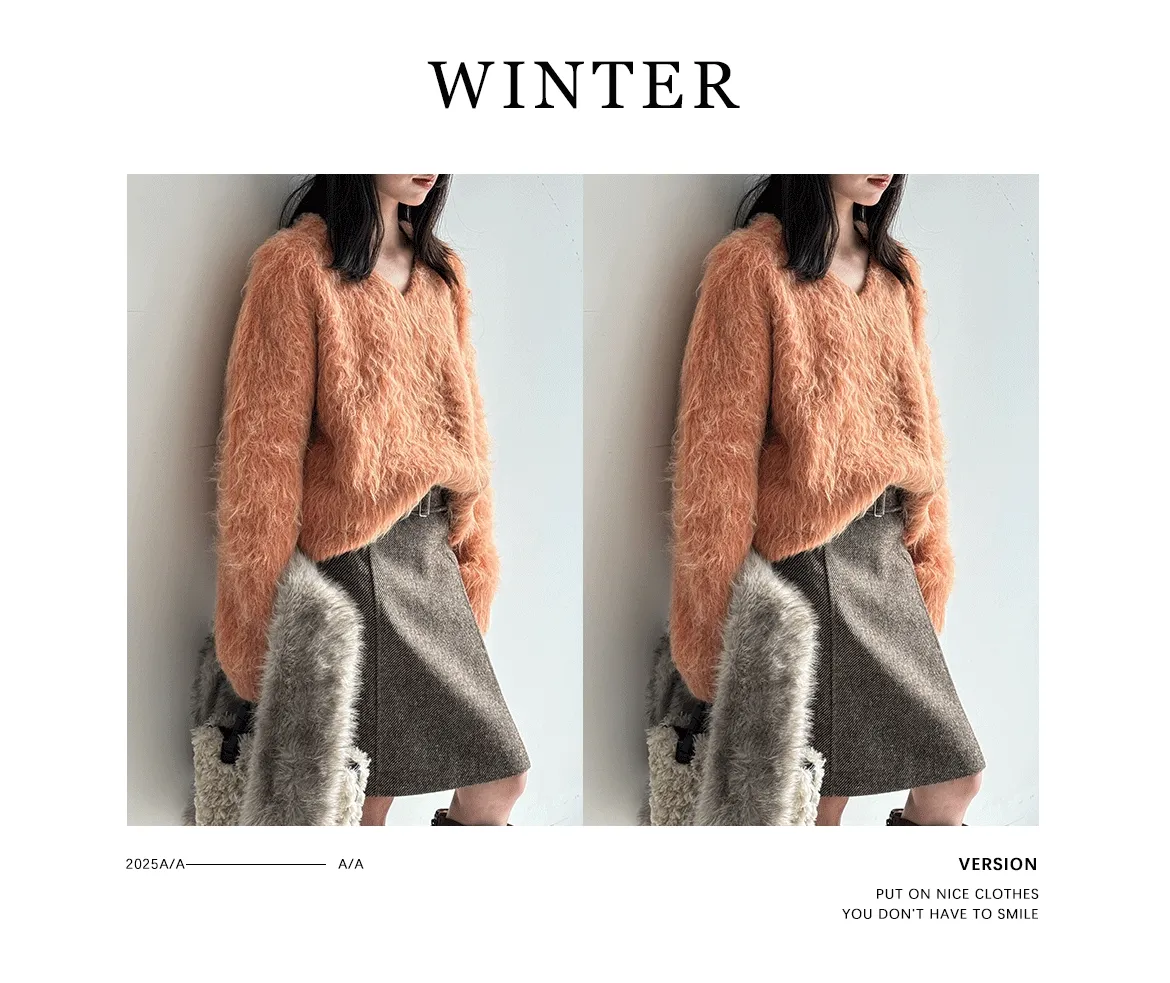 慵懶V領剪裁,巧妙延伸頸部線條,達到視覺上的輕盈顯瘦