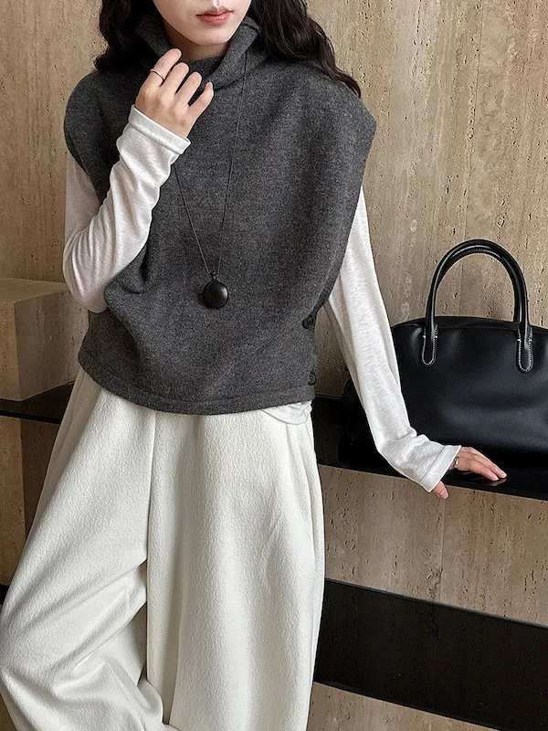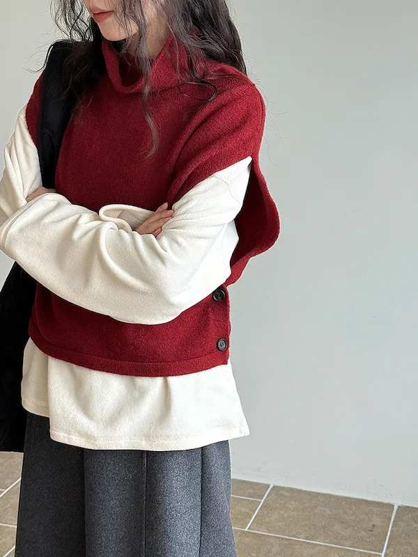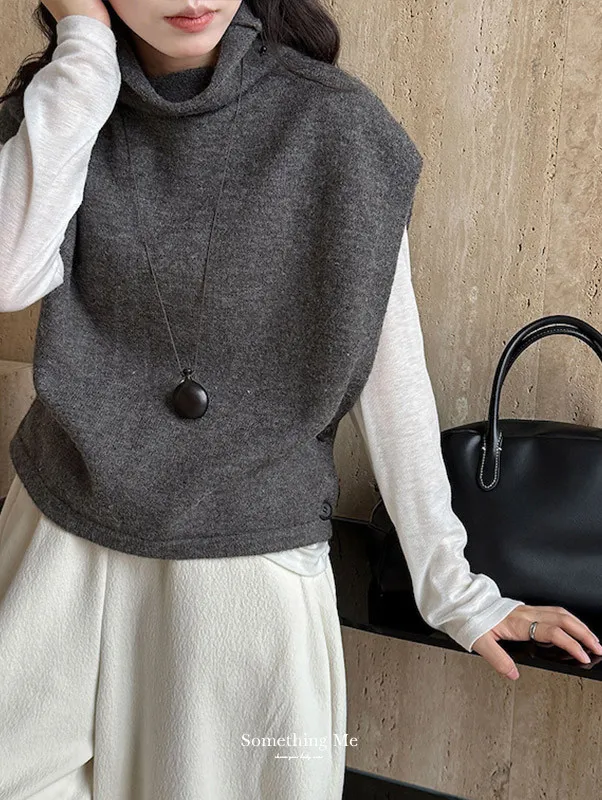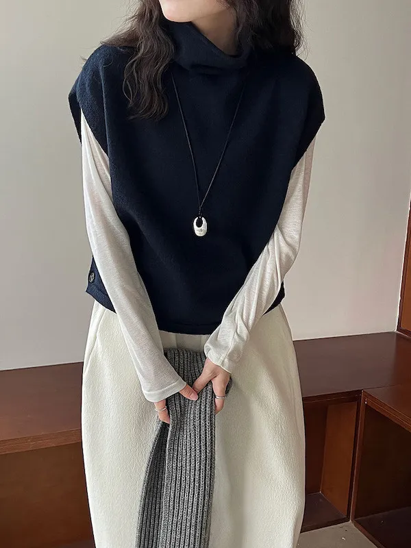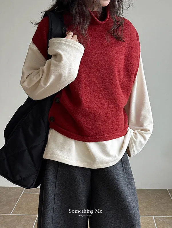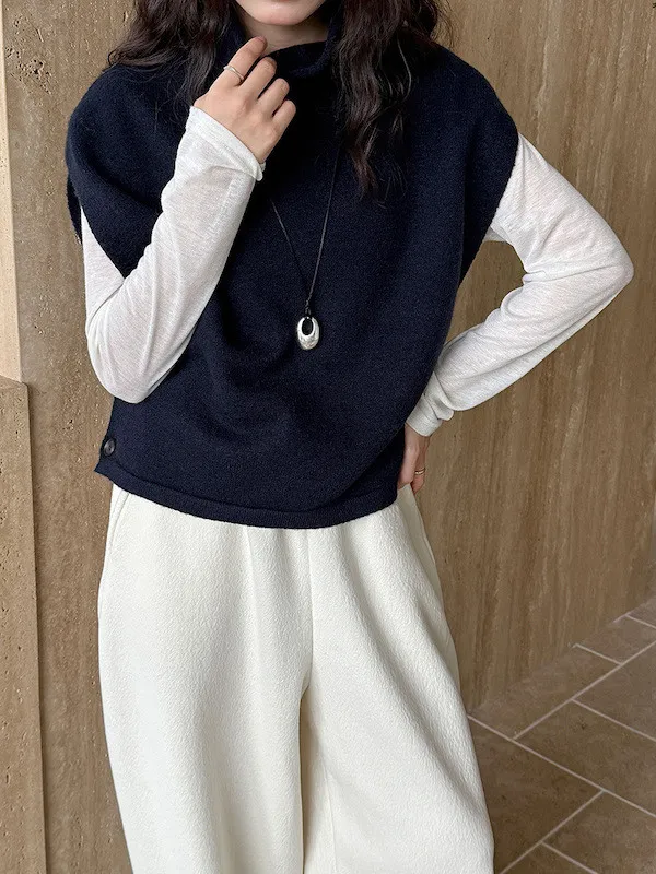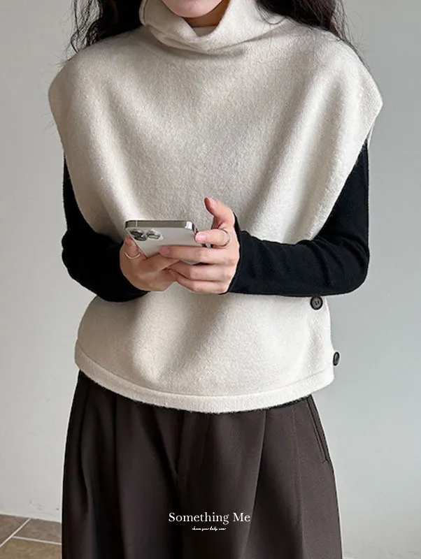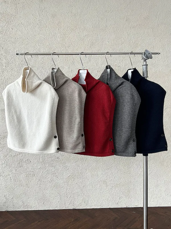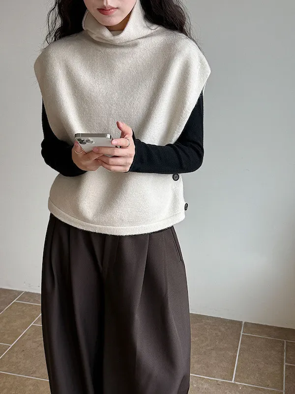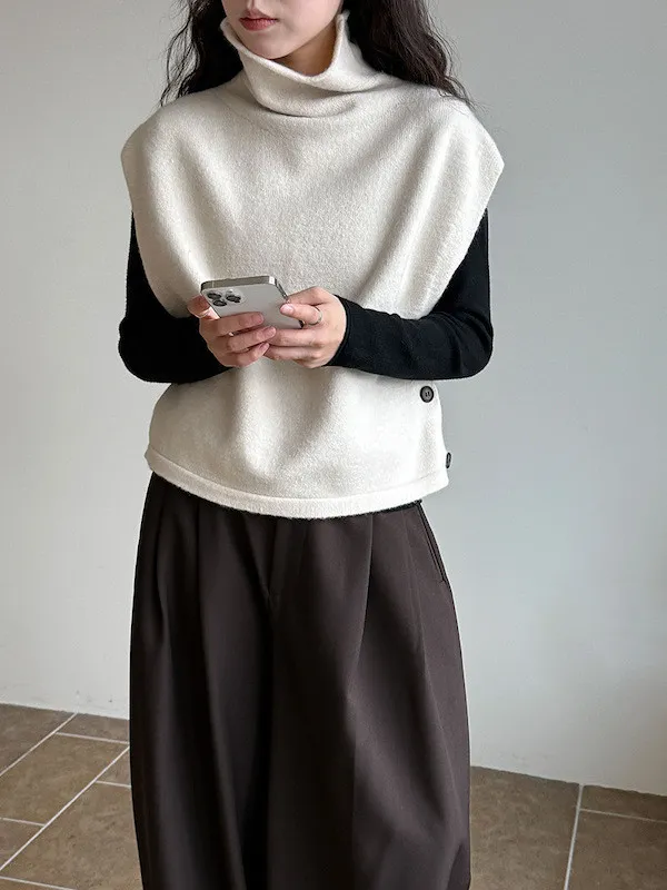 顯瘦層次感|慵懶堆堆領側扣針織背心 5色