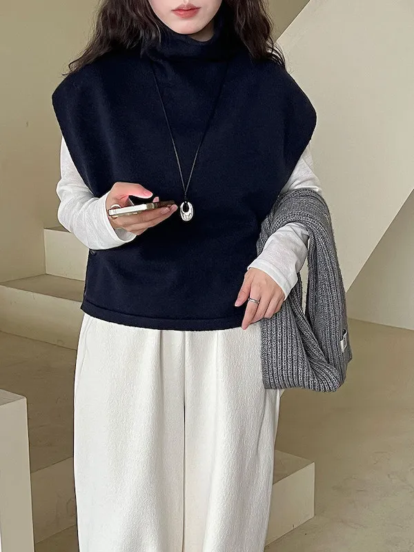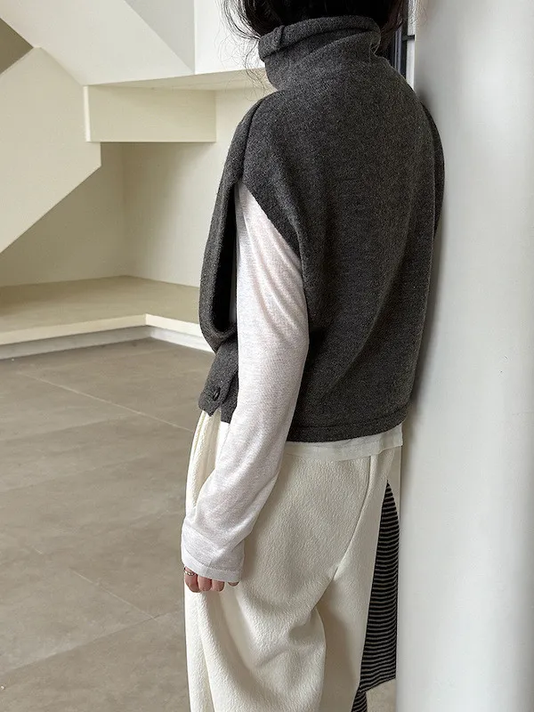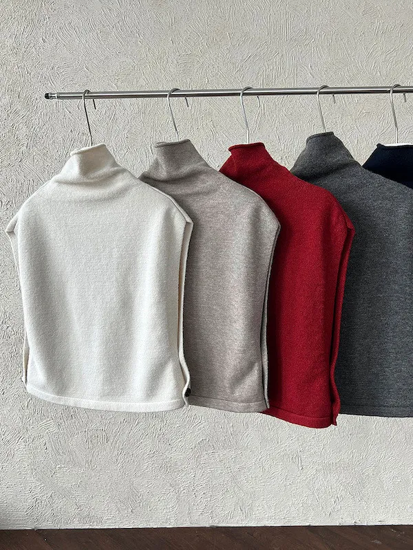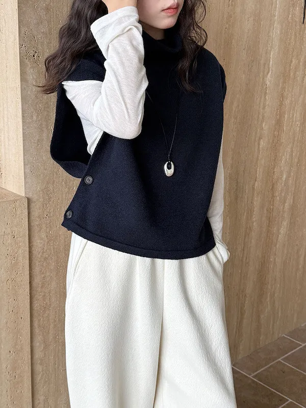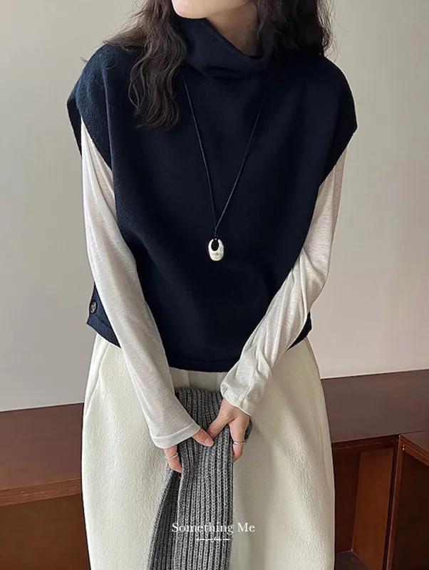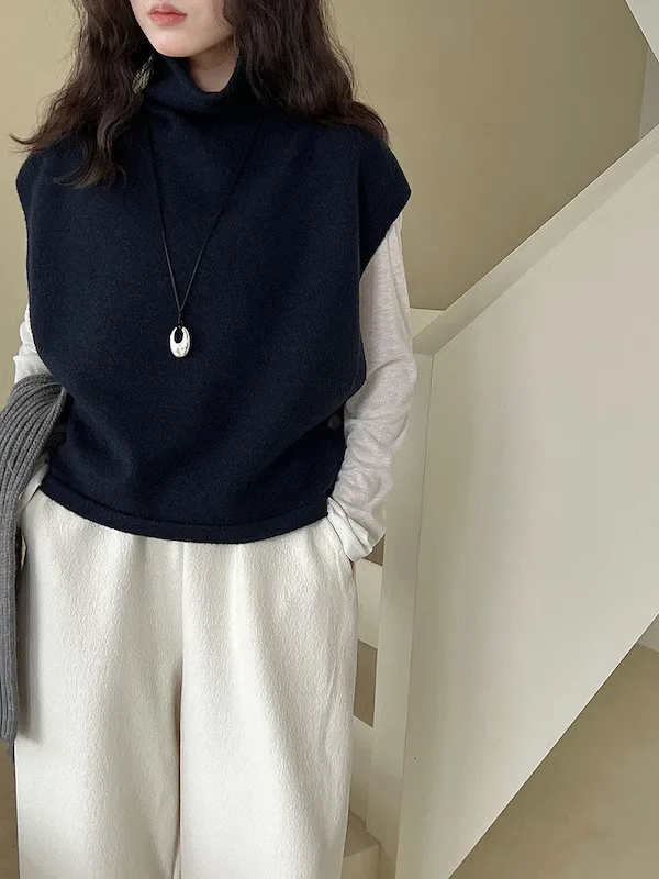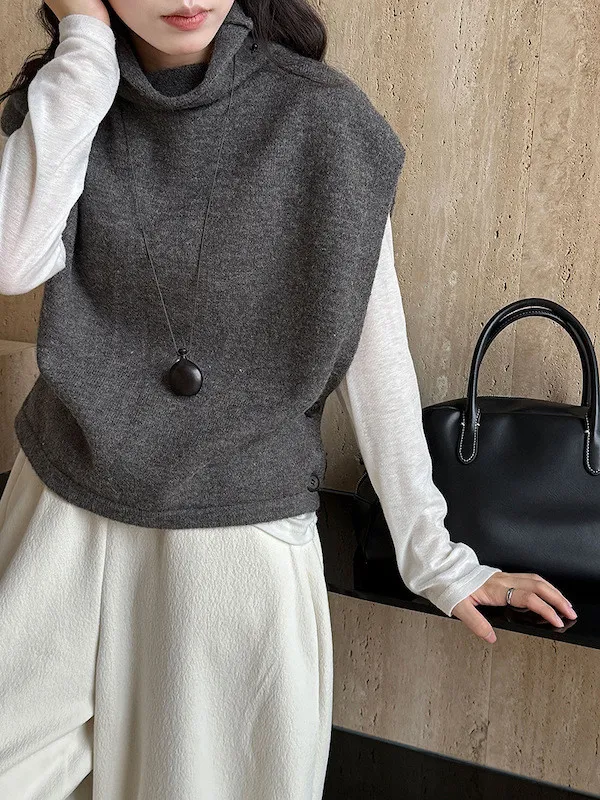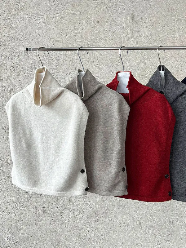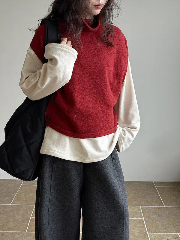 顯瘦層次感|慵懶堆堆領側扣針織背心 5色