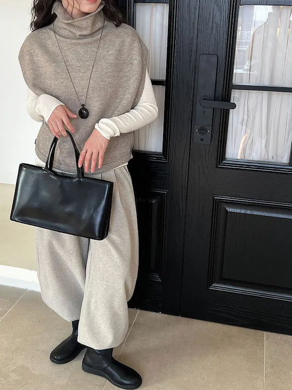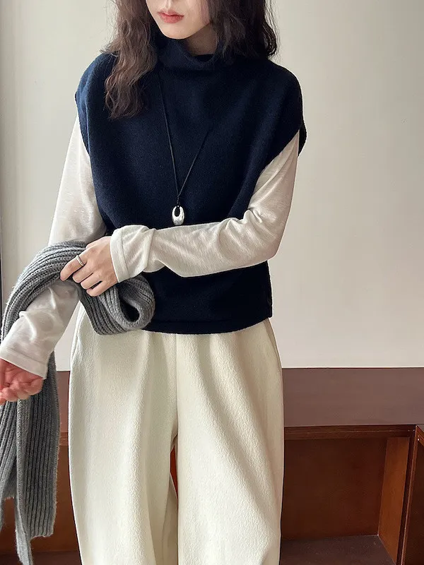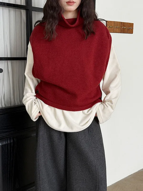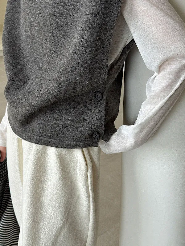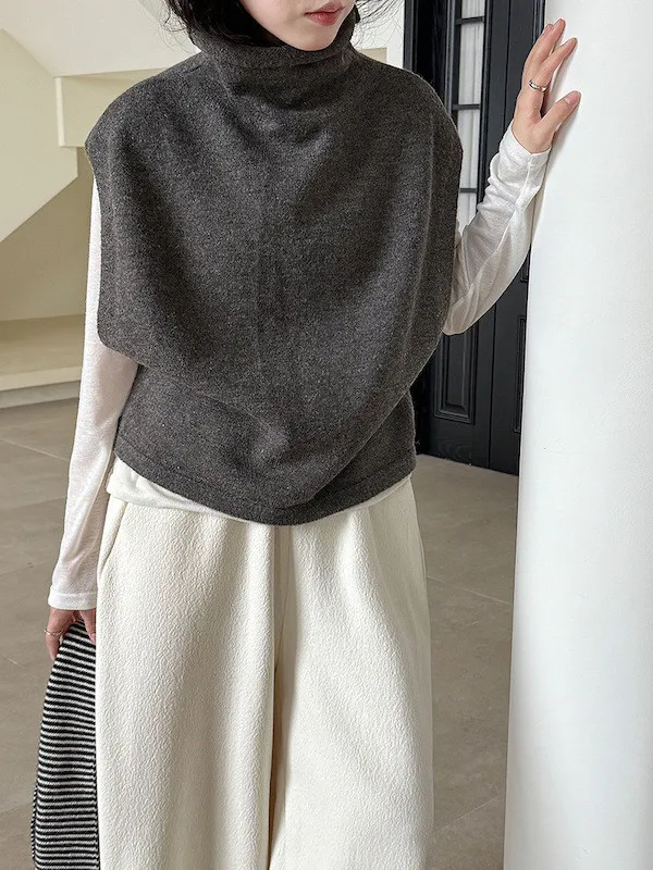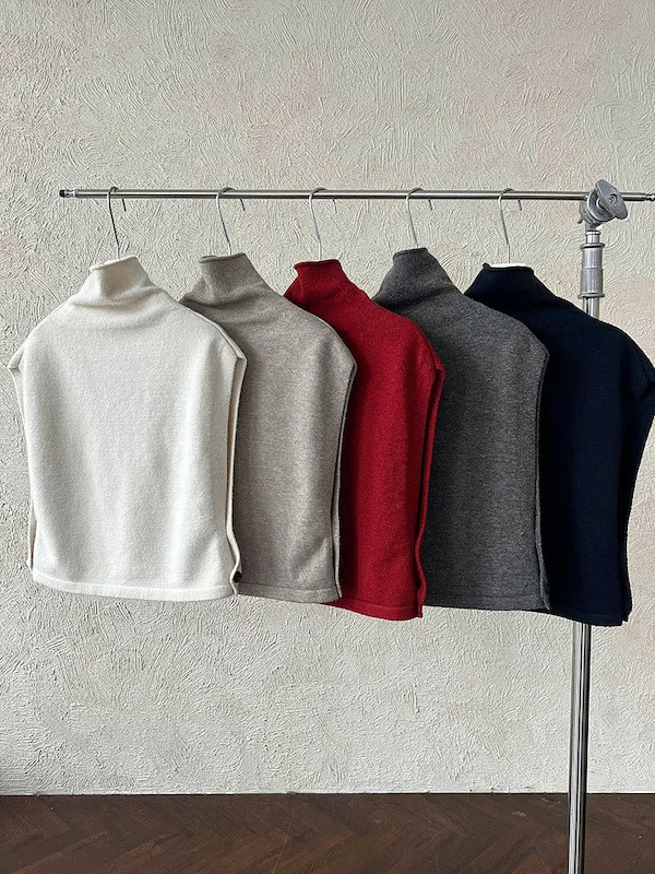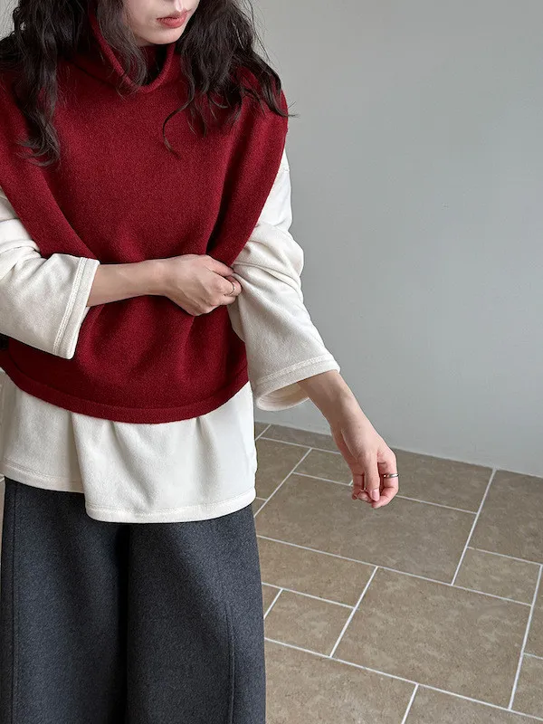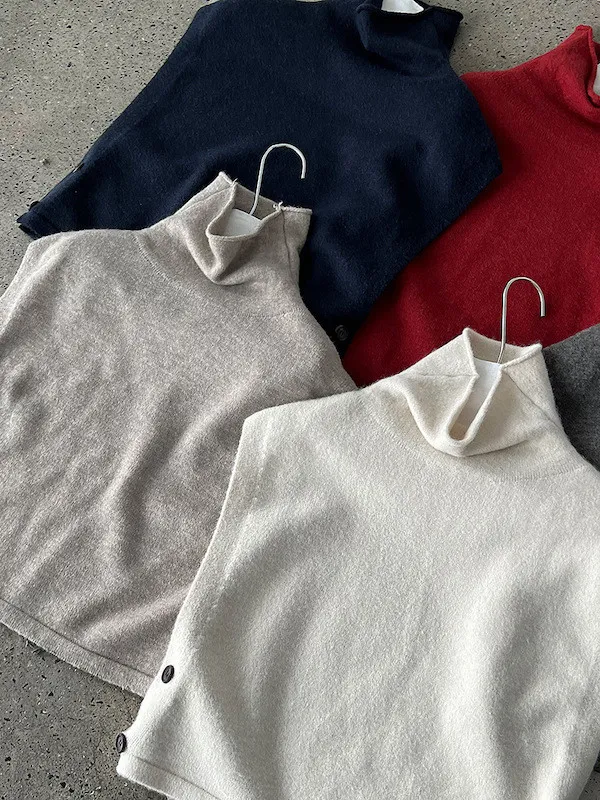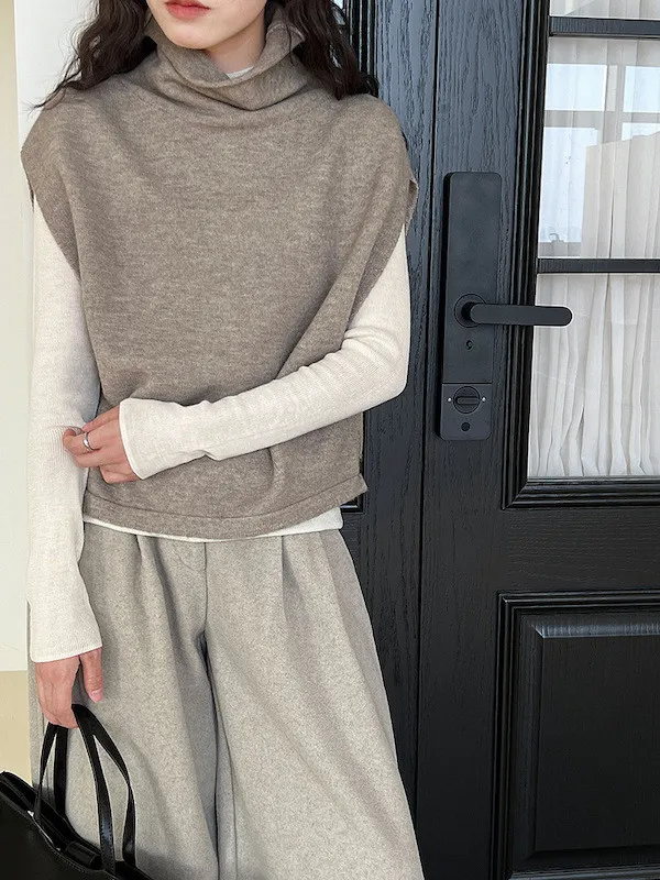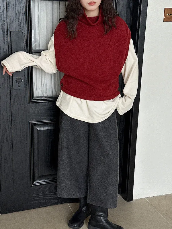顯瘦層次感|慵懶堆堆領側扣針織背心 5色