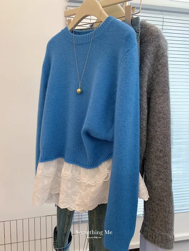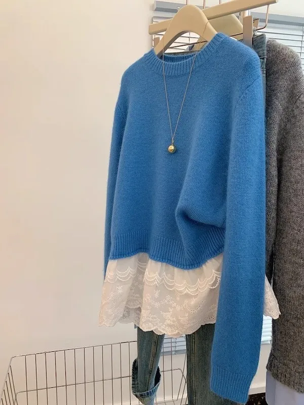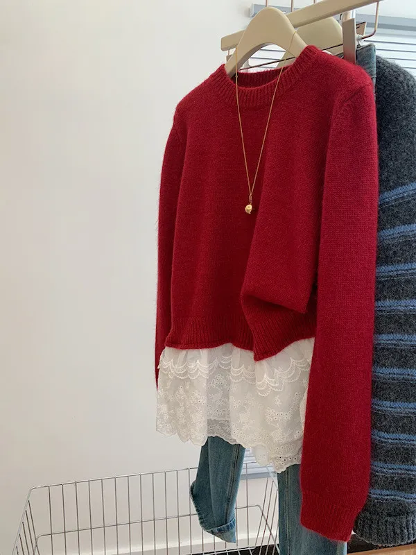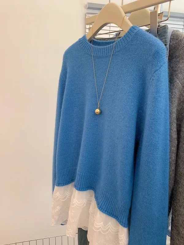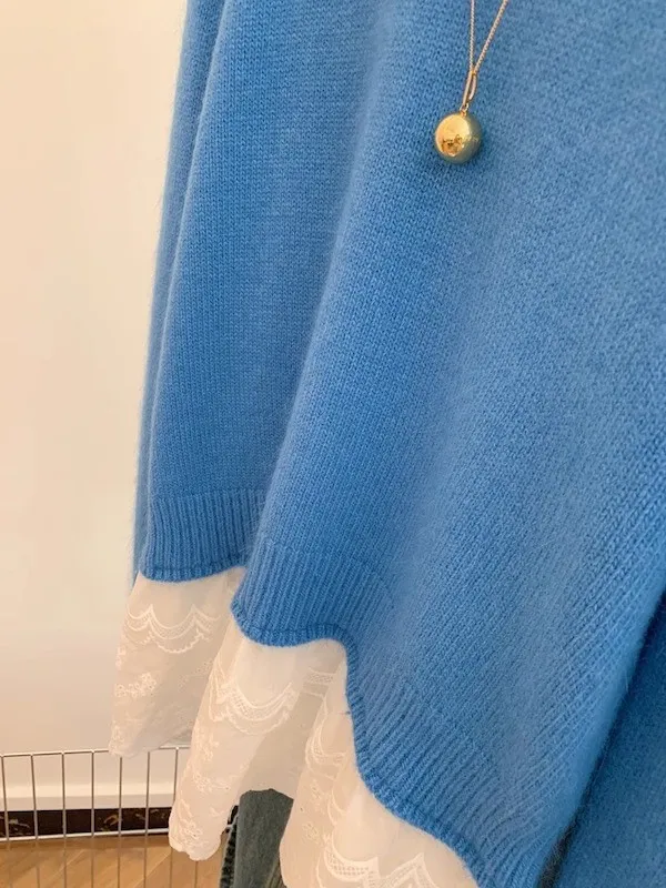 顯瘦精緻|蕾絲拼接假兩件針織毛衣 2色