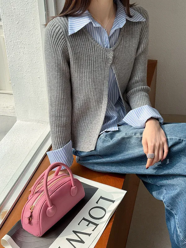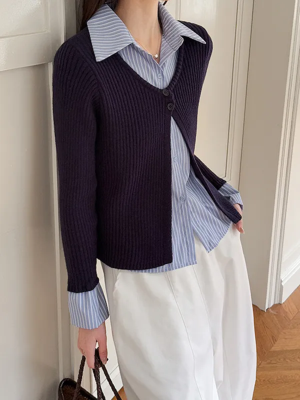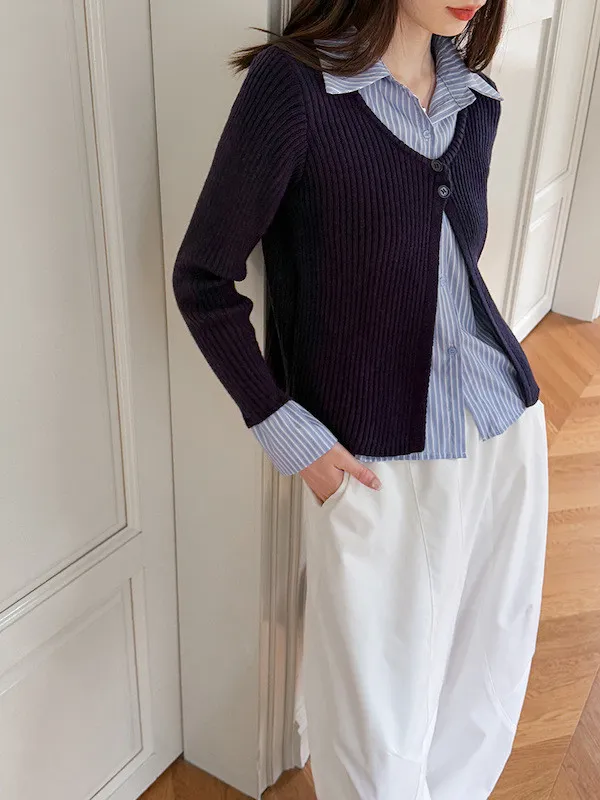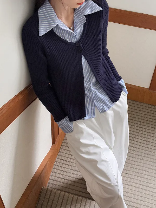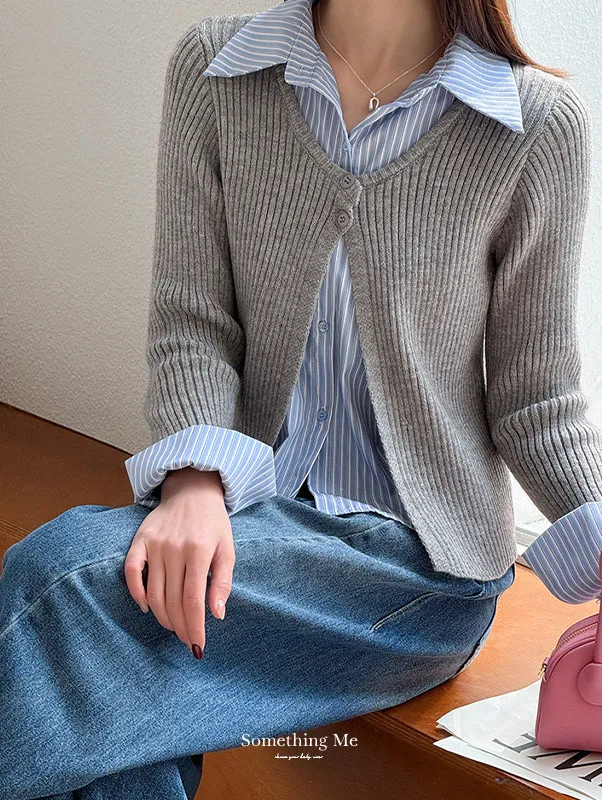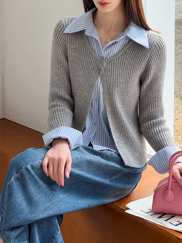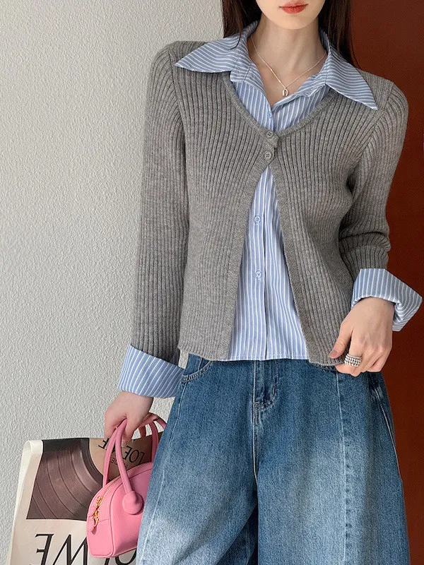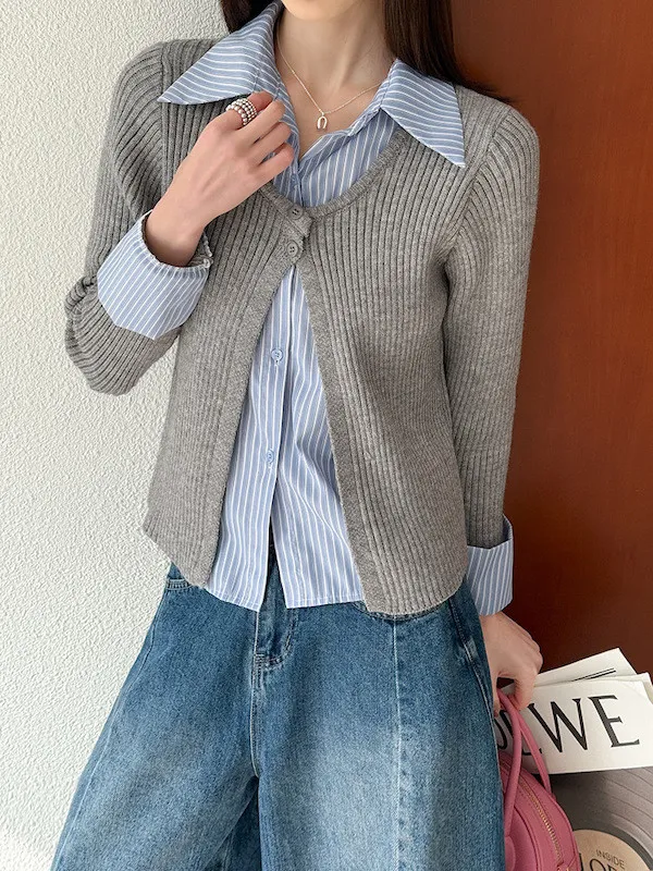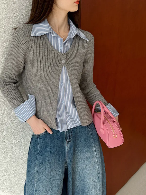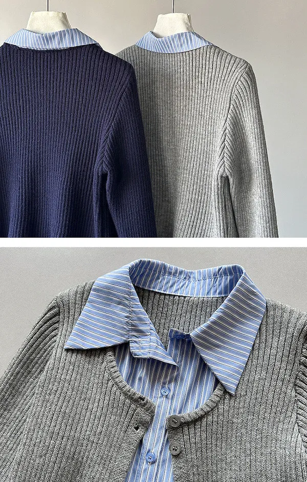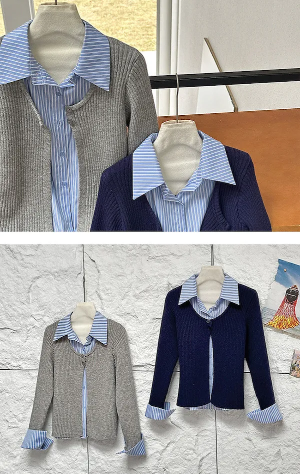 零燒腦疊穿|學院風假兩件顯瘦針織襯衫 2色