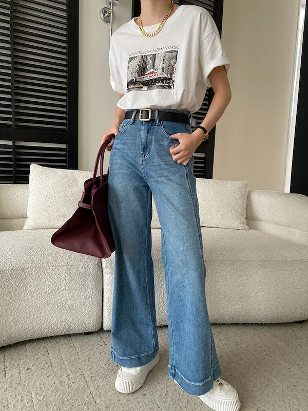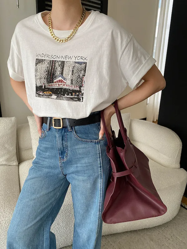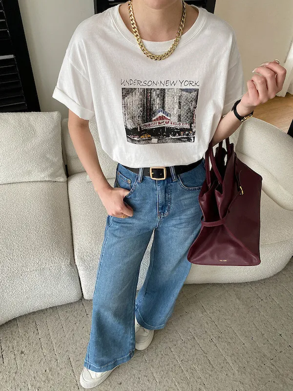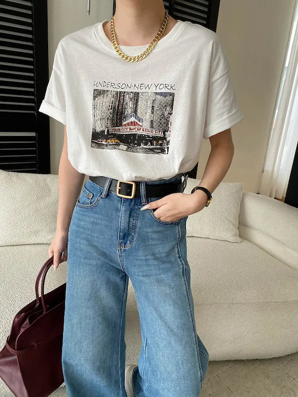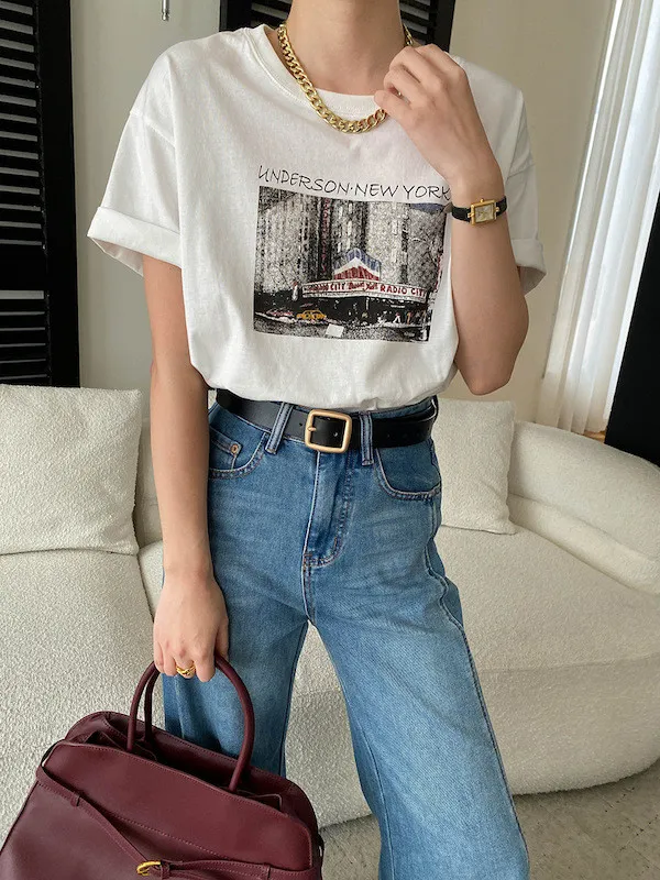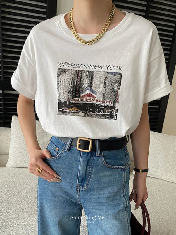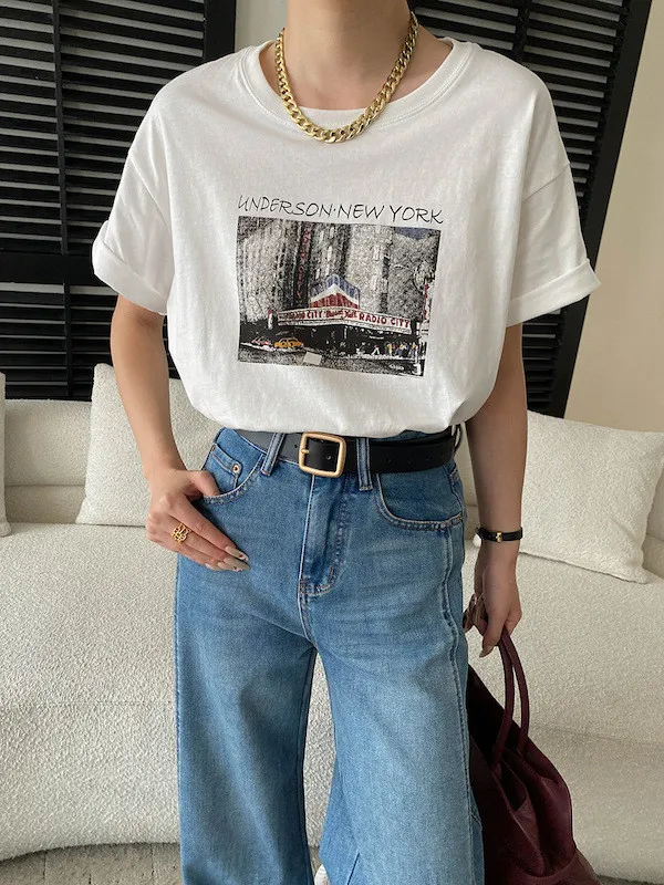 隨性街頭美式做舊感印花寬鬆短袖T恤