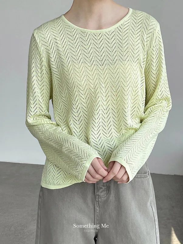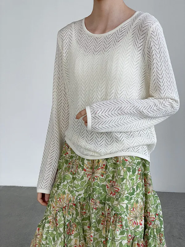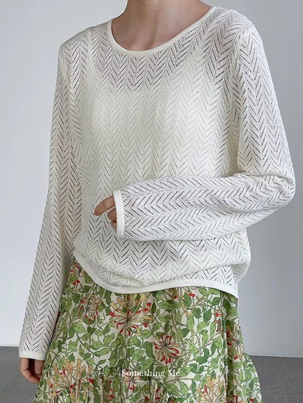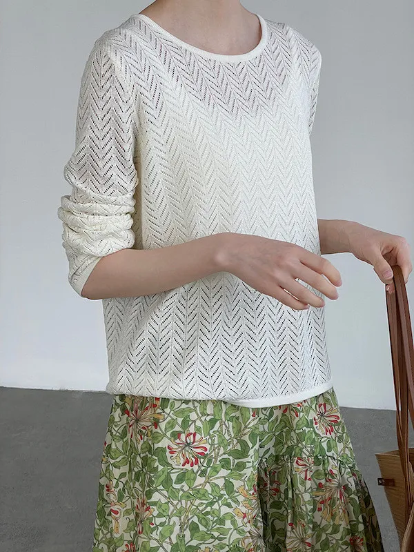 冰絲幾何鏤空防曬針織罩衫 2色