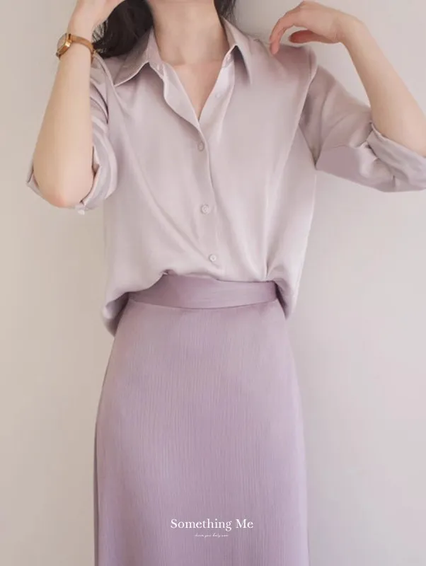 下身:BE260401溫柔灰調紫豎紋高腰長裙