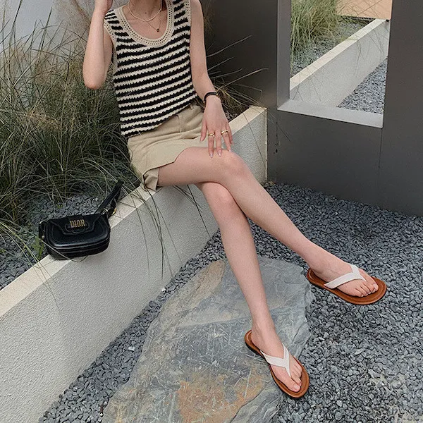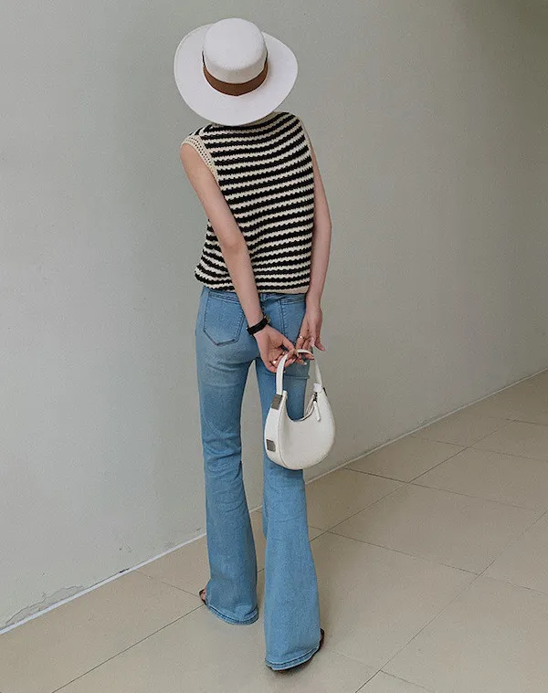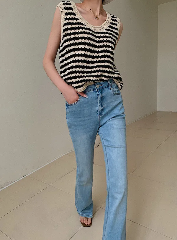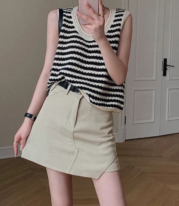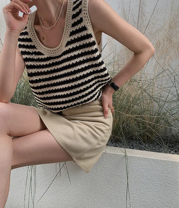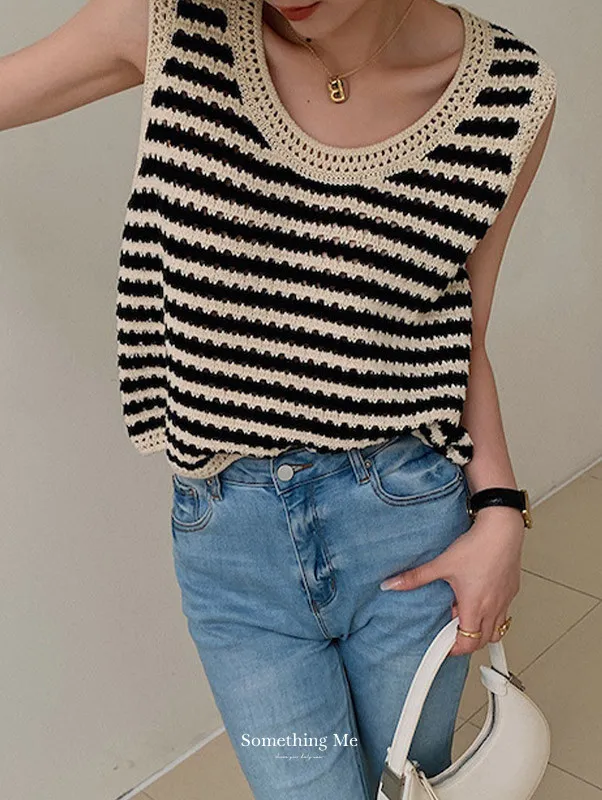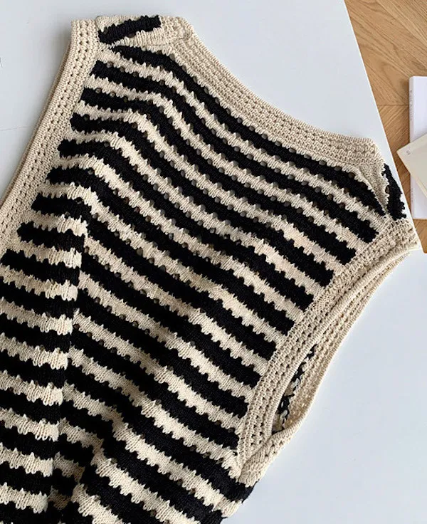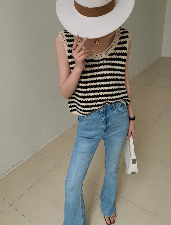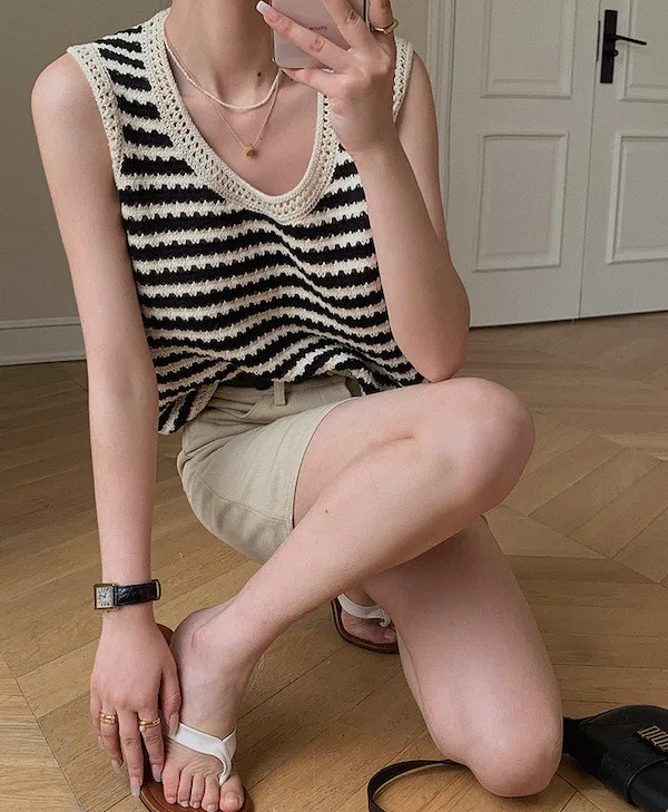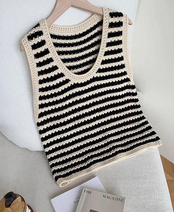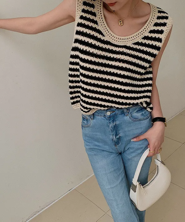 度假感黑白條紋針織無袖背心
