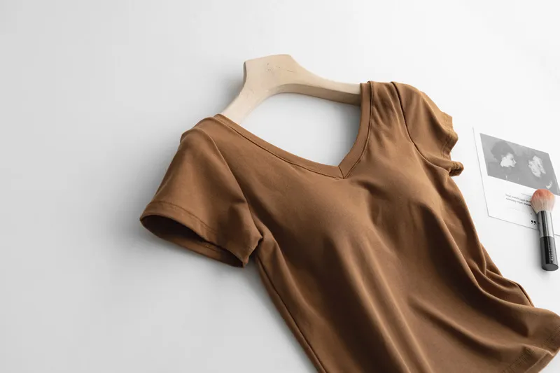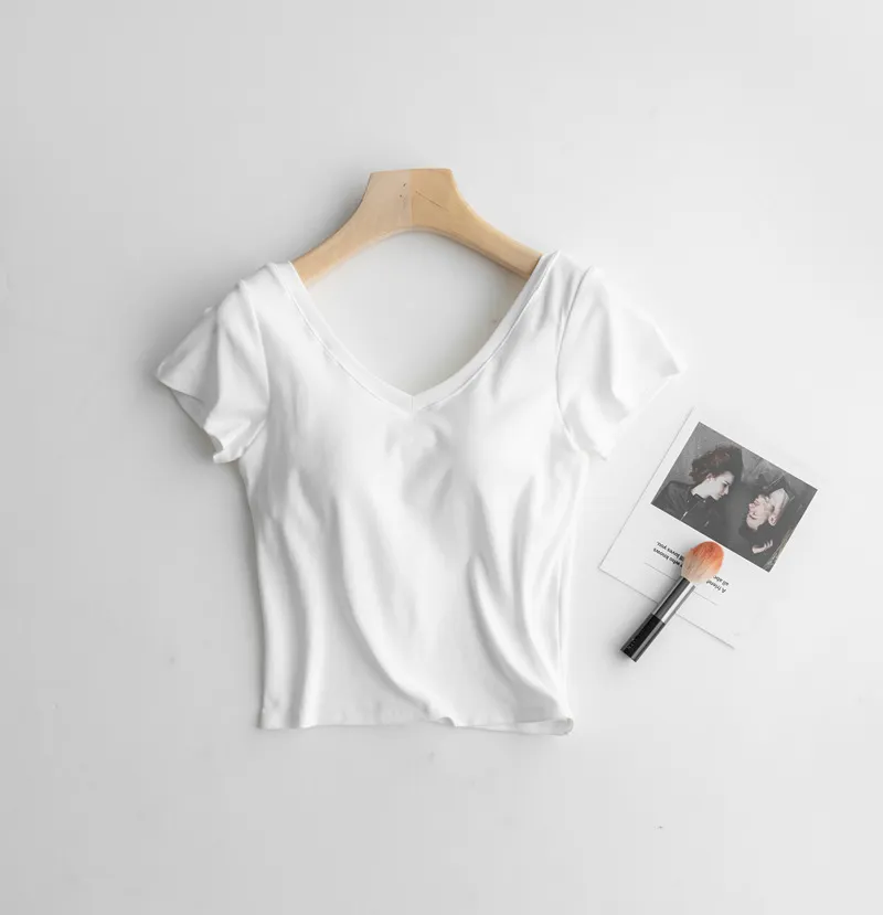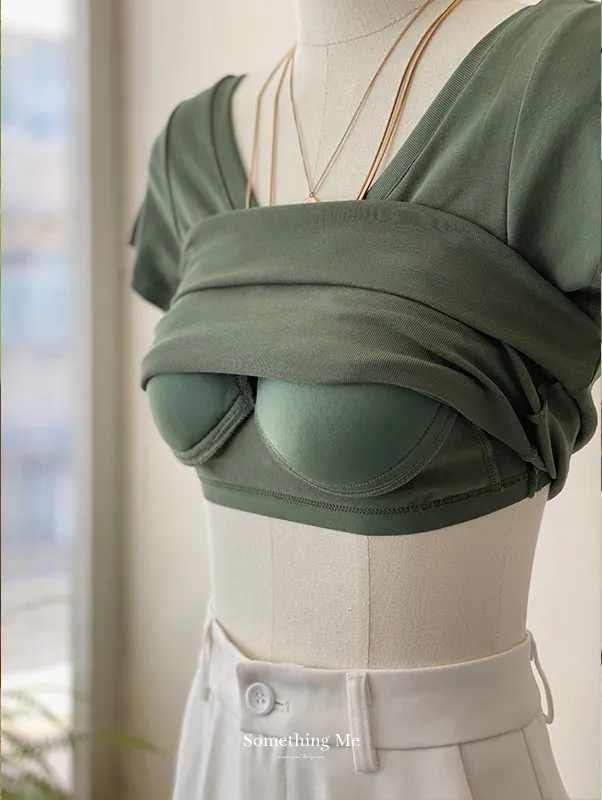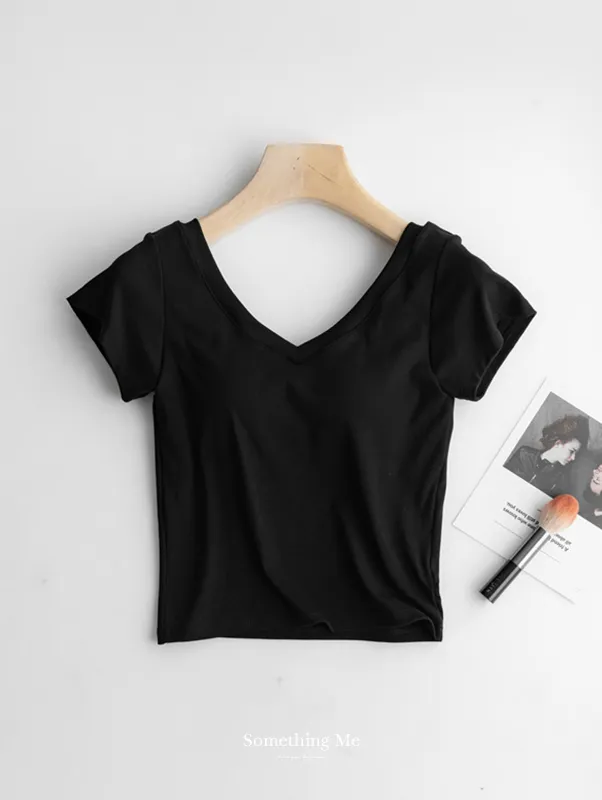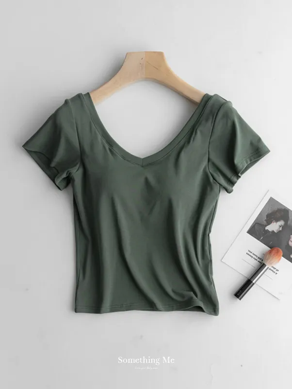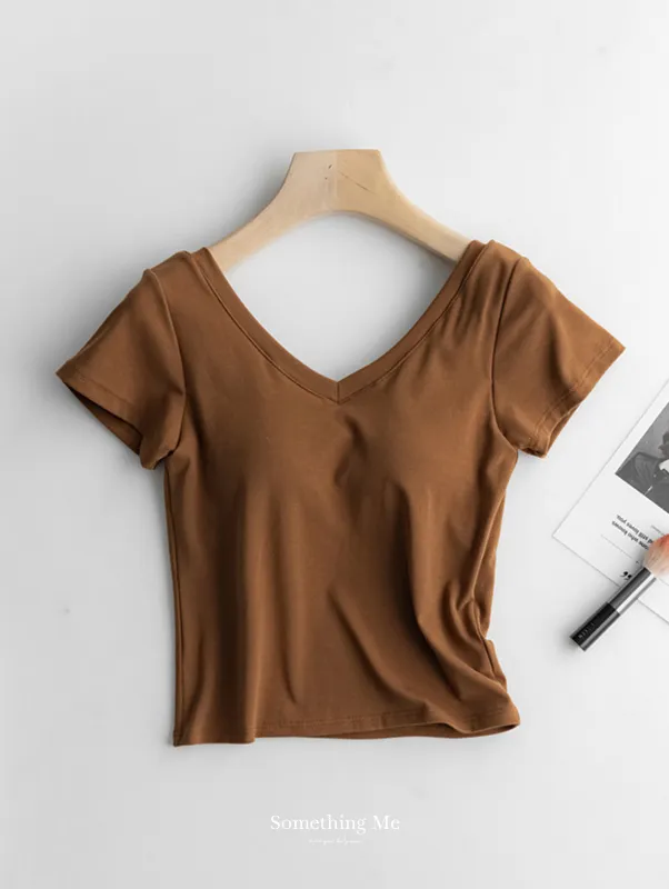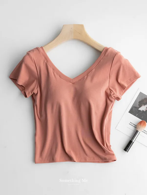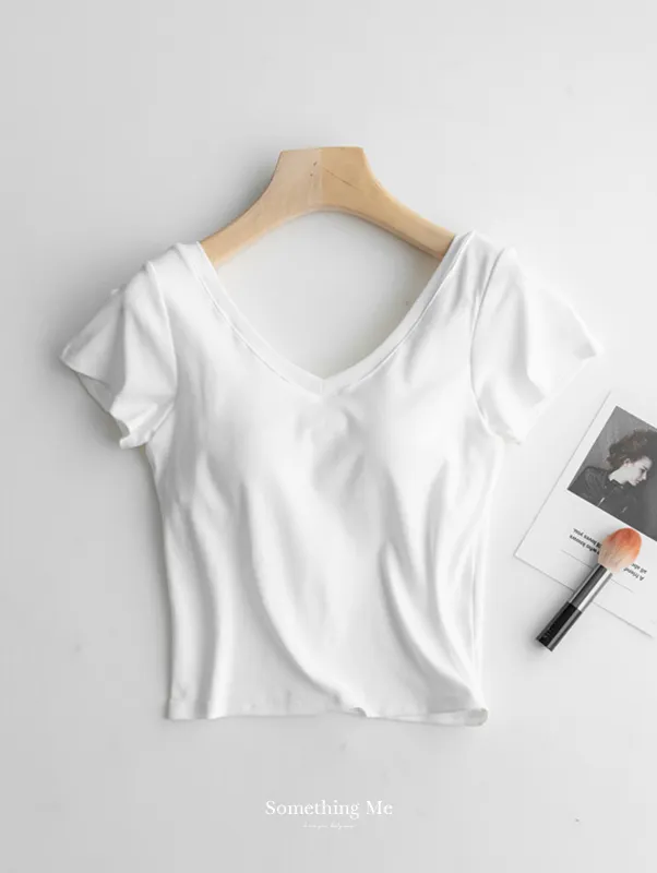 美胸Bra棉質V領短T/BraTee 5色