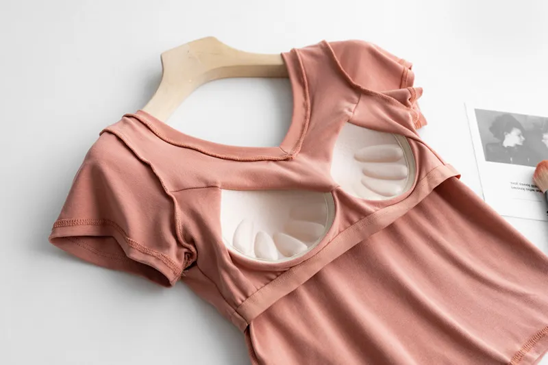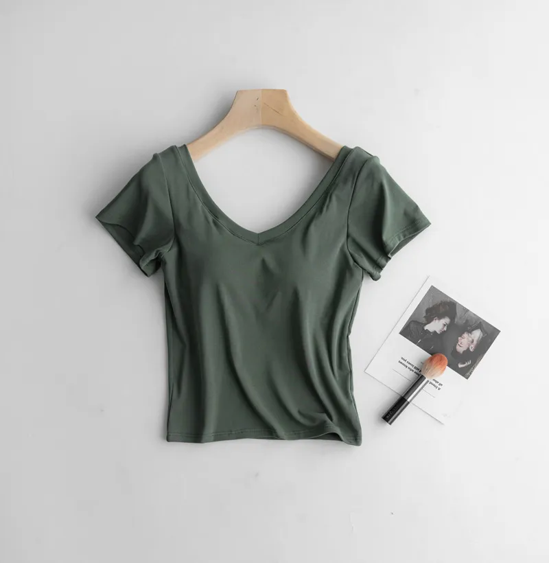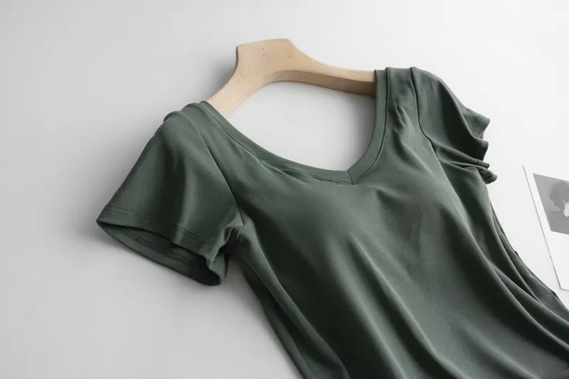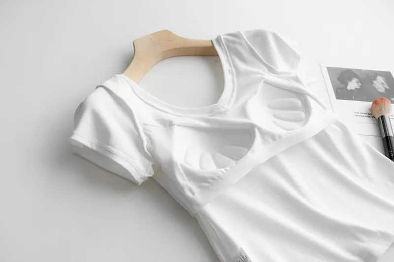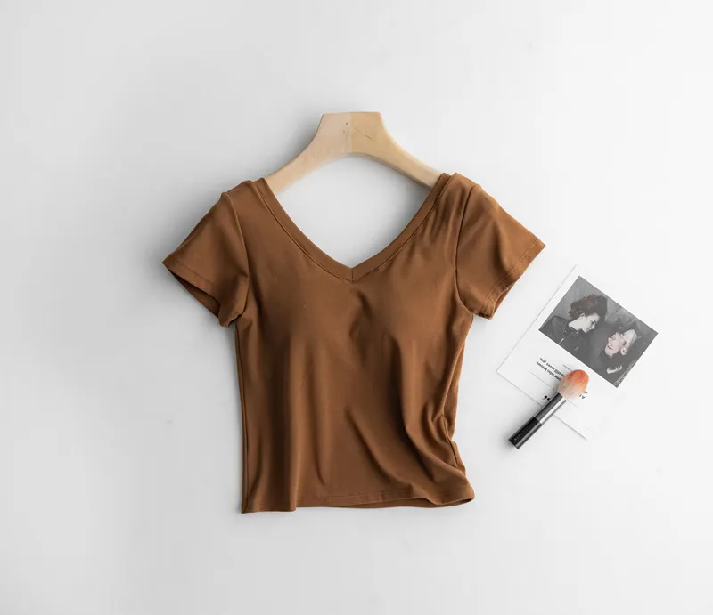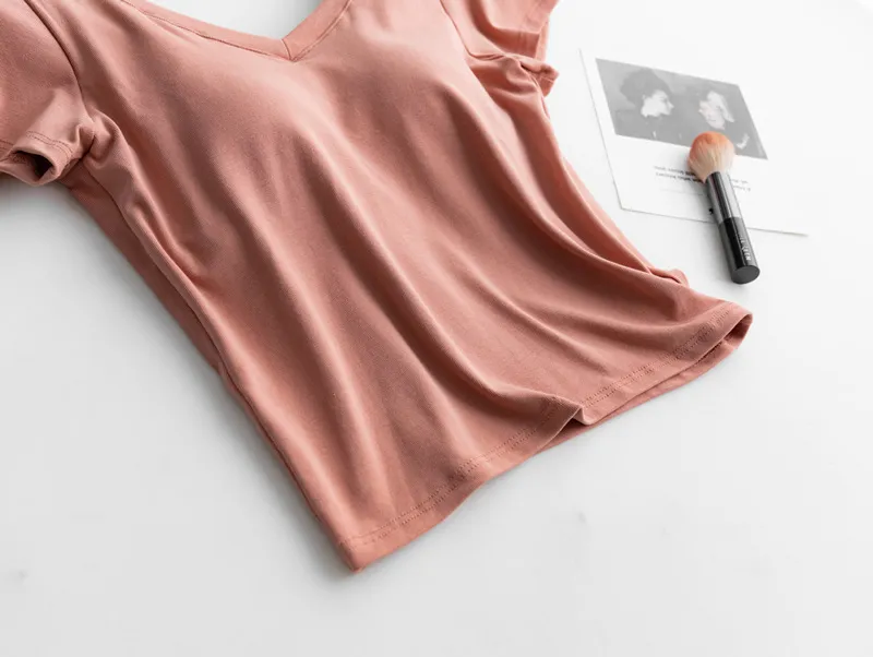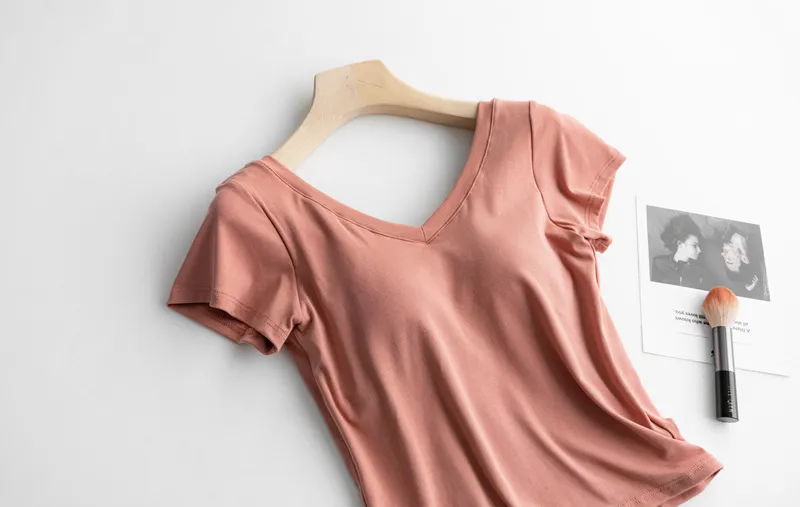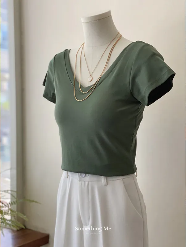 美胸Bra棉質V領短T/BraTee 5色