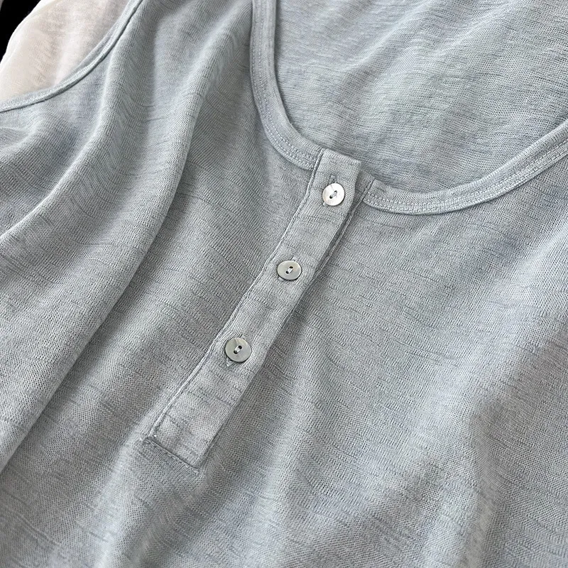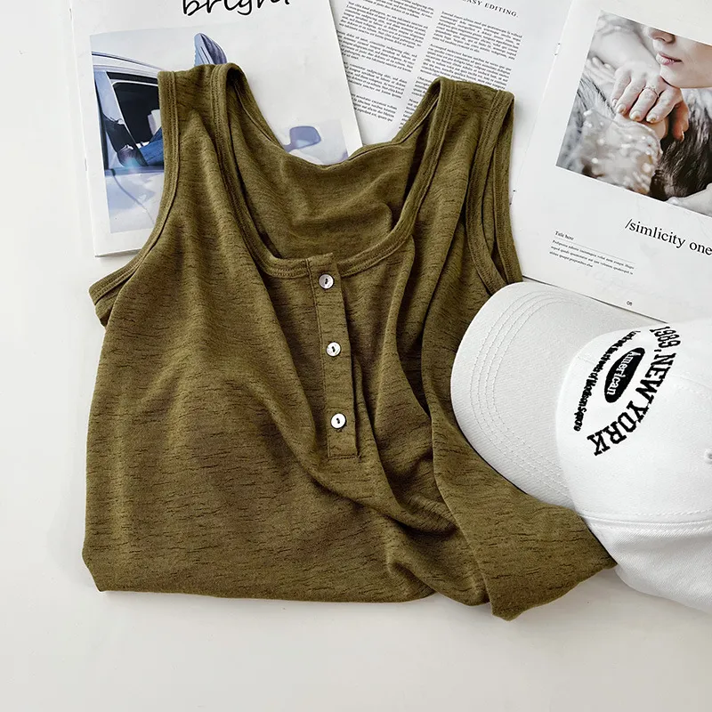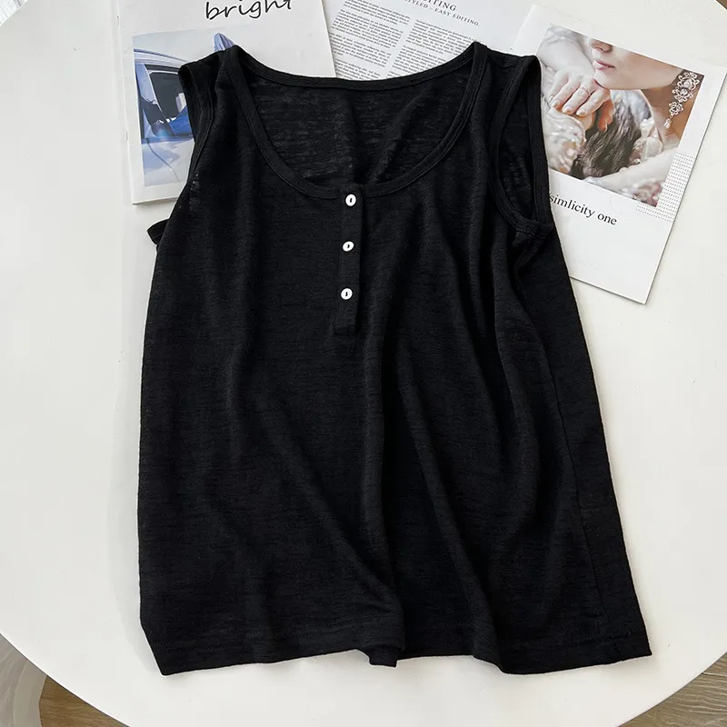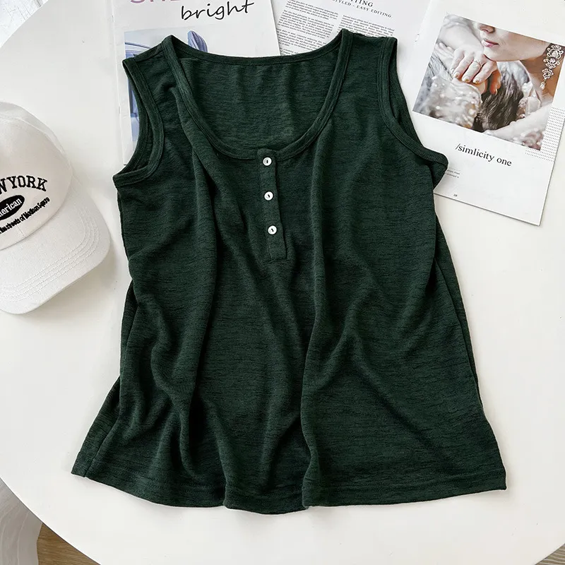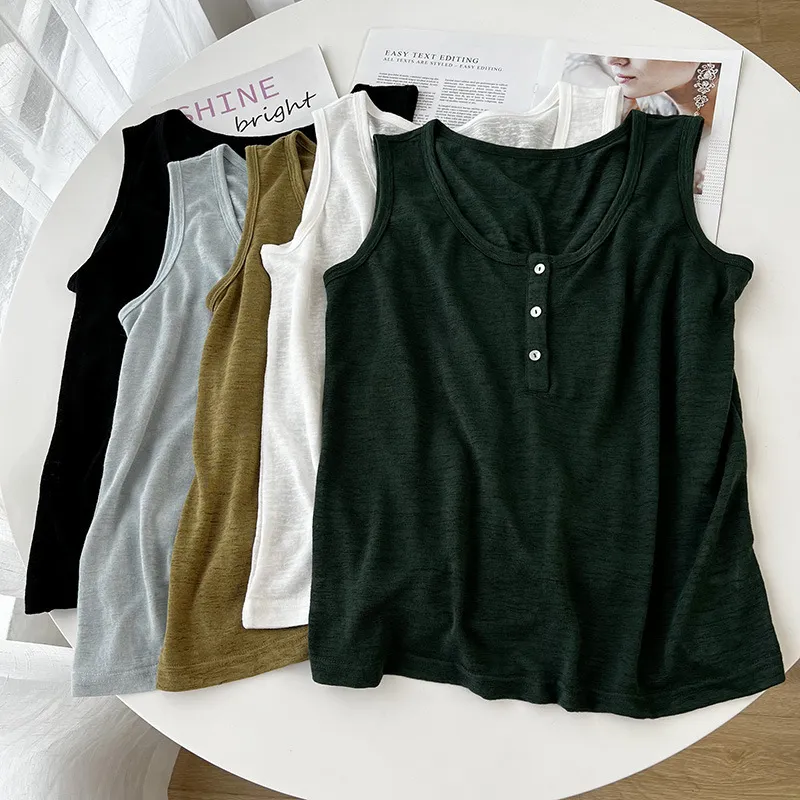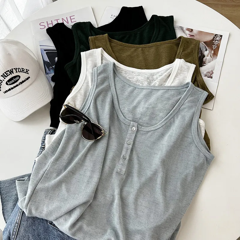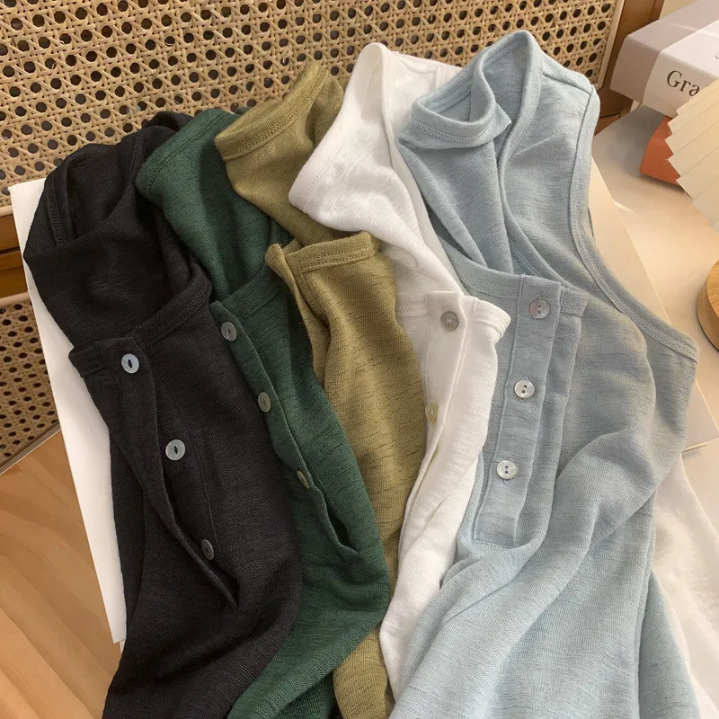 好感竹節棉貝殼釦背心 5色