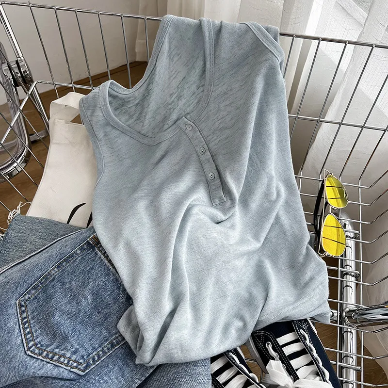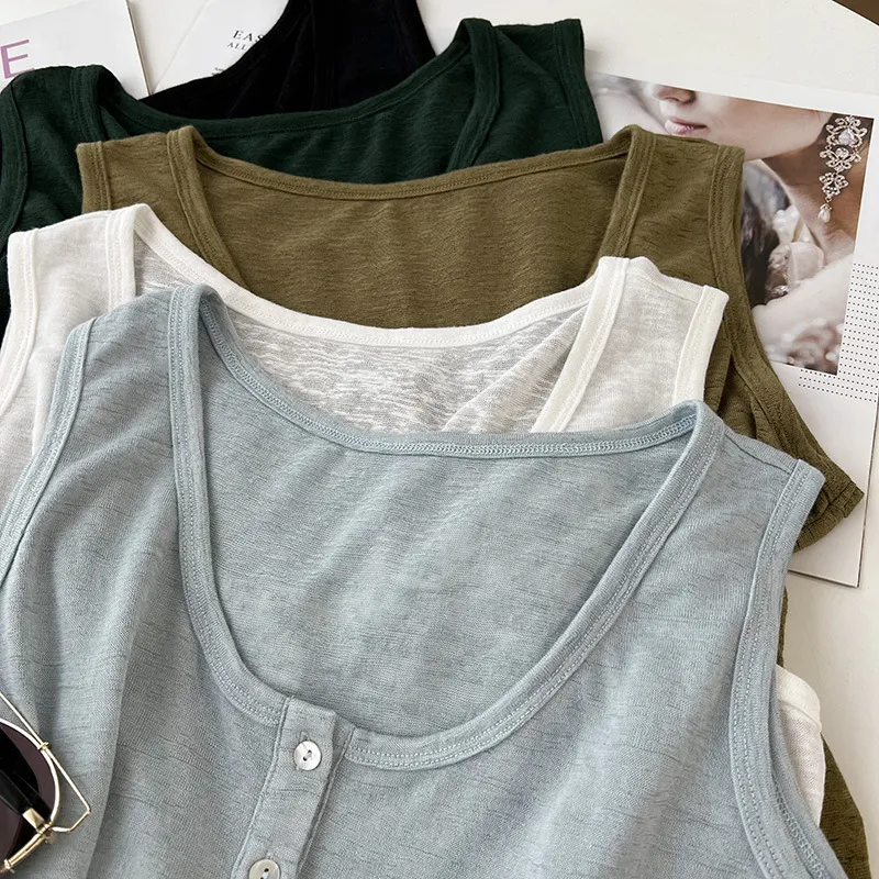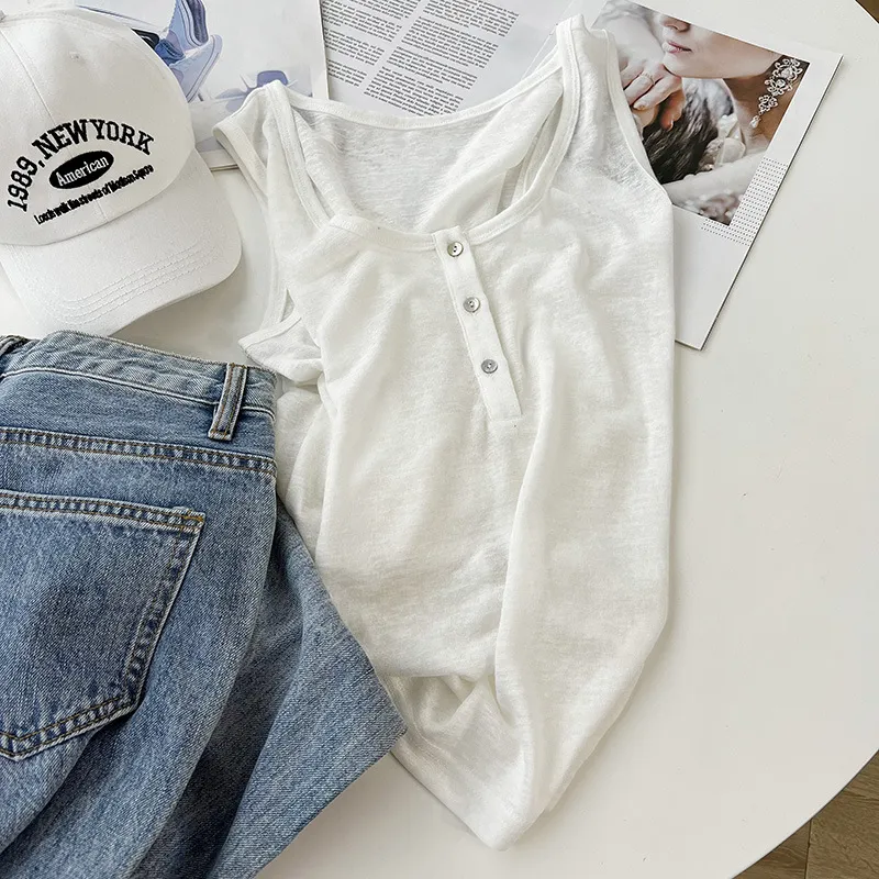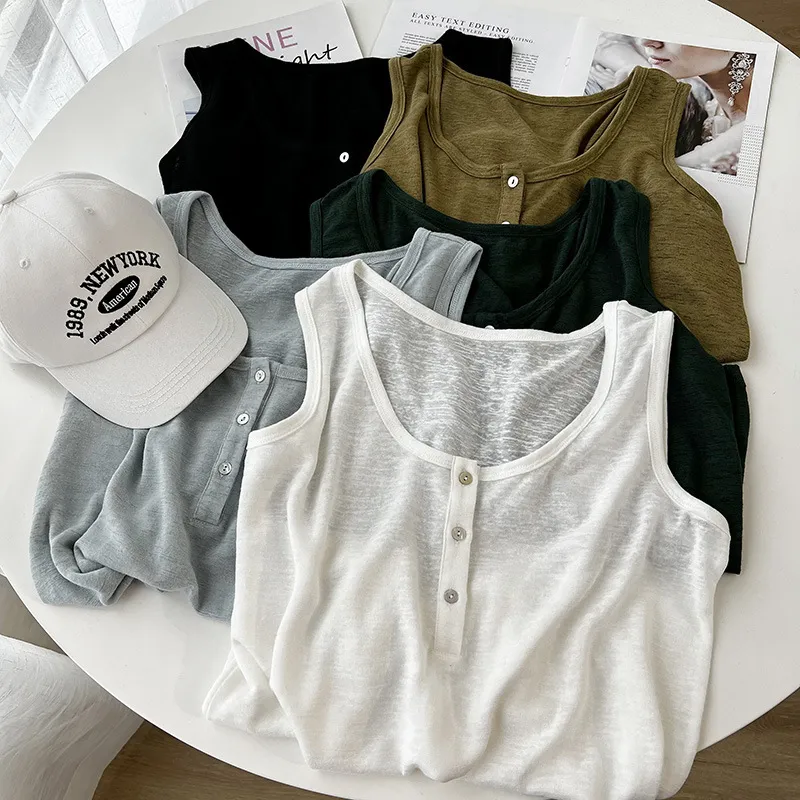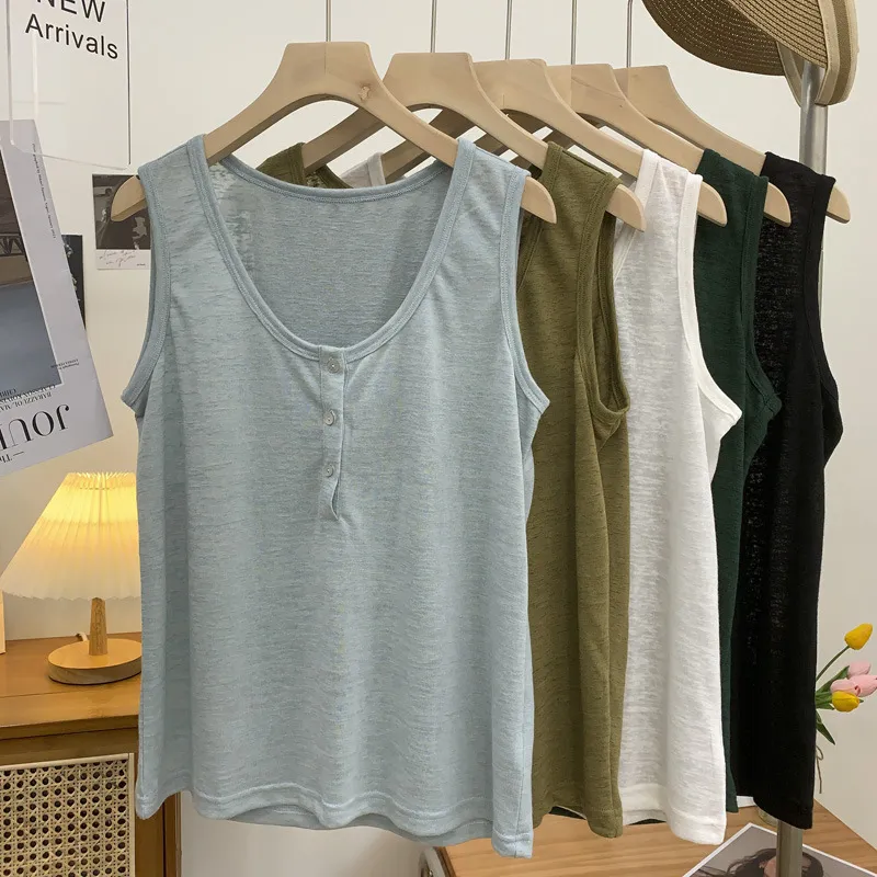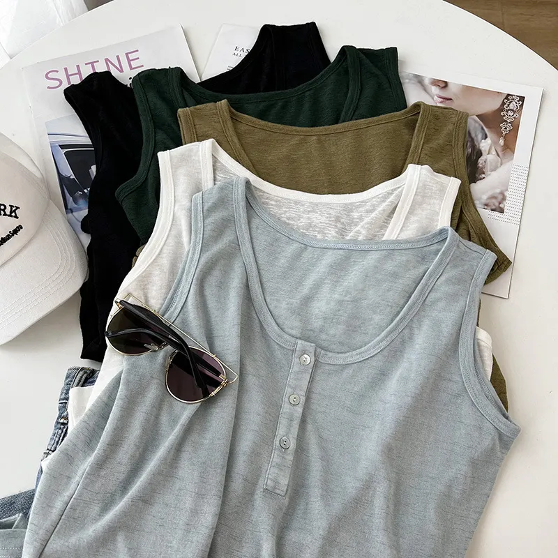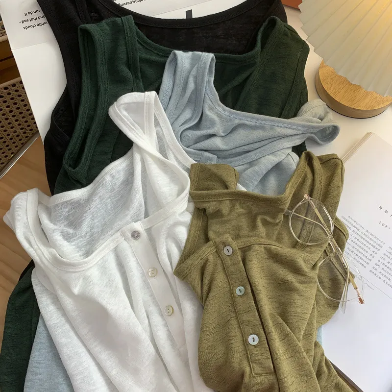 好感竹節棉貝殼釦背心 5色