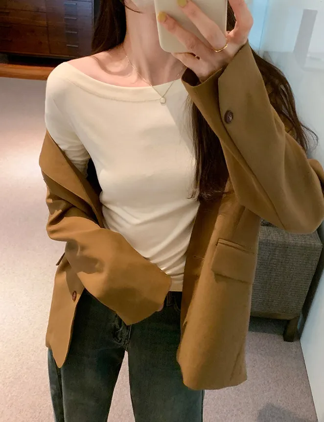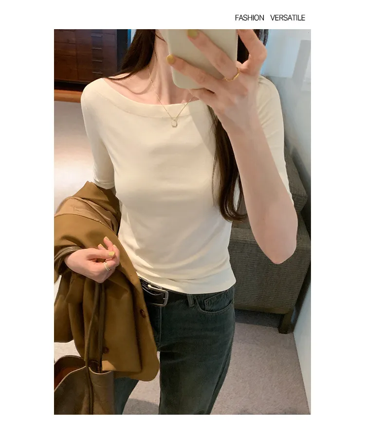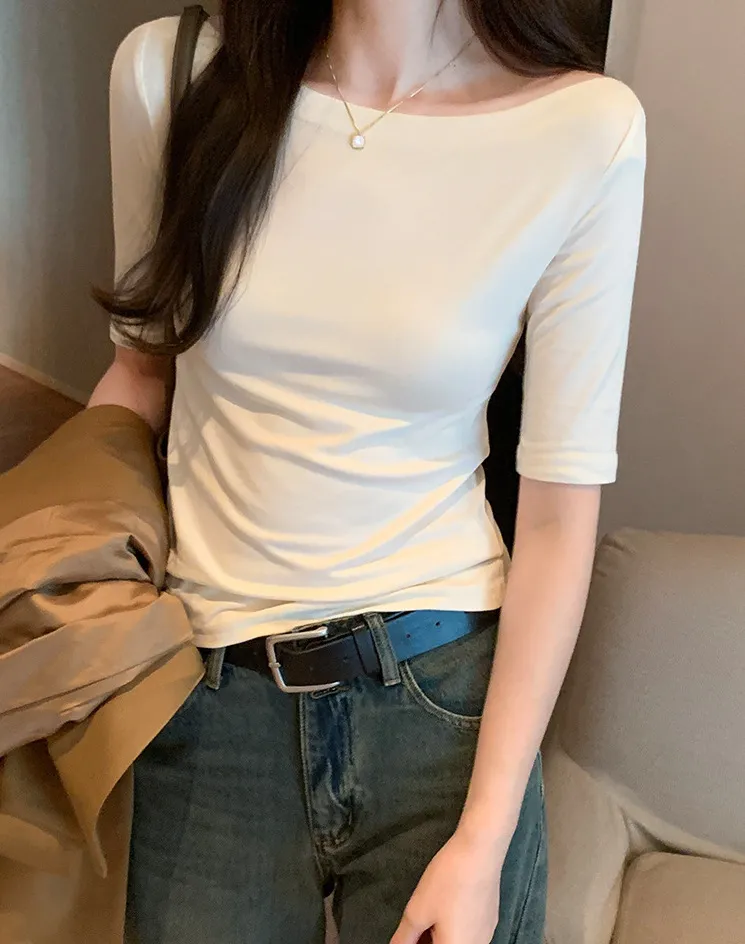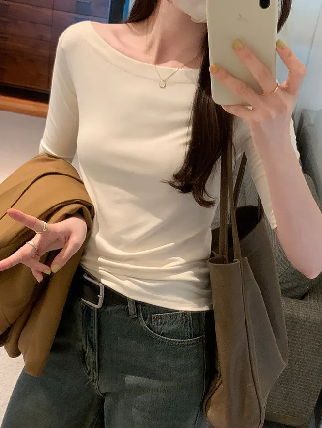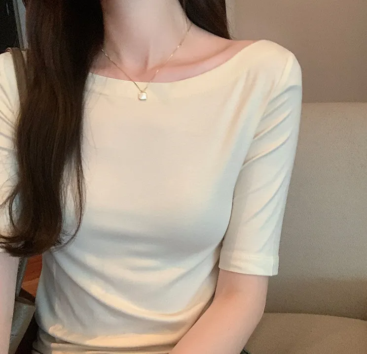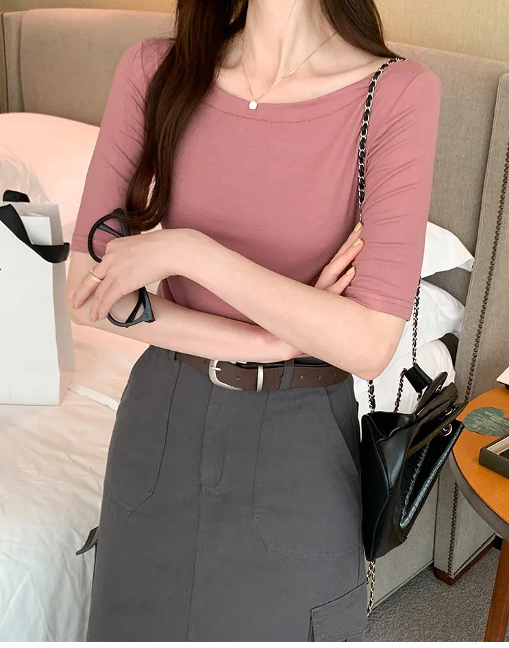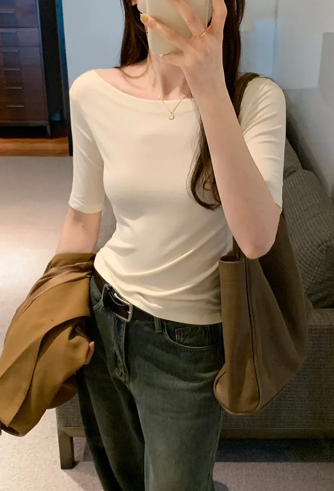 自帶高級感一字領五分袖Tee 4色