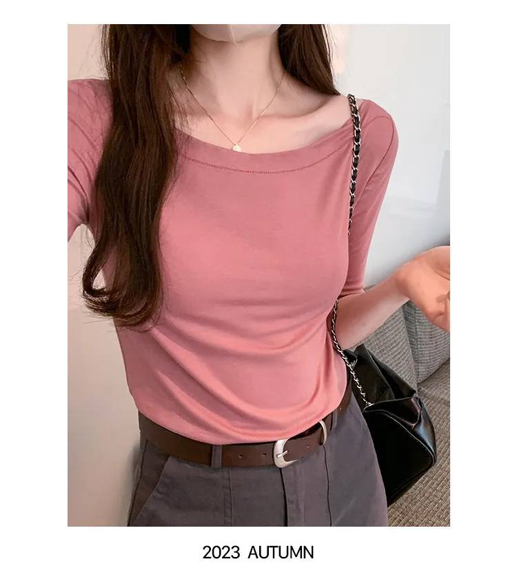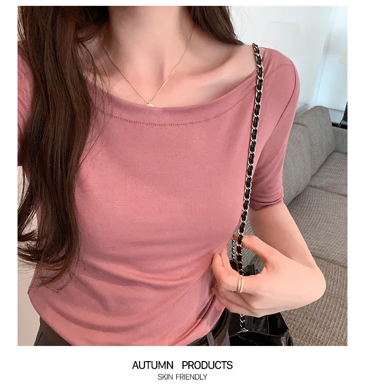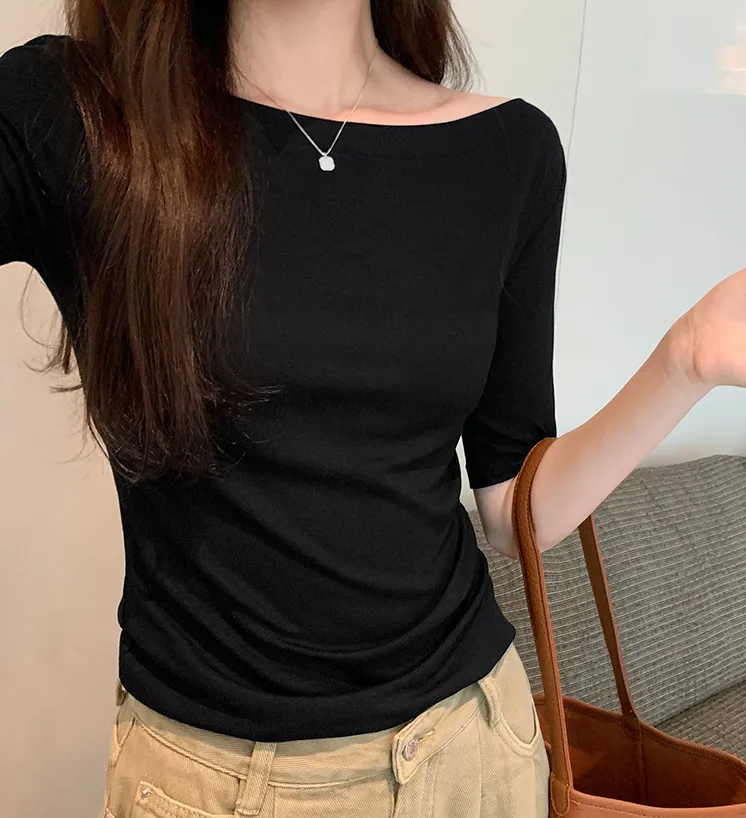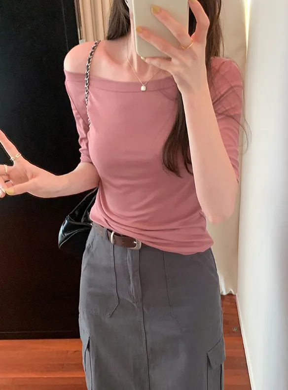 TF231035 自帶高級感一字領五分袖Tee