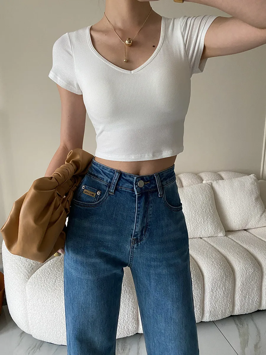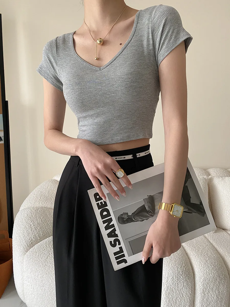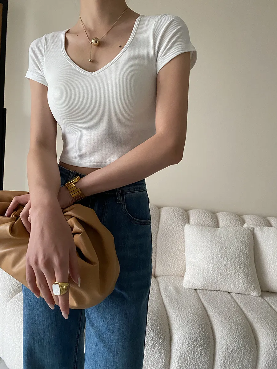 微辣V領羅紋彈力棉質Bra Top/BraTee 3色