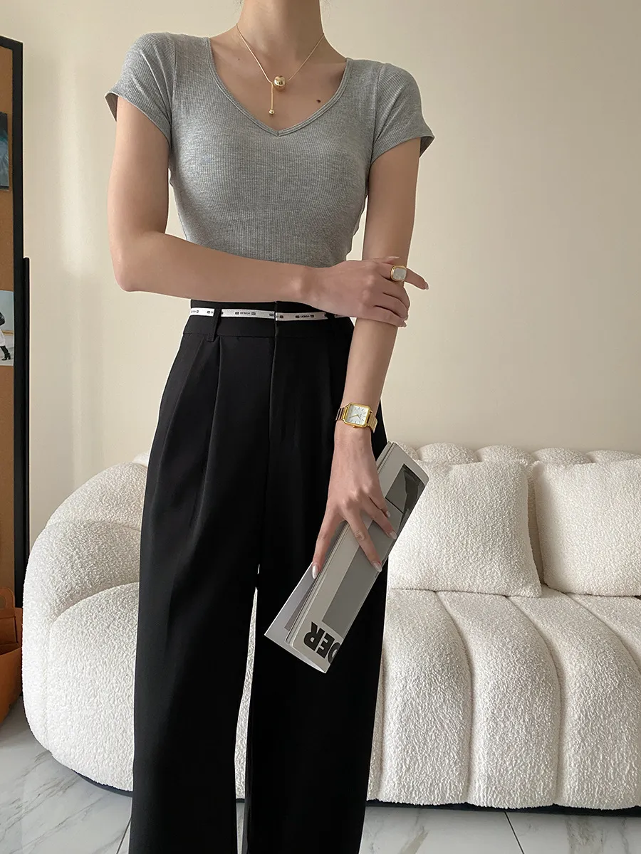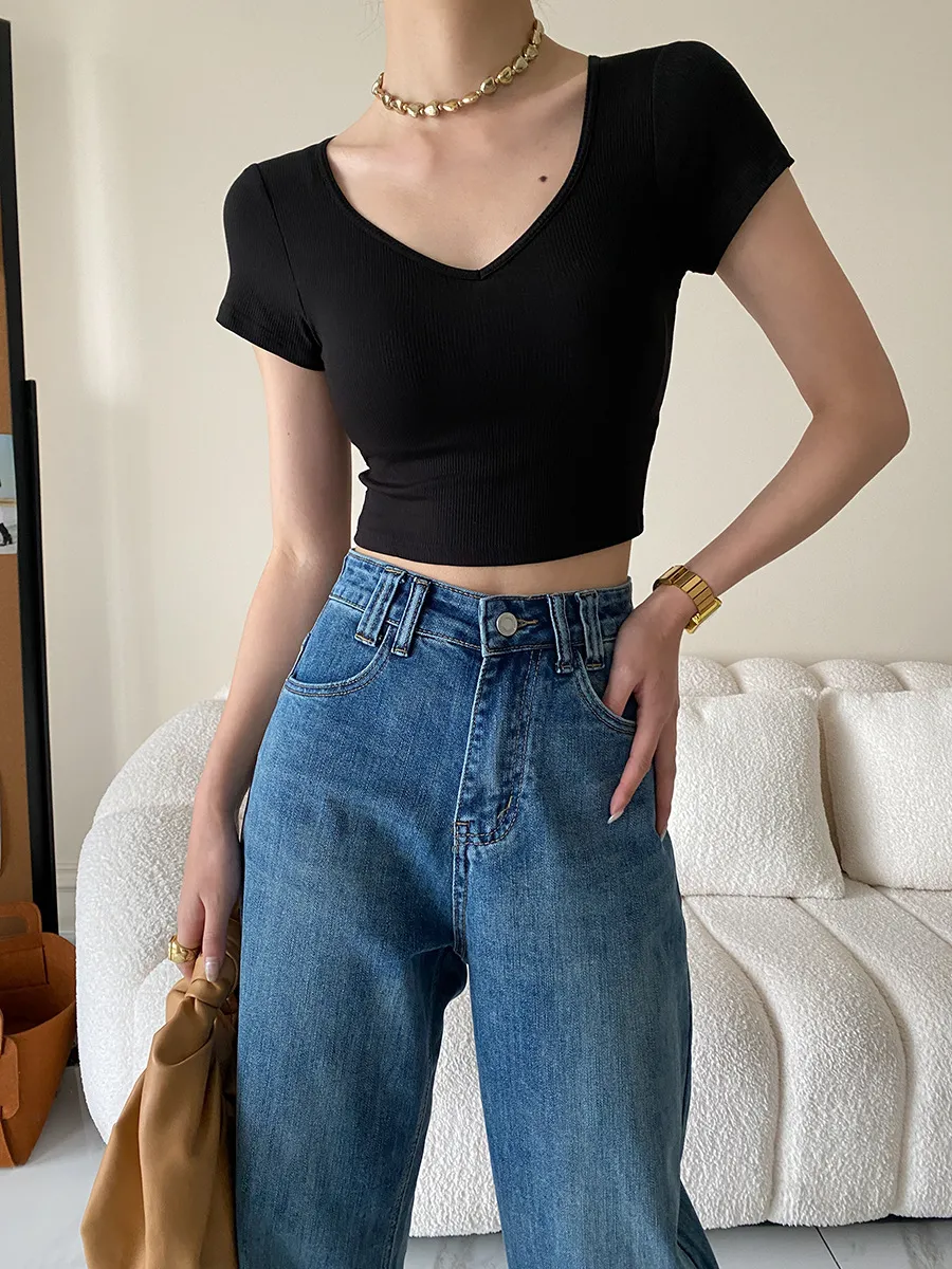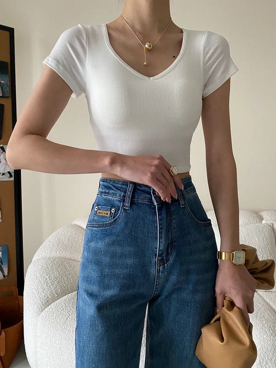 微辣V領羅紋彈力棉質Bra Top/BraTee 3色